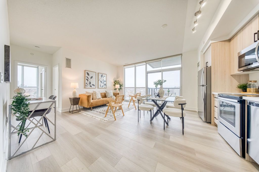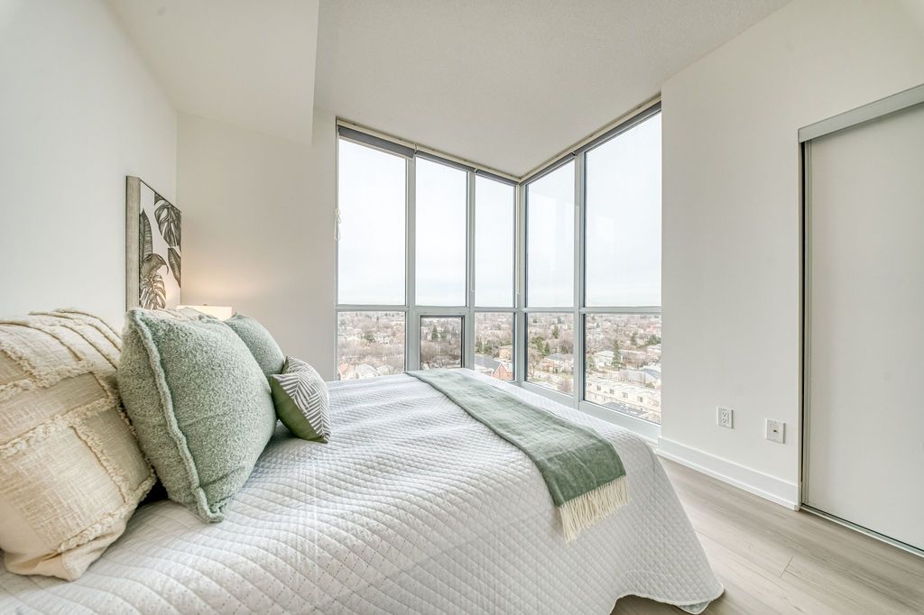 Discover luxury living in this bright and spacious 2-bedroom, 2-bathroom corner suite at the highly sought-after yonge & sheppard location. Featuring 9-foot floor-to-ceiling windows, this northeast-facing unit is filled with natural light and offers beautiful, unobstructed views over willowdale east. The functional layout is complemented by a stunning new kitchen (new cabinets, new quartz countertop, new backsplash) with stainless steel appliances, new high-quality laminate flooring and professional fresh paint. Step out onto the private balcony and enjoy the scenic city views. Ideally located just steps to ttc subway, restaurants, cafes, shopping, and entertainment, with easy access to highway 401. Enjoy a full range of building amenities designed for comfort and convenience. Premium private locker is just behind the parking spot.