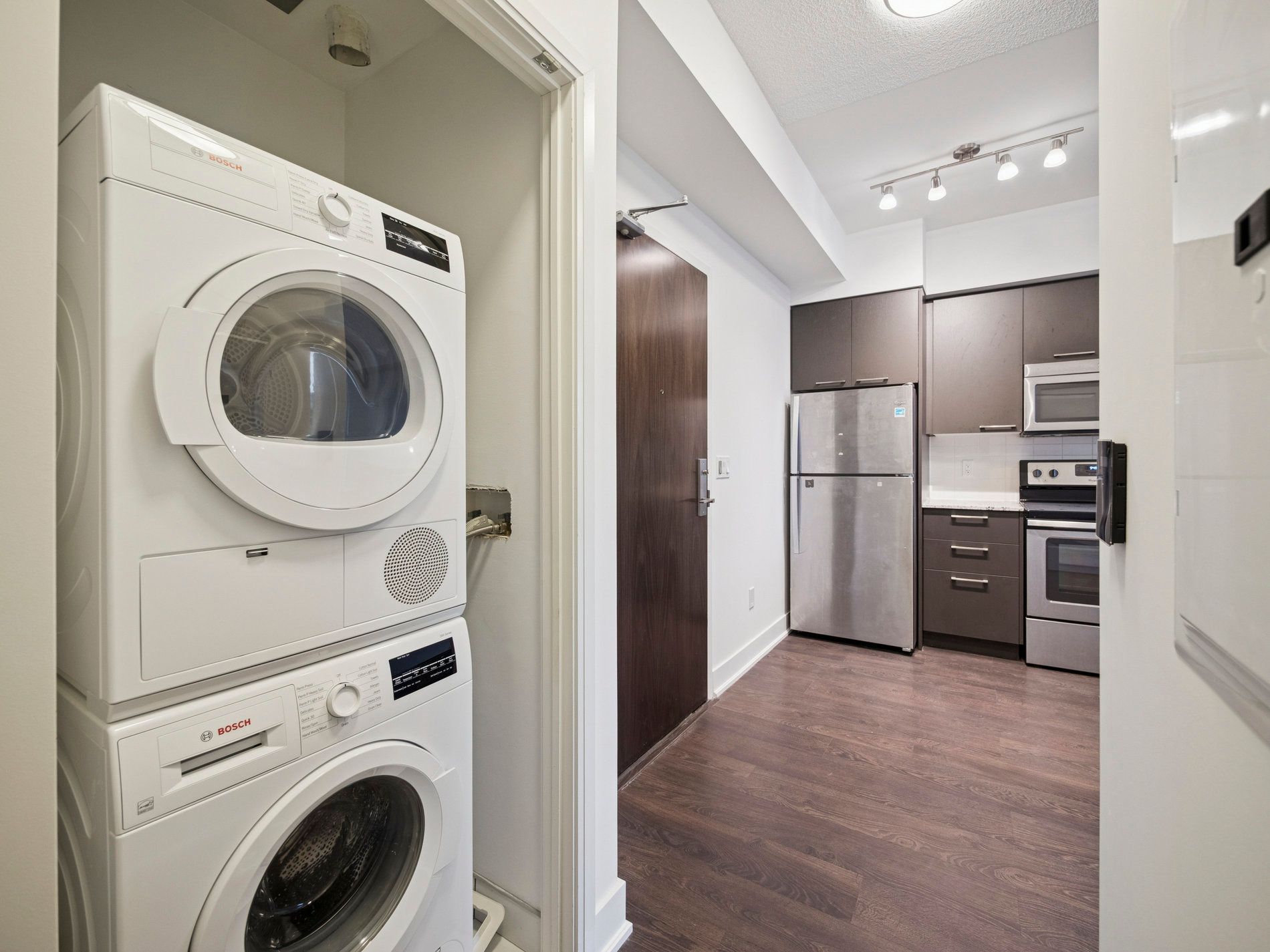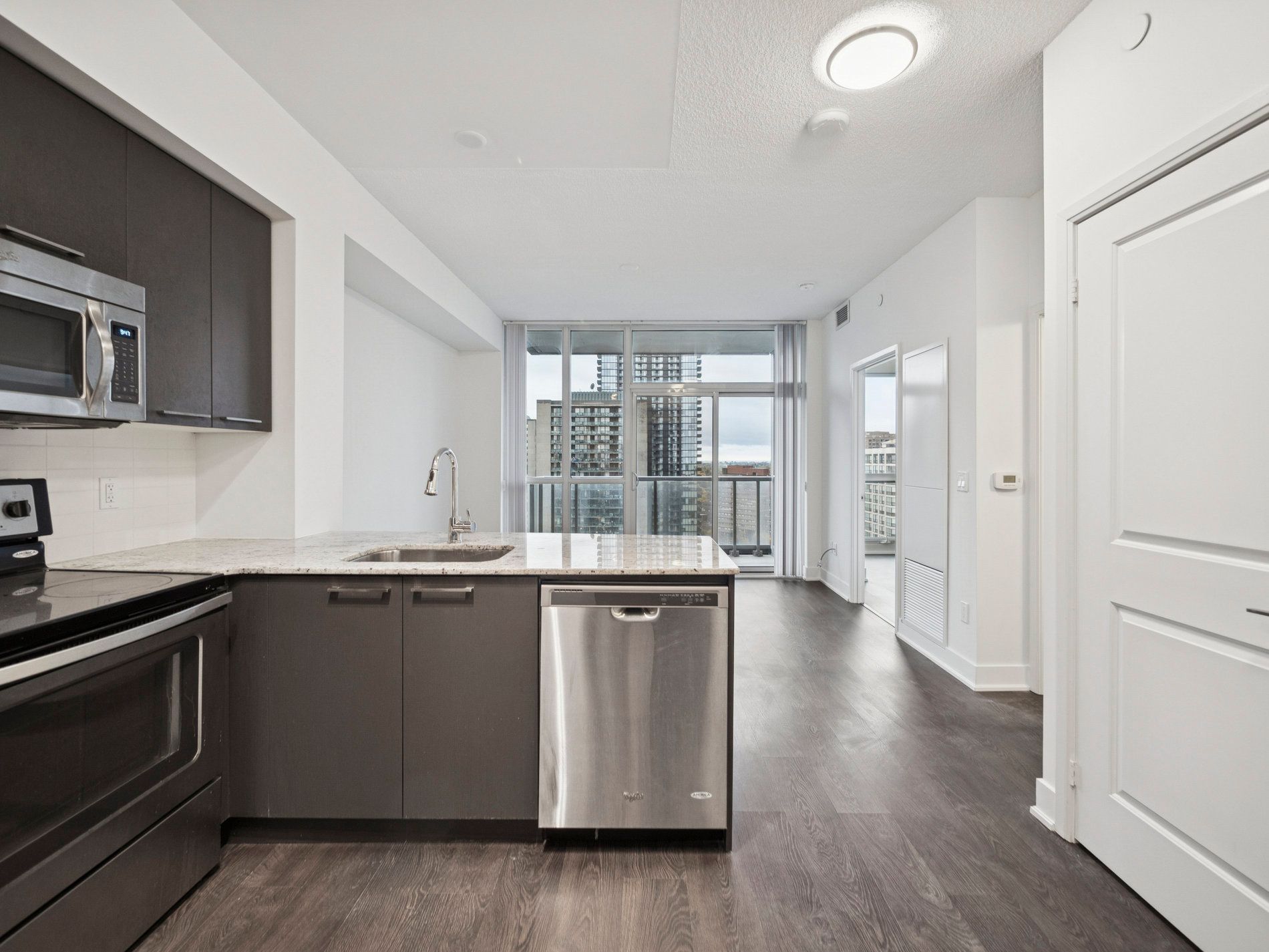 Experience modern urban living at minto 8 condos, ideally located in the vibrant core of north york. This 34-storey architectural landmark features elegant, high-end finishes and contemporary design throughout. The suite offers an unobstructed park view from a spacious balcony and floor-to-ceiling windows that fill the home with natural light. Enjoy a functional open-concept layout with a modern kitchen equipped with stainless steel appliances and sleek cabinetry. Residents can indulge in luxurious building amenities, including a 24-hour concierge, state-of-the-art fitness centre, party room, guest suites, visitor parking, and a stunning outdoor water garden. Situated in a prime, highly convenient location, you're just steps away from the subway, york transit, go bus, and minutes to highway 401. Walk to shoppers drug mart, restaurants, cafes, banks, parks, and countless urban conveniences. The unit includes one underground parking space and one locker, making it an ideal choice for professionals or small families seeking a sophisticated and well-connected home in the heart of north york.