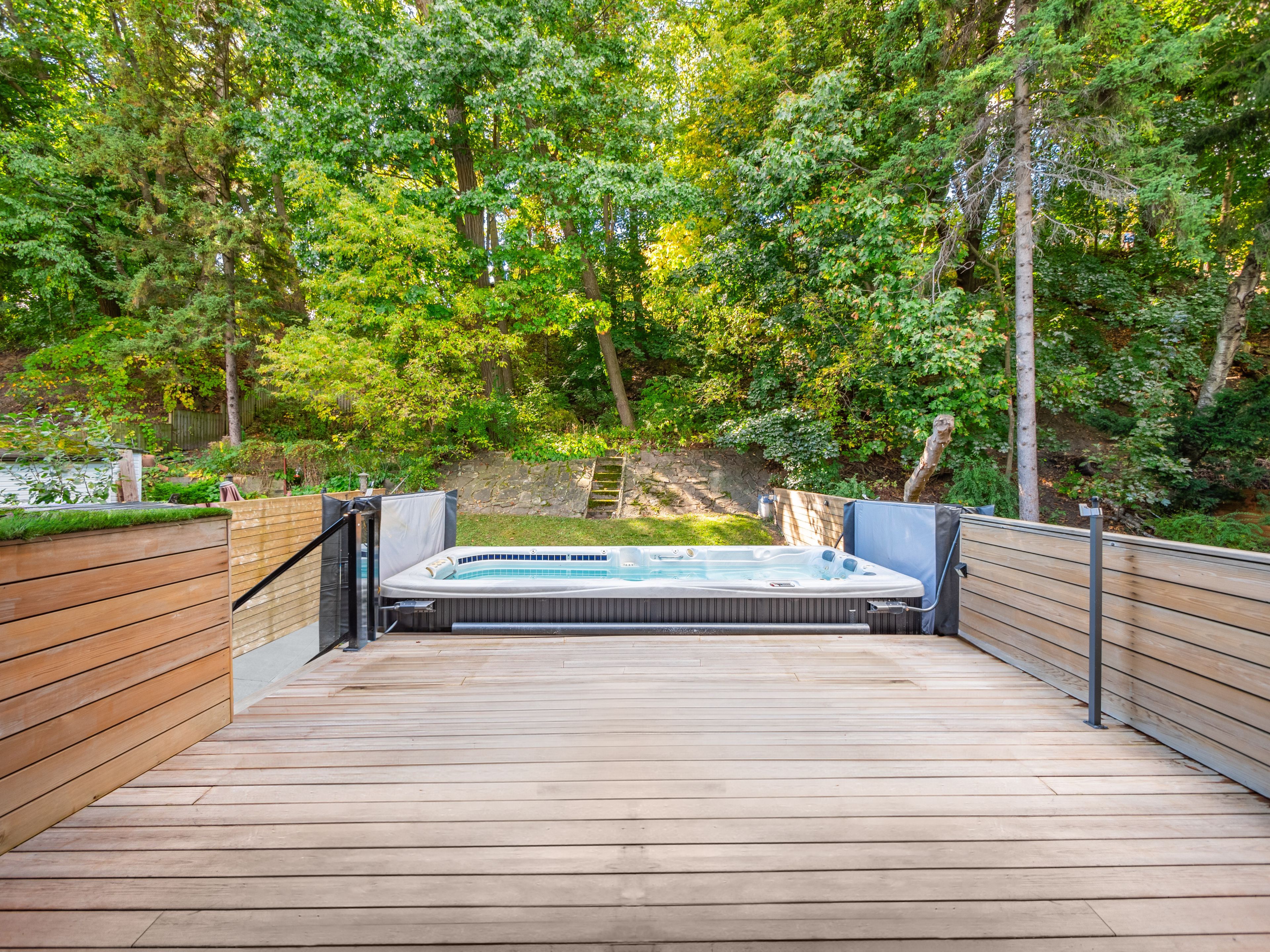 Step into a sanctuary of modern luxury and impeccable design! This exquisite 4000+ sq ft contemporary masterpiece, crafted by david peterson architect inc., offers a unique blend of functionality and elegance. Featuring 3+1 bedrooms, 4 baths, and a lush garden atrium, this home is a serene retreat in a private woodland setting with breathtaking seasonal views. Located just minutes from downtown, the airport, and bloor west village, this rare offering boasts top-of-the-line finishes, including natural maple and statuario accents throughout. Enjoy the convenience of samsung and bosch appliances, a custom sauna, a swim spa, an ev charger, and a separate suite perfect for in-laws or nannies. This freshly painted home truly offers a luxurious retreat for all members of the family! Photos shown are home partly furnished and virtually staged.