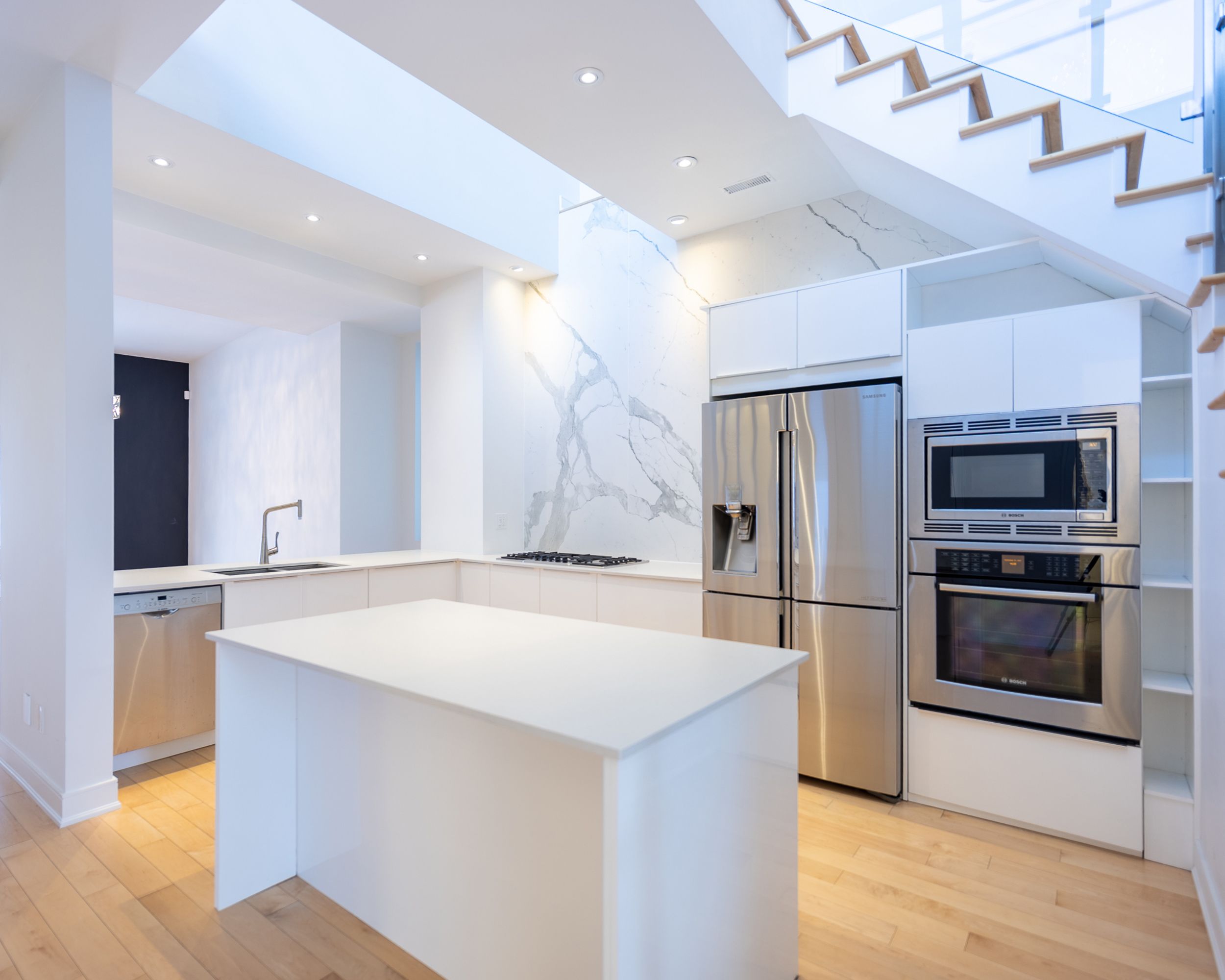 • Modern kitchen equipped with Samsung and Bosch appliances.