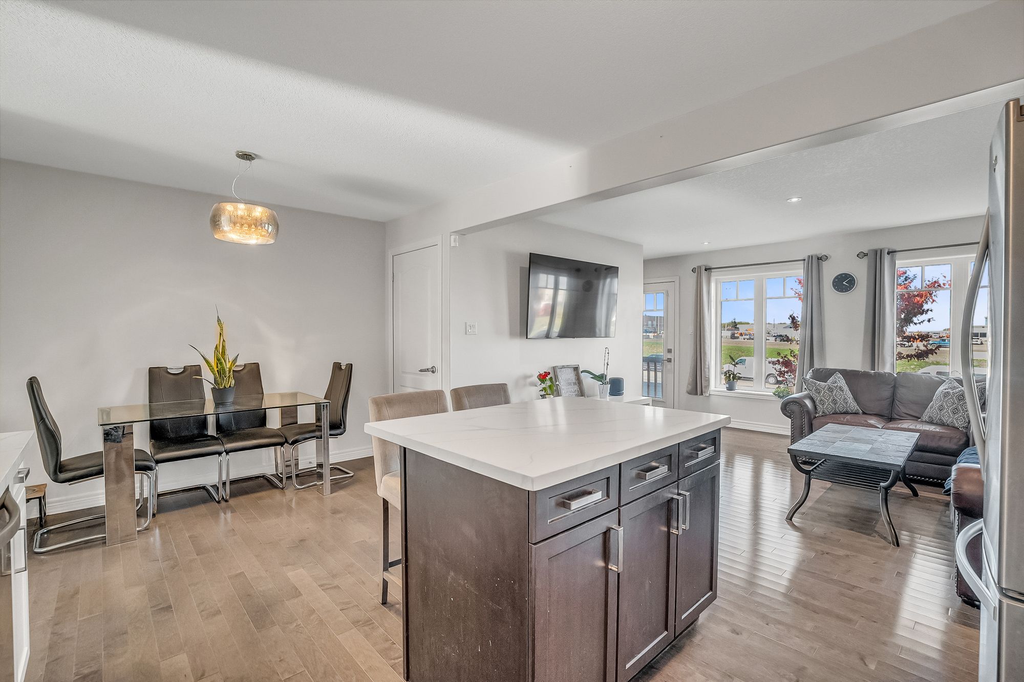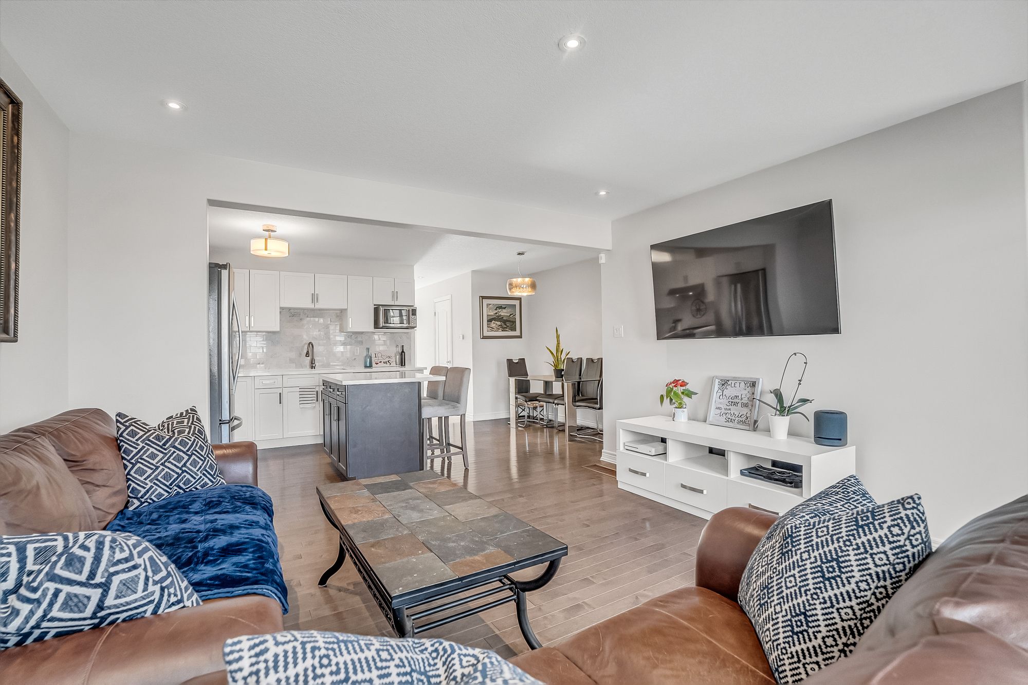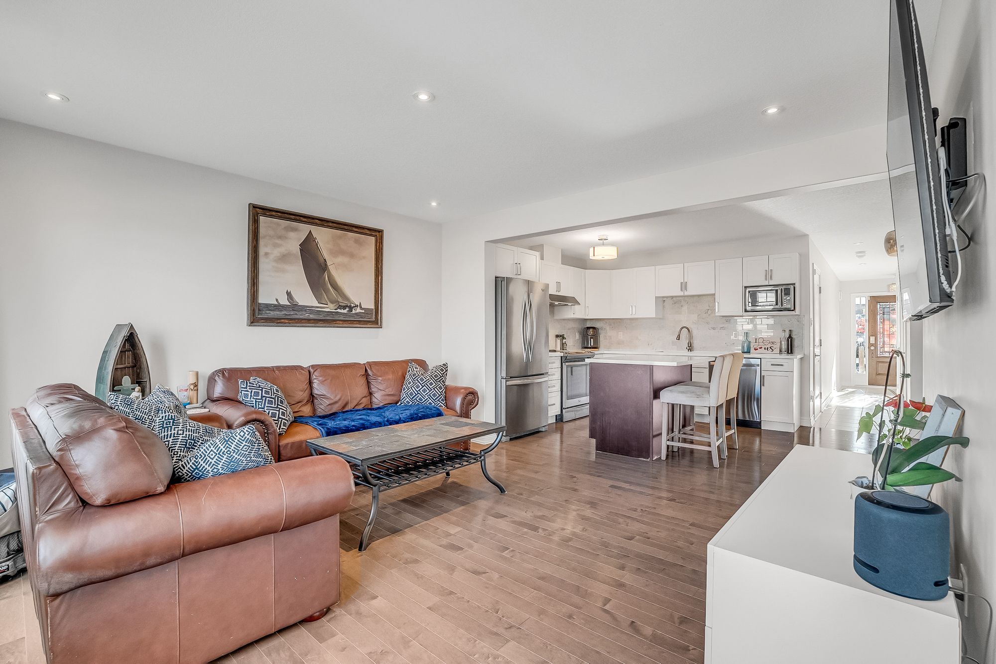 • Open-concept main level with a designer kitchen and spacious living area.