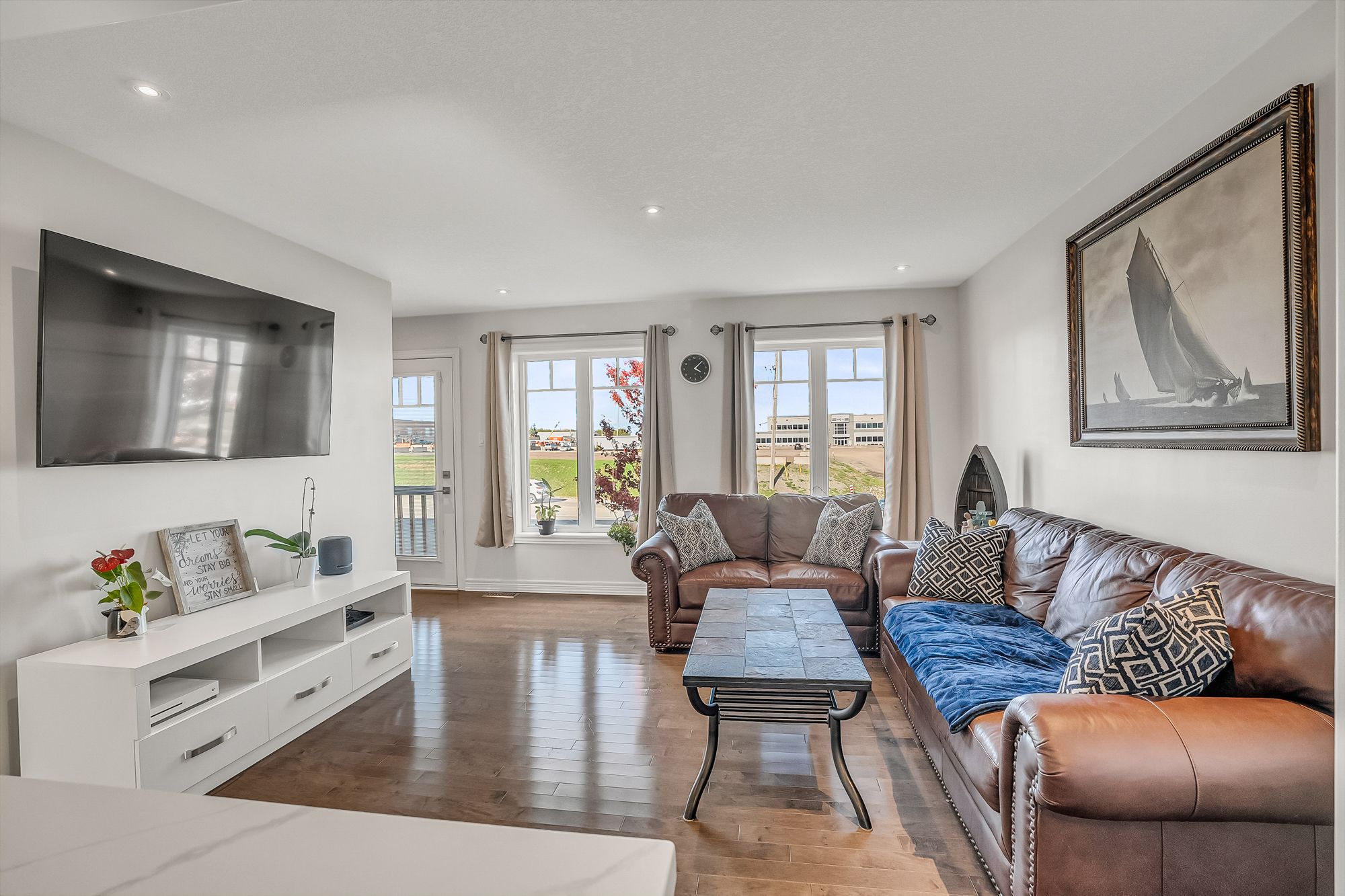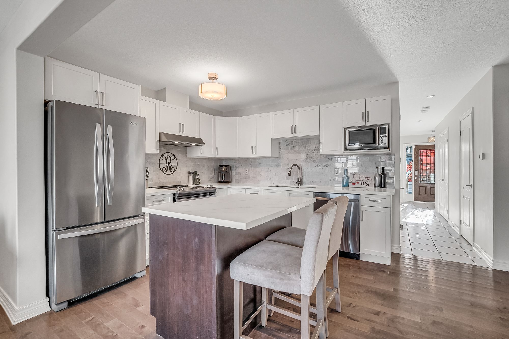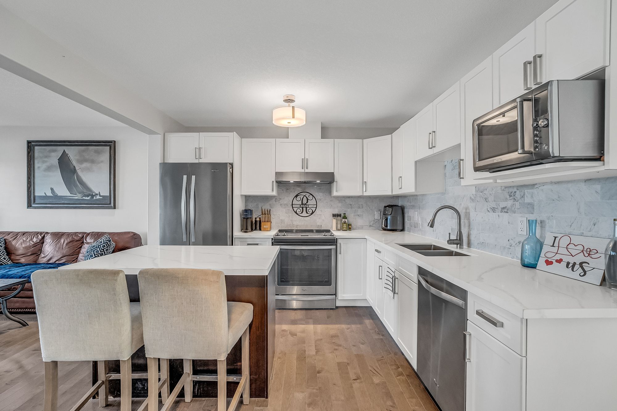 • Open-concept main level with a designer kitchen and spacious living area.