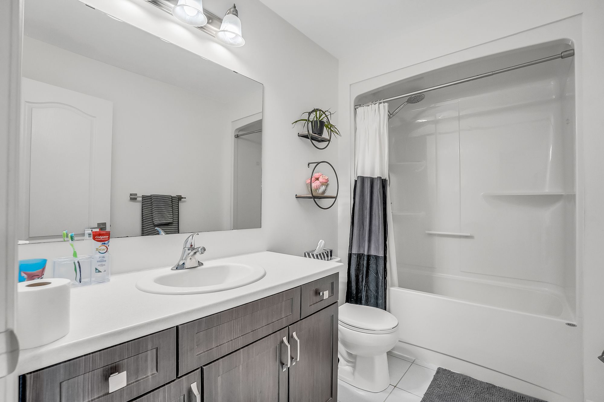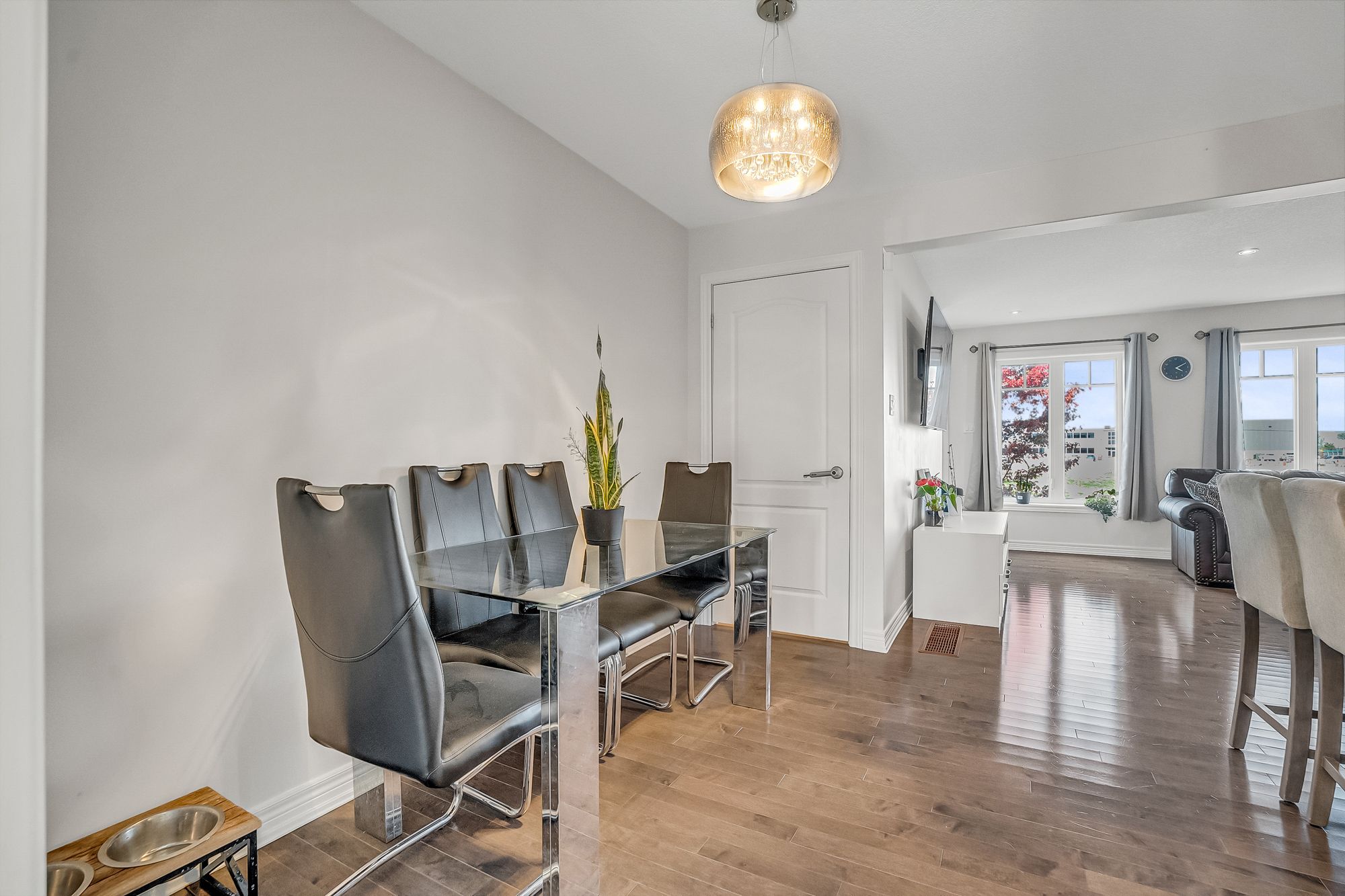** walkout basement ** welcome to this beautifully upgraded freehold townhouse, perfectly situated on a quiet, family-friendly cul-de-sac. Move-in ready and tastefully finished from top to bottom, this home exudes modern style and comfort. The professionally landscaped front yard creating an inviting first impression. Inside, the open-concept main level showcases a designer kitchen complete with a centre island, quartz countertops, sleek backsplash, and stainless steel appliances. The bright and spacious living area features large windows and a built-in entertainment wall, ideal for relaxing or entertaining. Upstairs offers three generous bedrooms and two bathrooms, including a primary suite with a large closet and private 3-piece ensuite. The finished basement extends the living space with a beautifully finished recreation area and a convenient fourth bathroom. Step outside from the walkout basement to a private, fully fenced backyard with newly laid sod and no rear neighbours perfect for outdoor gatherings. With parking for two vehicles, inside access from the garage, and ample visitor parking nearby, this exceptional home combines comfort, convenience, and a prime location near top-rated schools, parks, and everyday amenities.