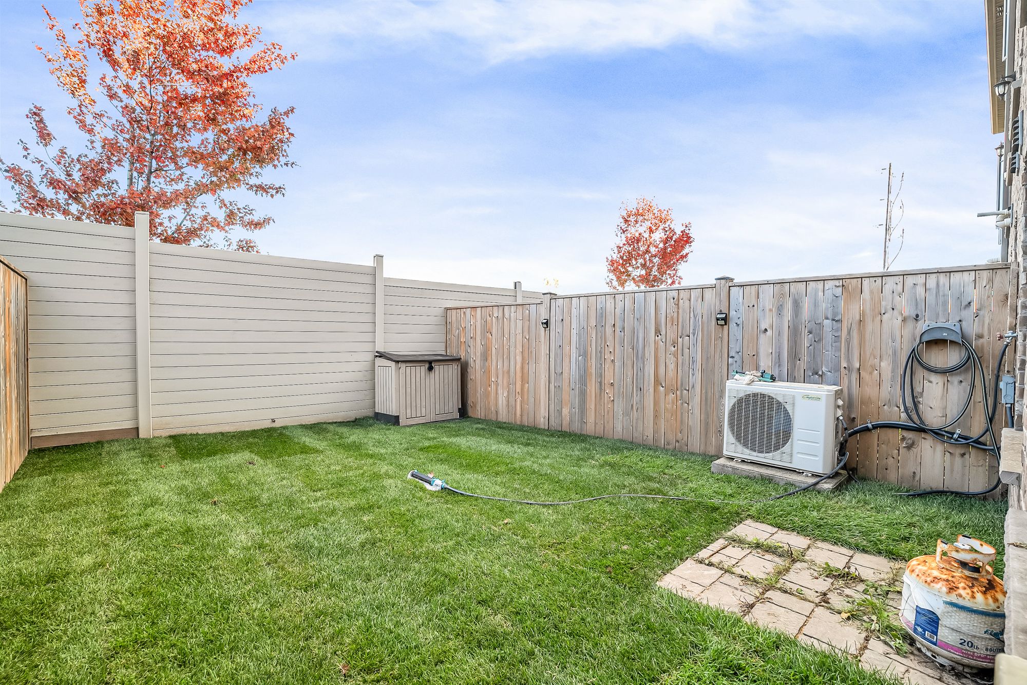 • Private, fully fenced backyard with no rear neighbors and newly laid sod.