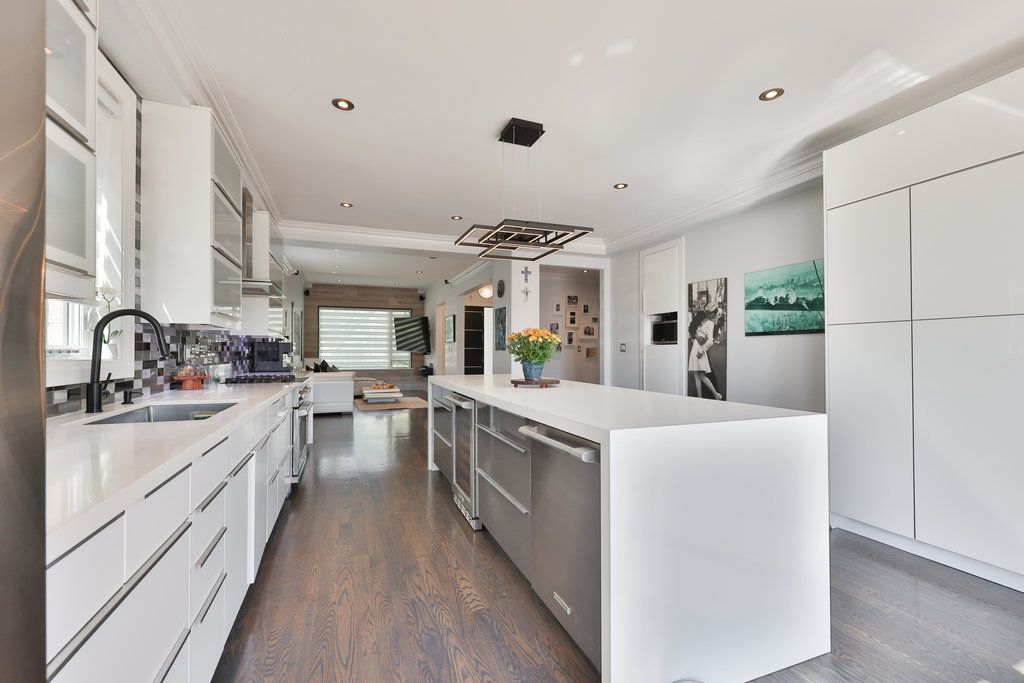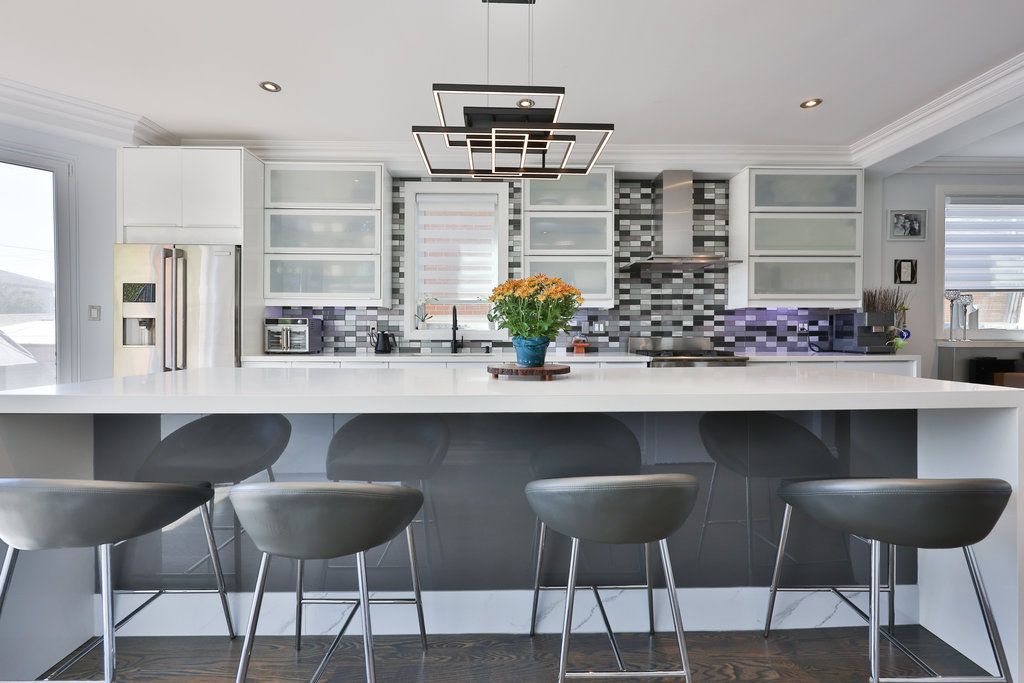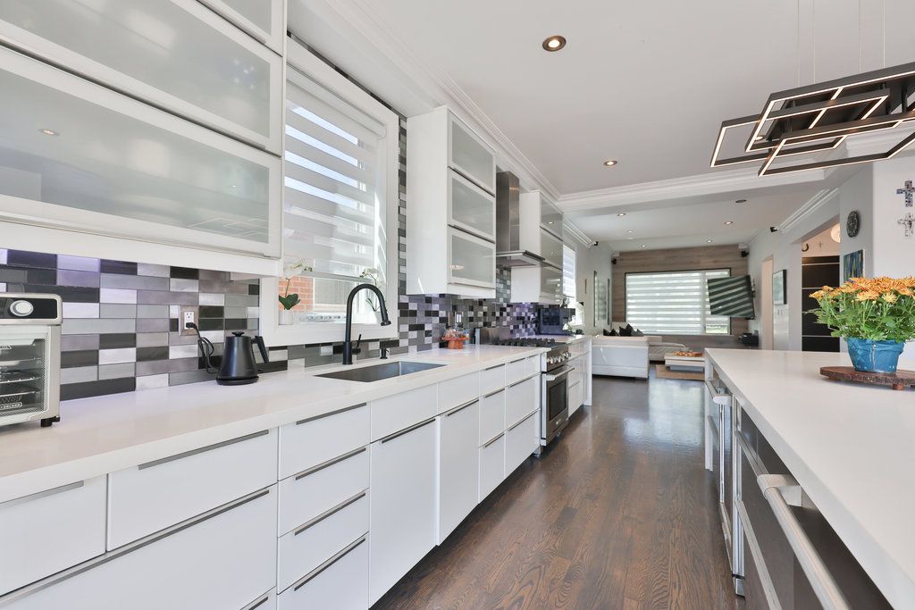 • Bright open-concept main floor with 9' ceilings and oversized windows.
