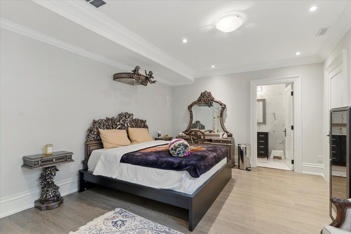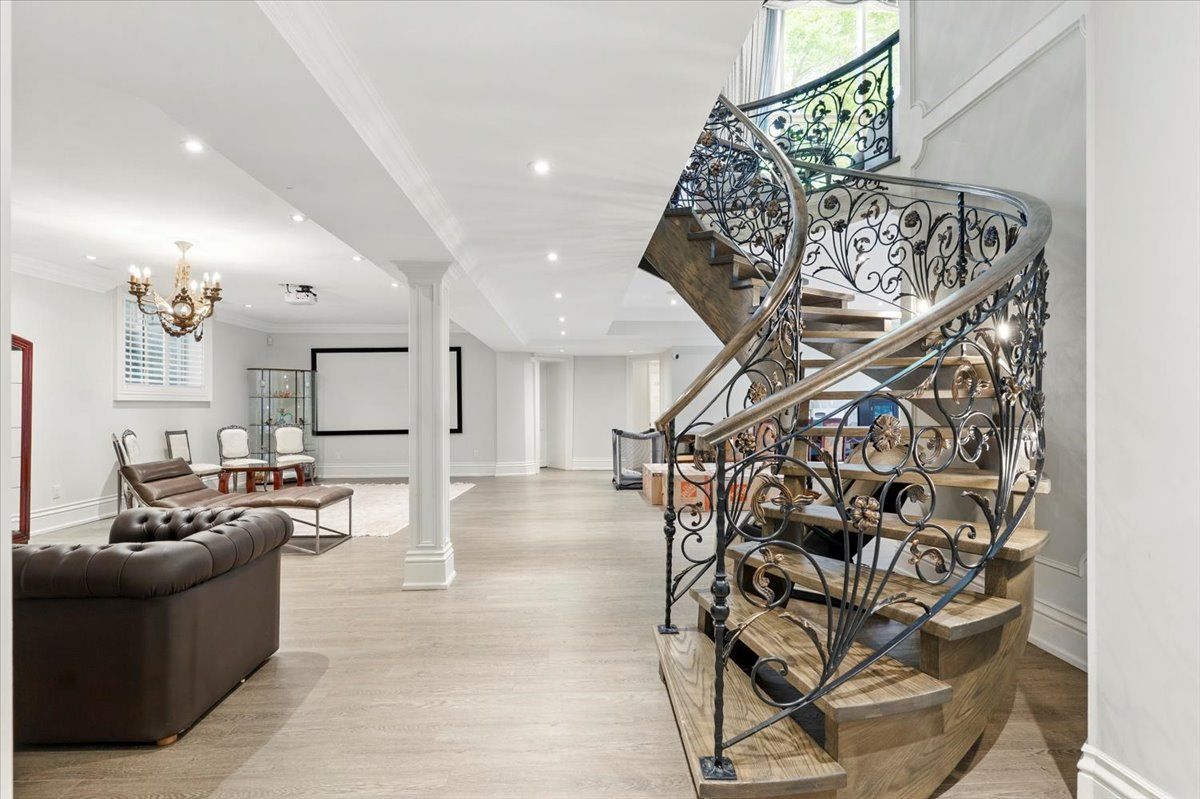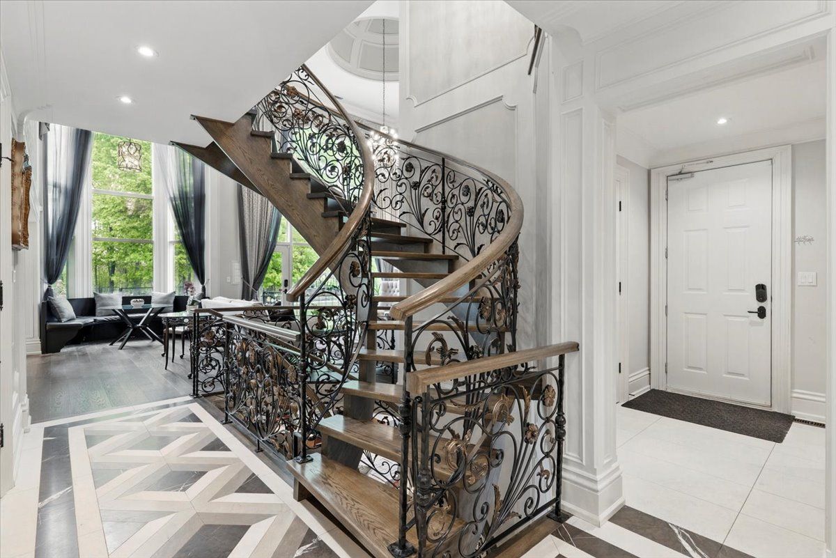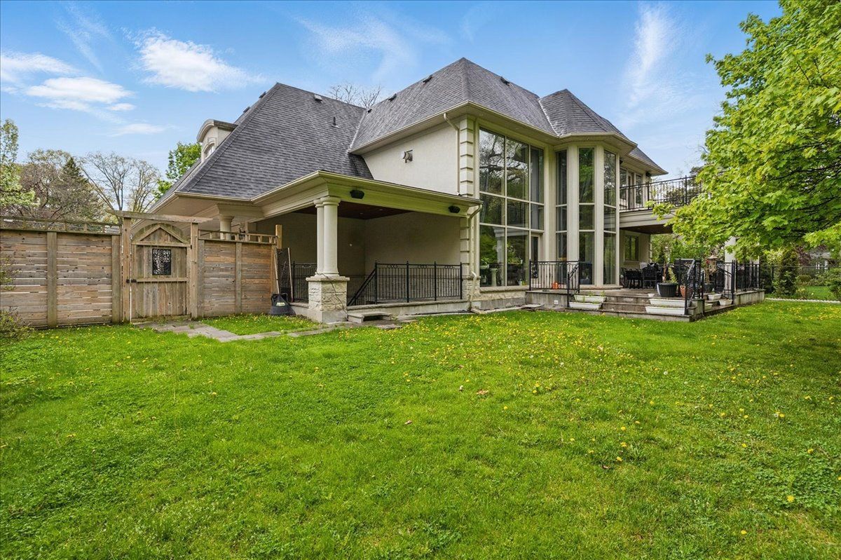 Surrounded by nature and prestige, this remarkable residence sits steps away from rattray marsh trails, lake ontario, and beloved local gems like jack darling park and meadow wood park. Perfectly situated on a sprawling 90x166 ft lot, this custom-built home backs onto lush green-space. Meticulously designed with over 7,000 sq ft of finished living space, this 4+2 bedroom, 7-bathroom estate captivates from the moment you arrive. A soaring 23-foot cathedral ceiling sets a striking tone, anchored by a solid wood staircase and drenched in natural light from floor-to-ceiling windows. Principal rooms flow with intention, from the living and great room to a spacious family room and dining, each detailed with rich hardwood, layered millwork, and timeless finishes. At the heart of the home lies a chef's kitchen outfitted with top-tier stainless steel appliances, custom cabinetry, a generous island, and a full pantry, ideal for entertaining. Premium features continue throughout: heated floors, built-in speakers, tray ceilings, multiple fireplaces and a private elevator connecting every level. On the upper level, the primary suite is a true retreat, featuring elegant coffered ceilings, a boutique-inspired dressing room, a spa-style ensuite, and a private walk-out balcony with serene backyard views. Each additional bedroom is designed with comfort and privacy in mind, offering custom closets and ensuite access. The finished walk-out lower level expands the living space, offering two more bedrooms, two full bathrooms, a den, and a generous recreation space. Outside, mature trees frame a private backyard sanctuary, offering rare tranquility. Whether you're enjoying morning coffee on the terrace or taking an evening stroll to the lake, this home delivers a lifestyle thats as elevated as its design.