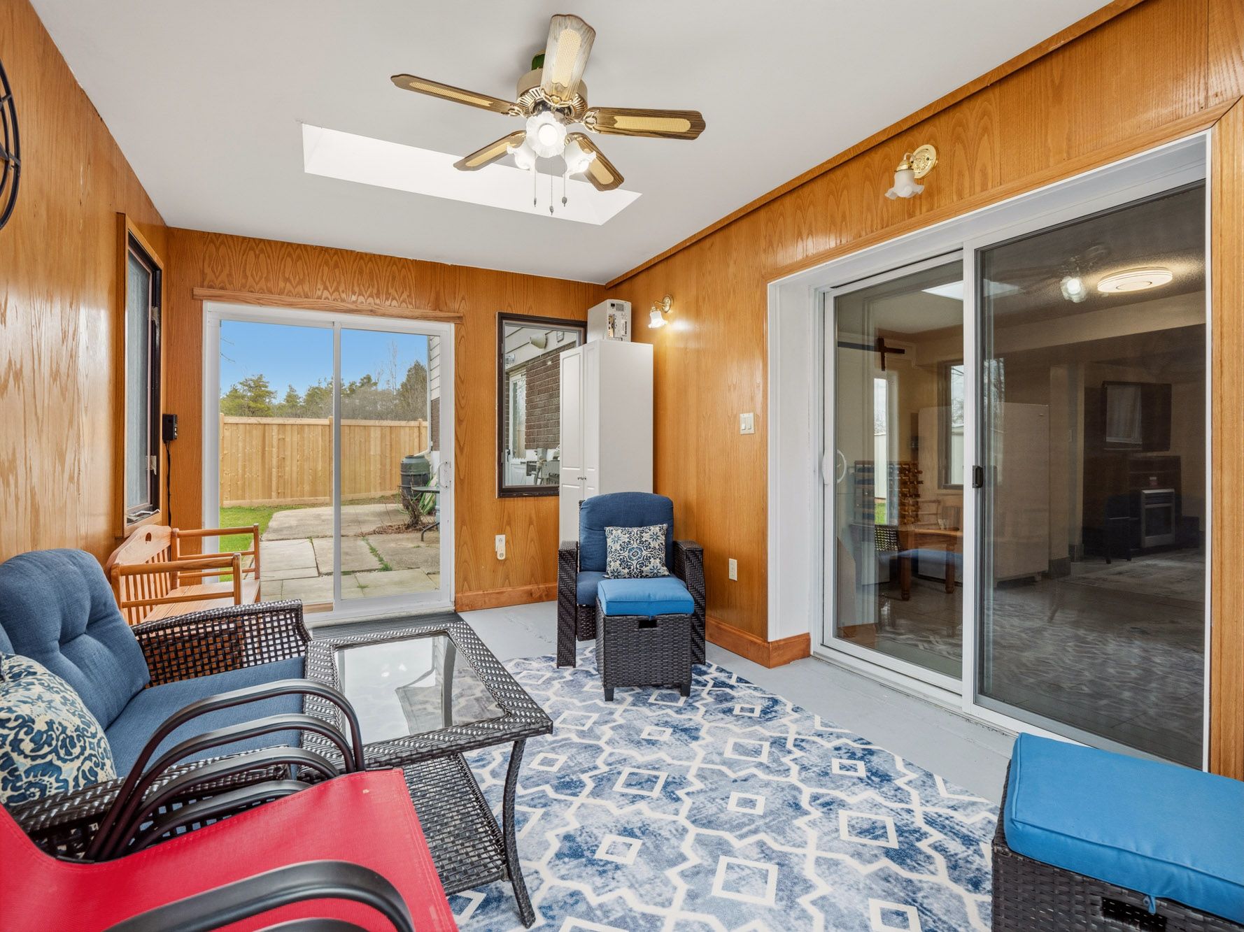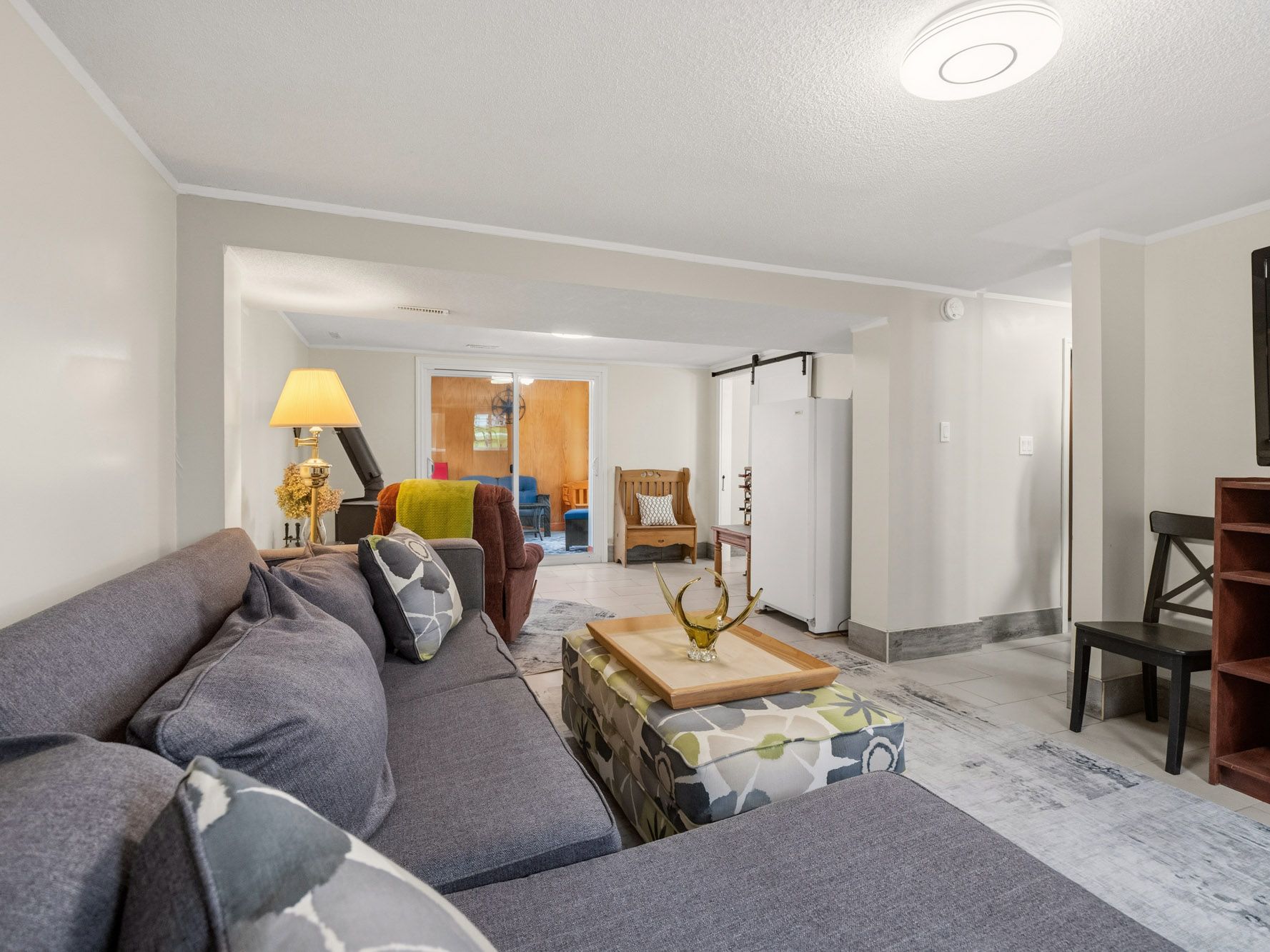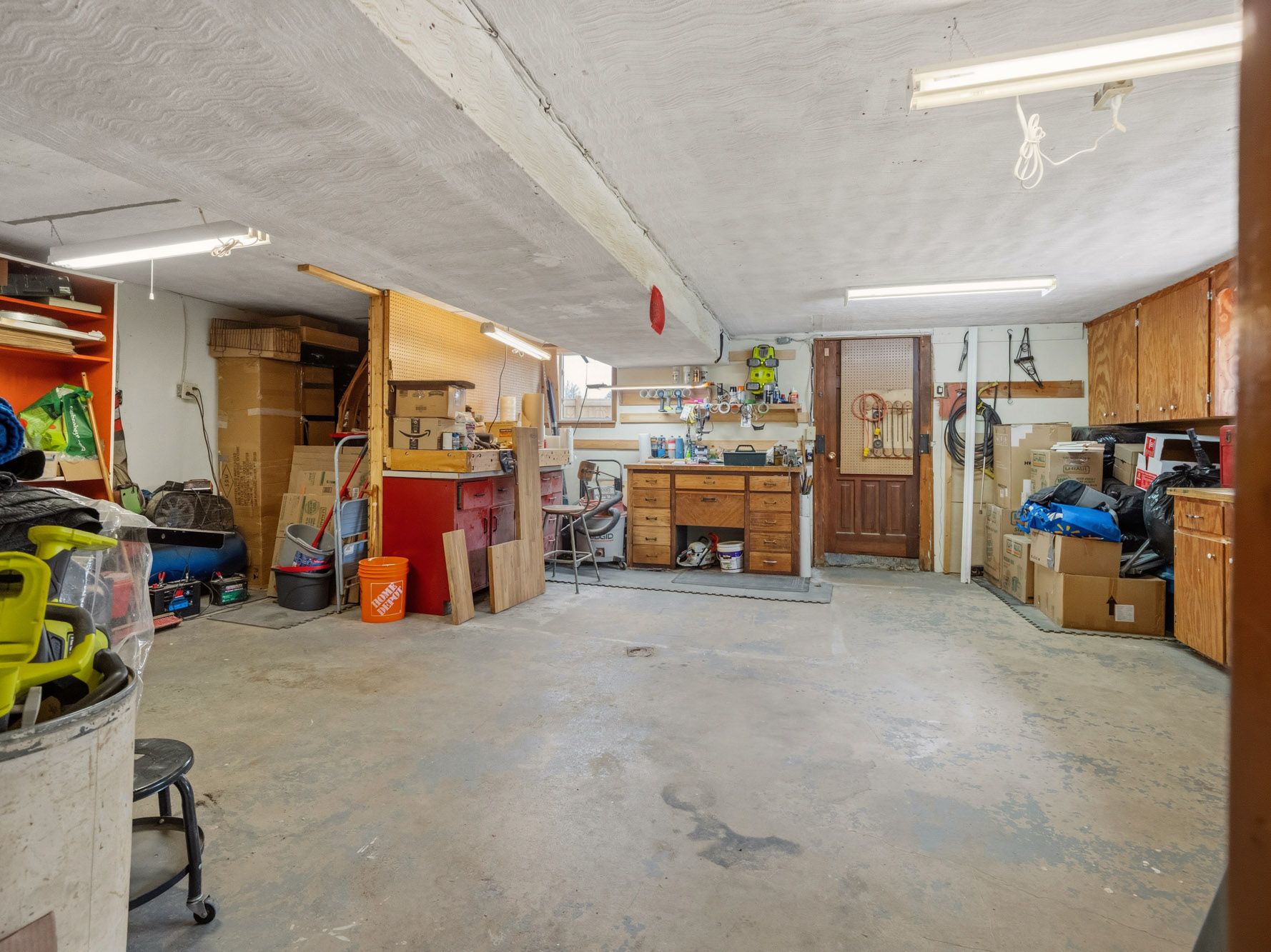 • Finished lower level with family room, workshop, and laundry area.