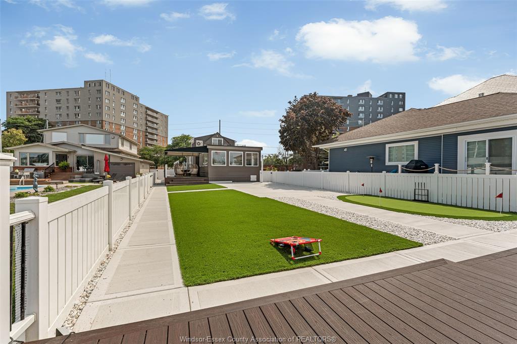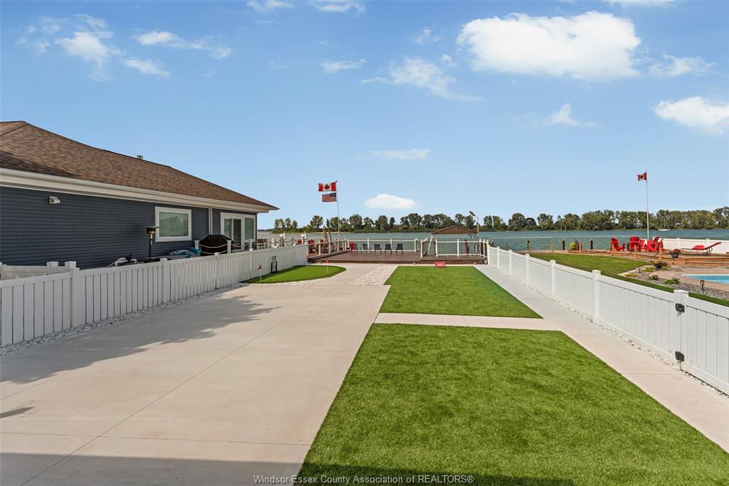 • New backyard with concrete, turf, a private putting green, and boat dock.