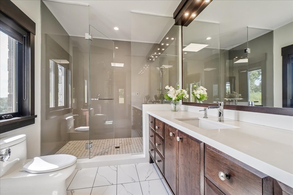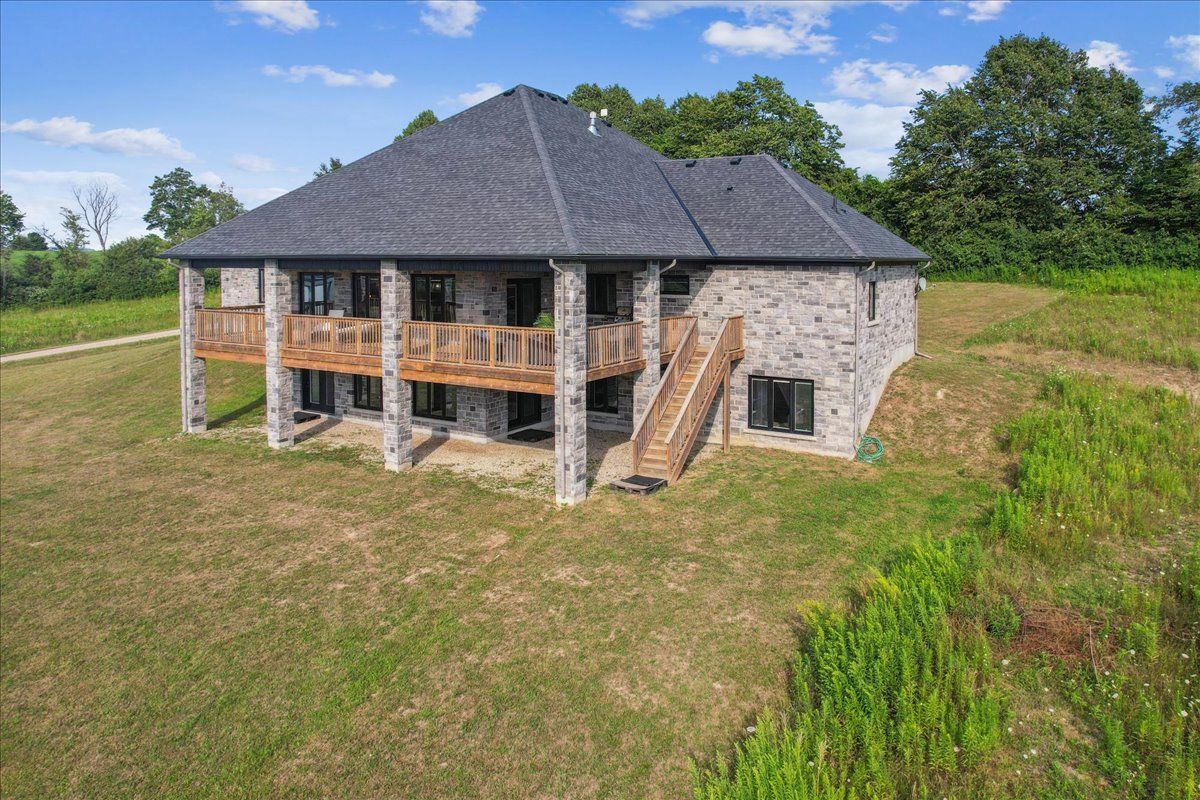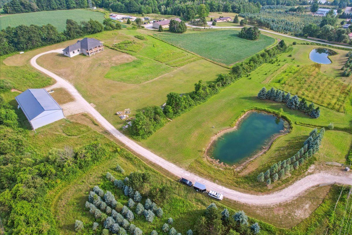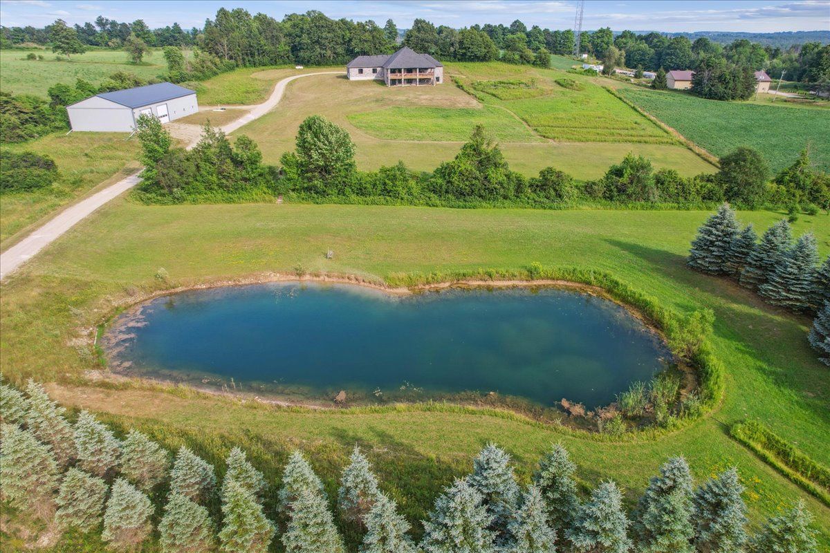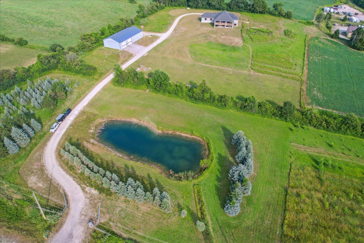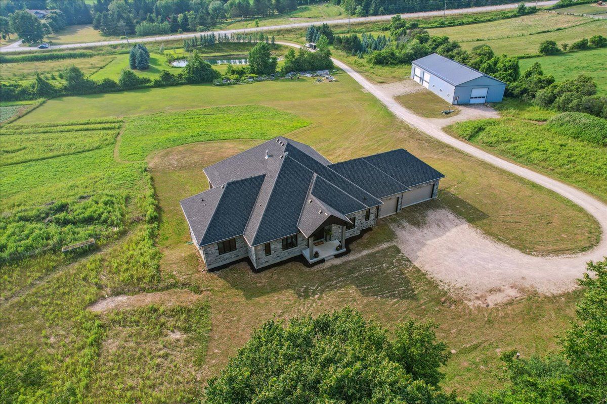 This custom-built country bungalow, where craftsmanship meets comfort is an exceptional family home nestled in the rolling hills of erin. Set on just under 9 acres of gently sloping lawns, a spring-fed pond, and endless outdoor beauty. From the moment you step inside, you'll feel the care and quality that went into this cabinetmakers personal residence. Striking details, soaring ceilings, and an open-concept layout set the stage, while over 200+ custom-built storage drawers keep family life beautifully organized. The heart of the home is a chefs dream kitchen, featuring solid wood cabinetry, high-end appliances, a massive quartz island with breakfast bar, and endless cupboard space. Gather in the great room around the fireplace, or share meals in the dining room as you soak in panoramic views of the countryside through the windows. Step outside to the elevated, covered balcony and catch unforgettable sunsets, your new favourite place to unwind. The main-floor primary suite is your own private retreat, with a coffered ceiling, spa-inspired ensuite, and a walk-in closet with built-ins that maximize both function and style. Two additional bedrooms offer the same high-quality finishes and thoughtful design. Head downstairs to discover the ultimate entertainment zone, a fully finished walk-out lower level with a large wet bar, cozy fireplace, theatre room, home office, and even a sauna. And then there's the workshop, an incredible 5,000 sq. Ft. Heated building with three 16x16 insulated doors, ideal for car enthusiasts, hobbyists, or entrepreneurs. Add in a 3-car garage, geo-thermal heating and cooling, in-floor heating throughout the basement and shop, fire pit & your family has found a forever home. This property doesn't just offer a place to live, it offers a lifestyle. From peaceful birdwatching by the pond to hosting unforgettable gatherings, this is country living reimagined for the modern family. This home is truly breathtaking & has to be seen to be appreciated.