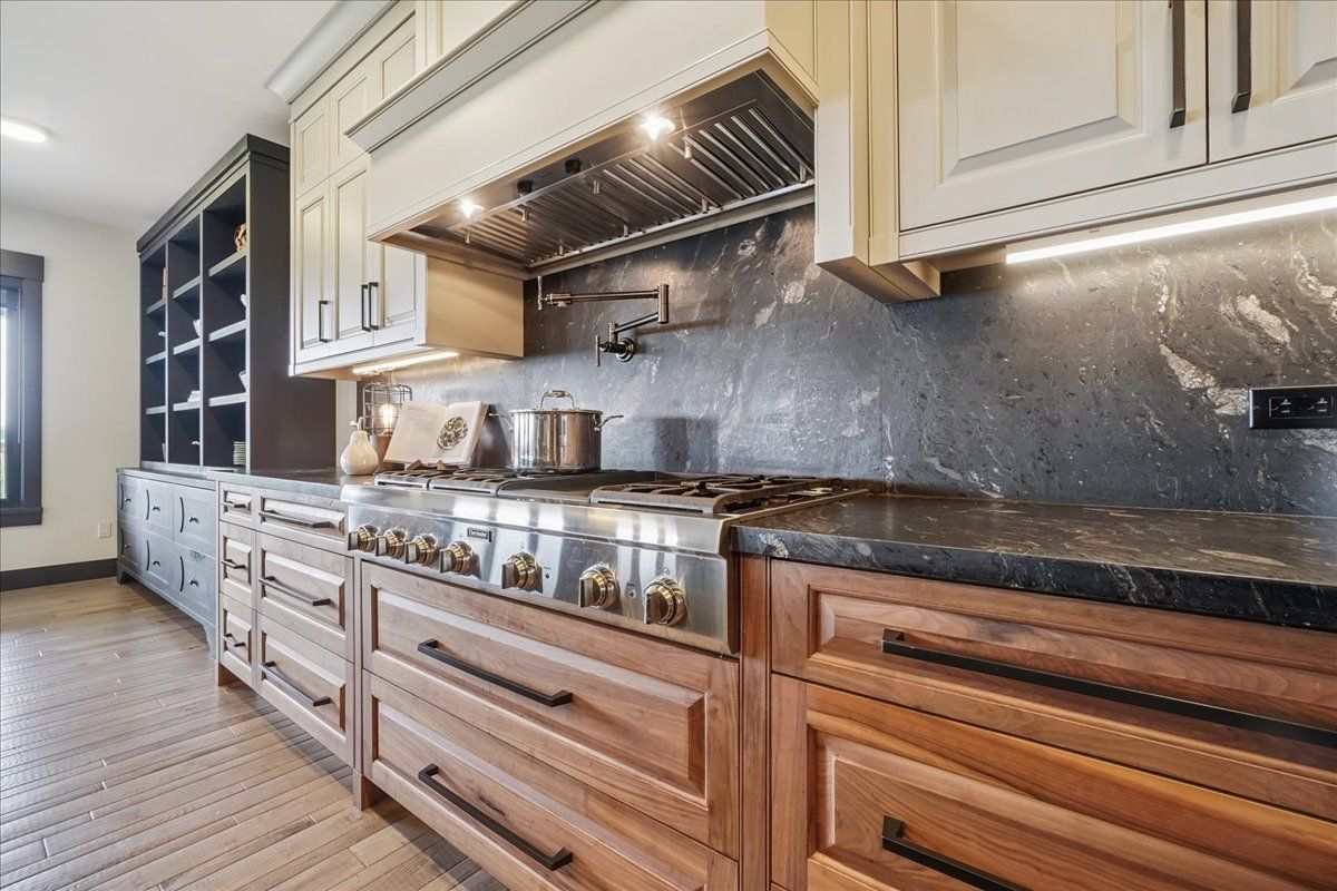 • Chef's dream kitchen featuring high-end appliances and a massive quartz island.