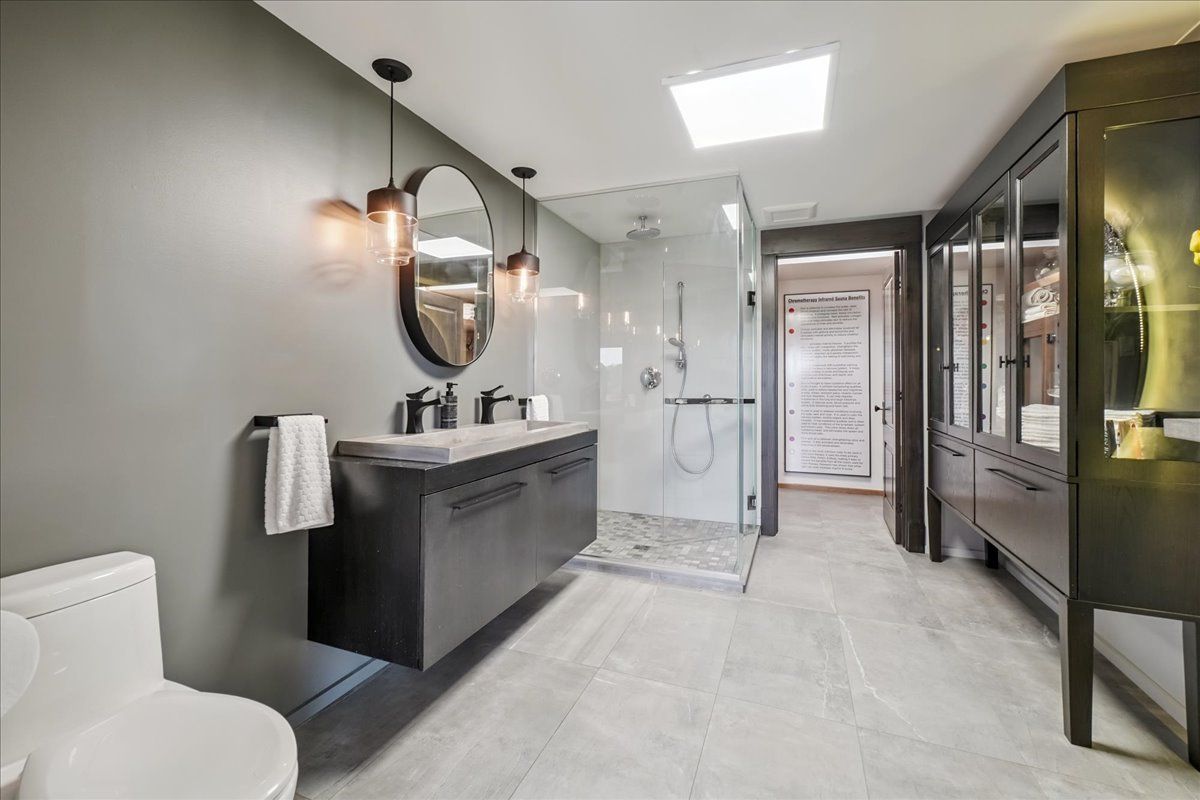 • Walk-out lower level with wet bar, theatre room, and sauna for entertainment.