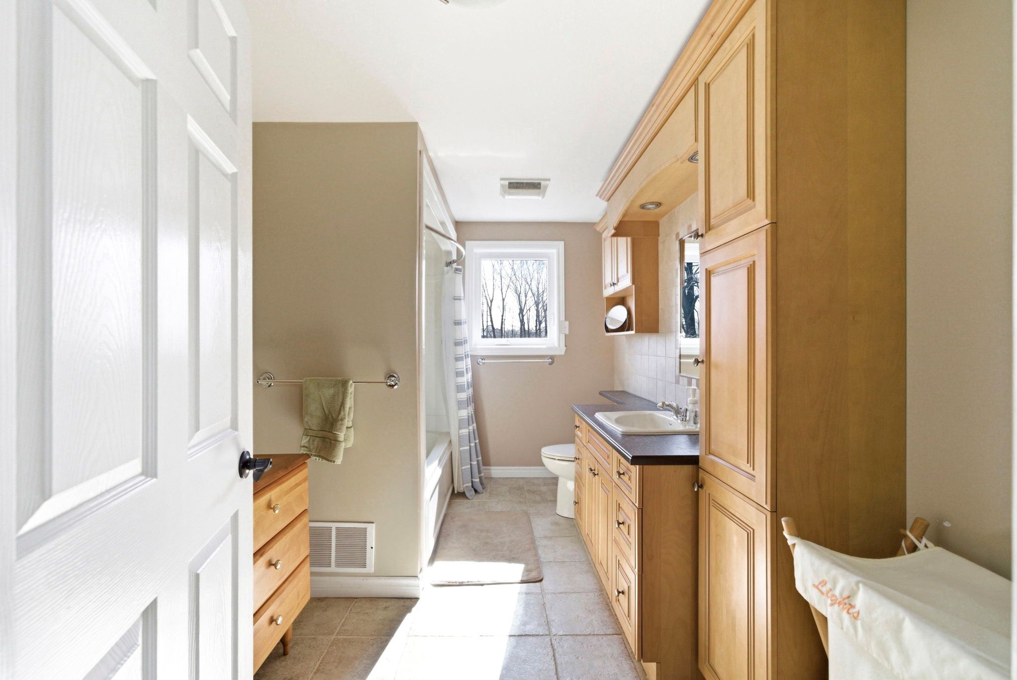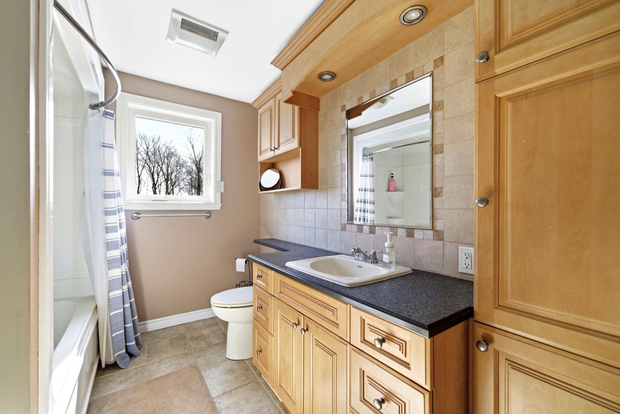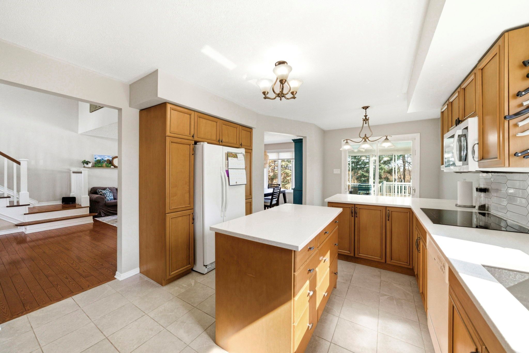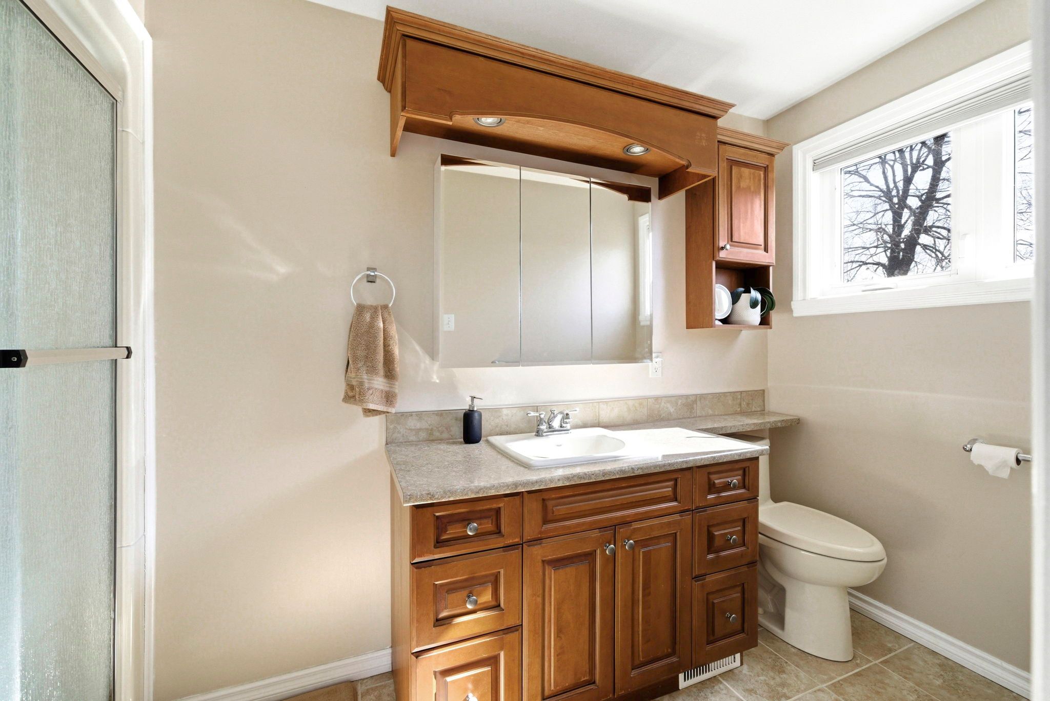 Don't miss out on this beautiful home! Welcome to this spacious and unique 2,252 sq. Ft. Five-level split home, offering the perfect blend of comfort, functionality, and style. Featuring 3+1 bedrooms, this home provides plenty of space for families of all sizes. Enjoy the convenience of a main floor family room and main floor laundry, designed for easy everyday living. The updated kitchen showcases quartz countertops and ceramic flooring, making it both modern and practical. The home also boasts a stunning cathedral ceiling in the living area, creating a bright and open atmosphere, along with a cozy loft featuring a wood fireplace-perfect for relaxing evenings. Step into the gorgeous sunroom at the back of the home, which leads to a deck and an above-ground heated pool with pool shed, ideal for entertaining and enjoying the outdoors. The huge primary bedroom with ensuite bath provides a private retreat. Additional features include gas heating with central air, a fully finished basement, and a single attached garage. Located on a quiet street close to all amenities, including schools, this home truly has it all. A must-see property. Book your showing today!
