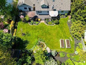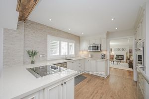 Nearly 1/3 of an acre on prestigious, tree canopied street in south aldershot, walking distance to lake. 4bed,4full bath,over 3000sqft of finished living space! Hrdwd flrs seamlessly flow thru/out. Kitch updated w/ss appliances,quartz counters&backsplash that extends all the way to ceiling,granite sink,picture window&conveniently flows to dining area&has garage access. Fr w/oversized front bay window flooding w/natural light,gas fp&crown molding. Versatile lr w/new patio doors lead to 3-tiered deck&spectacular view of the gardens. Primary suite w/2closets, include a walk-in&updated ens w/dbl vanity,glass walk-in shower&awning window. 2more beds&2nd full bath for family or guests. Loft area adds versatility,potential 4th bed,games rm,teenage retreat,etc. Hrdwd flrs,upgraded insulation,new windows&new 3pc bath highlight this level. Bsmnt w/glass&ss railing&new flring thru/out. Continues w/rec rm,office space&3rd full bath,laundry rm w/newer washer&dryer,newer counter&storage space& laundry sink. Extras: