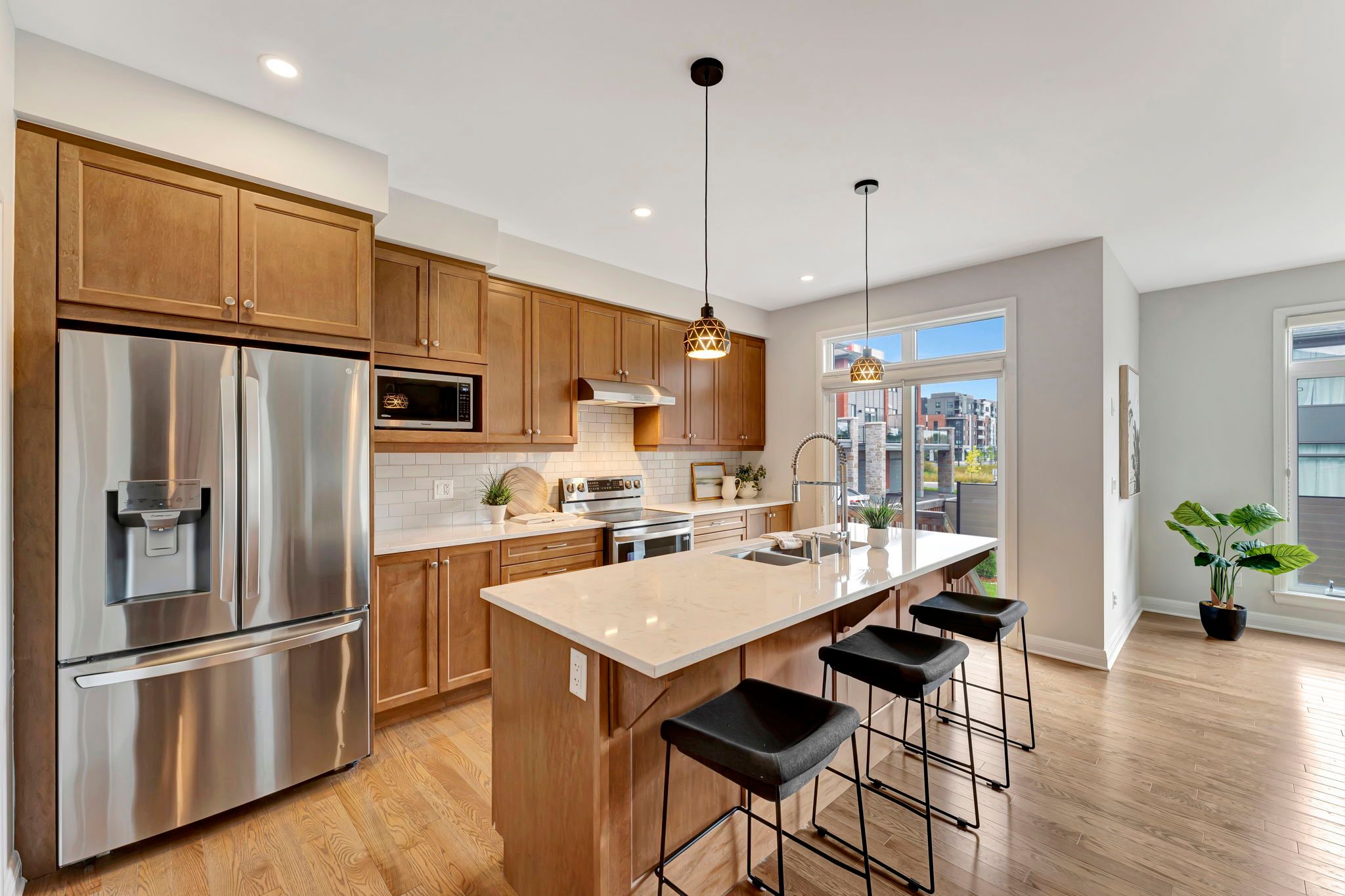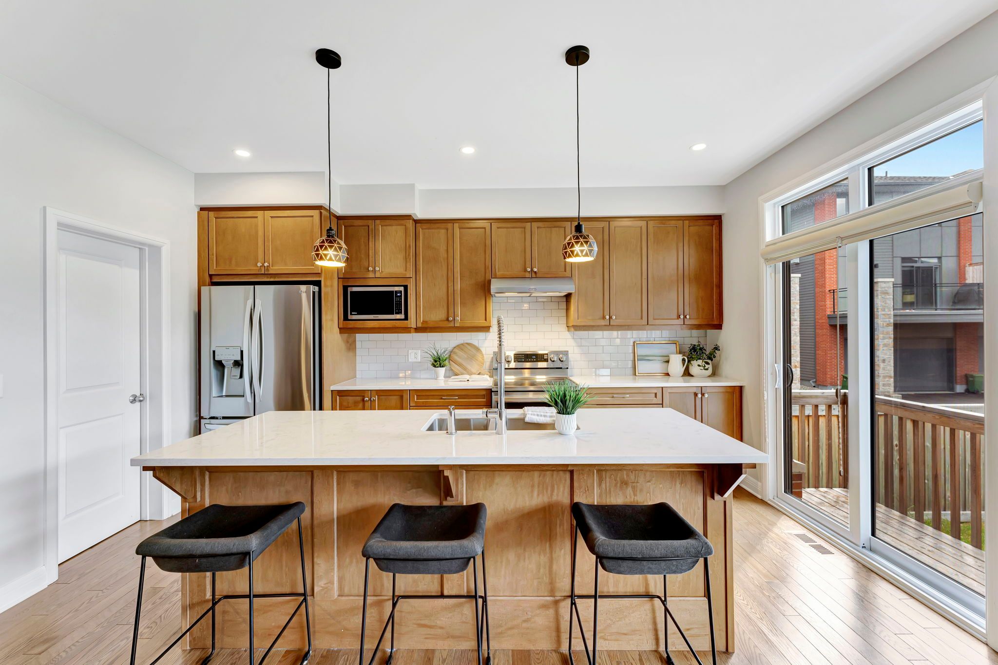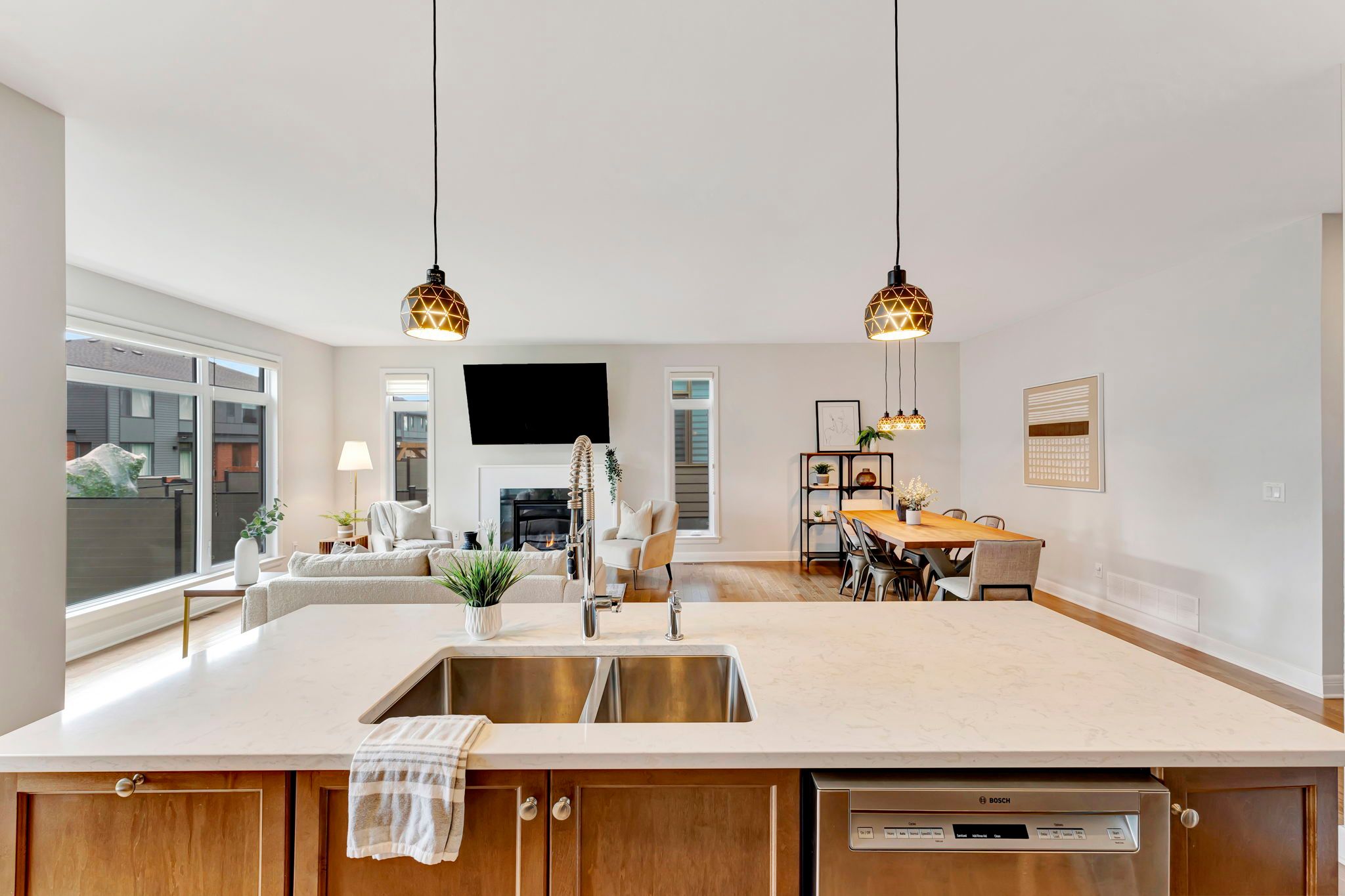 Experience refined luxury in this barry hobin-designed mariposa model by uniform, offering over 2,761 sq. Ft. Of impeccably finished living space directly across from the community park. Located in sought-after wateridge village and thoughtfully curated with a sleek, modern aesthetic, this home blends elevated design with everyday functionality. The chef-inspired kitchen is anchored by quartz countertops, premium appliances, a walk-in pantry, and seamless flow into the elegant dining area - perfect for hosting and gathering. The sun-drenched living room features a contemporary fireplace and tranquil backyard views. A private main-floor office creates an ideal work-from-home retreat, while the full bath off the mudroom adds convenience for guests, busy families, or pet owners. Upstairs, the spacious primary suite offers a true retreat, complete with a spa-inspired ensuite featuring a dedicated flex space designed for a future sauna installation or a custom makeup vanity, plus a generous walk-in closet. Three additional bedrooms, a full bathroom, and a well-appointed laundry room complete the upper level. The unfinished basement, with oversized windows and rough-ins for a full bath and kitchen, presents exceptional in-law suite or multi-generational potential. Custom blinds, designer fixtures, and thoughtfully selected finishes elevate every corner of this home. Enjoy unbeatable central access to blair lrt, montfort hospital, nrc, museums, highways, and downtown. Luxury. Location. Versatility. All in one exceptional home.