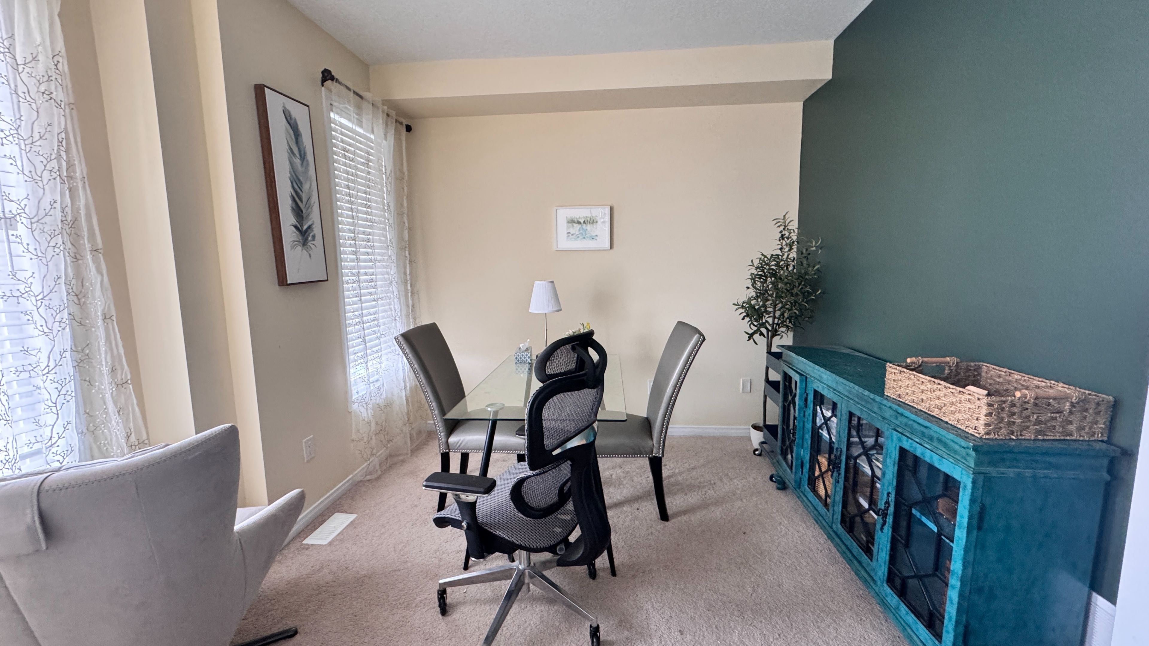 Bright and spacious 2 bedrooms available in a highly desirable neighborhood. These 2 bedrooms features a private bathroom. Furniture is included for your convenience. S ituated in a large, well-maintained home with shared access to the kitchen, living room, and main-floor office. Perfect for one or two person seeking comfort, privacy, and convenience.