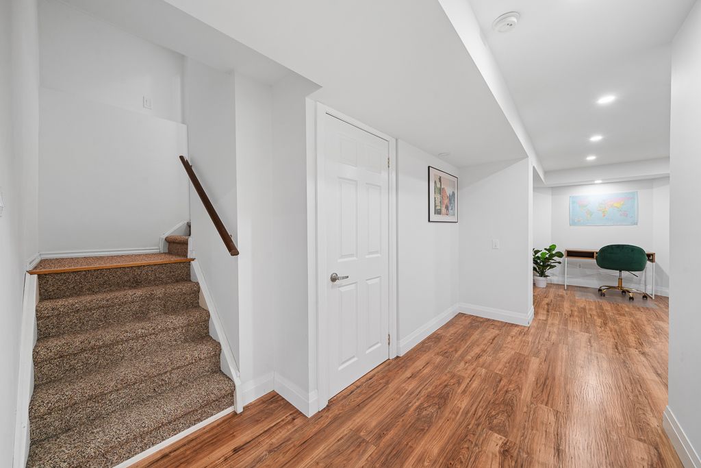 Welcome to this stunning family home, offering over 2,500 square feet of thoughtfully designed living space in the heart of south ajax. Perfectly positioned within walking distance of the lake, beach, and waterfront trails, this end-unit townhouse delivers the coastal lifestyle your family has been dreaming of. Inside, you're greeted by a bright, open-concept layout tailored for both effortless daily living and elegant entertaining. The kitchen features quartz countertops, a matching backsplash, ample cabinetry, and branded stainless steel appliances. Sophisticated upgrades, including stylish light fixtures and gleaming hardwood flooring, run throughout the main level. The upper floor features three generous bedrooms and two full bathrooms, ensuring comfort and convenience for the whole family. The versatility continues in the fully finished basement, which boasts a large recreation area with pot lights, an additional full bathroom, and plenty of storage-making it the ideal spot for movie nights, a playroom, or a home office. The outdoor space is equally impressive, featuring a large deck with sleek glass railings and a beautiful interlocked patio. A standout feature of this home is the rear-entry double-car garage. By moving the garage to the back, the main floor opens up significantly, allowing natural light to pour through the entire home. Meticulously maintained and move-in ready, this home offers a rare combination of space, style, and location.