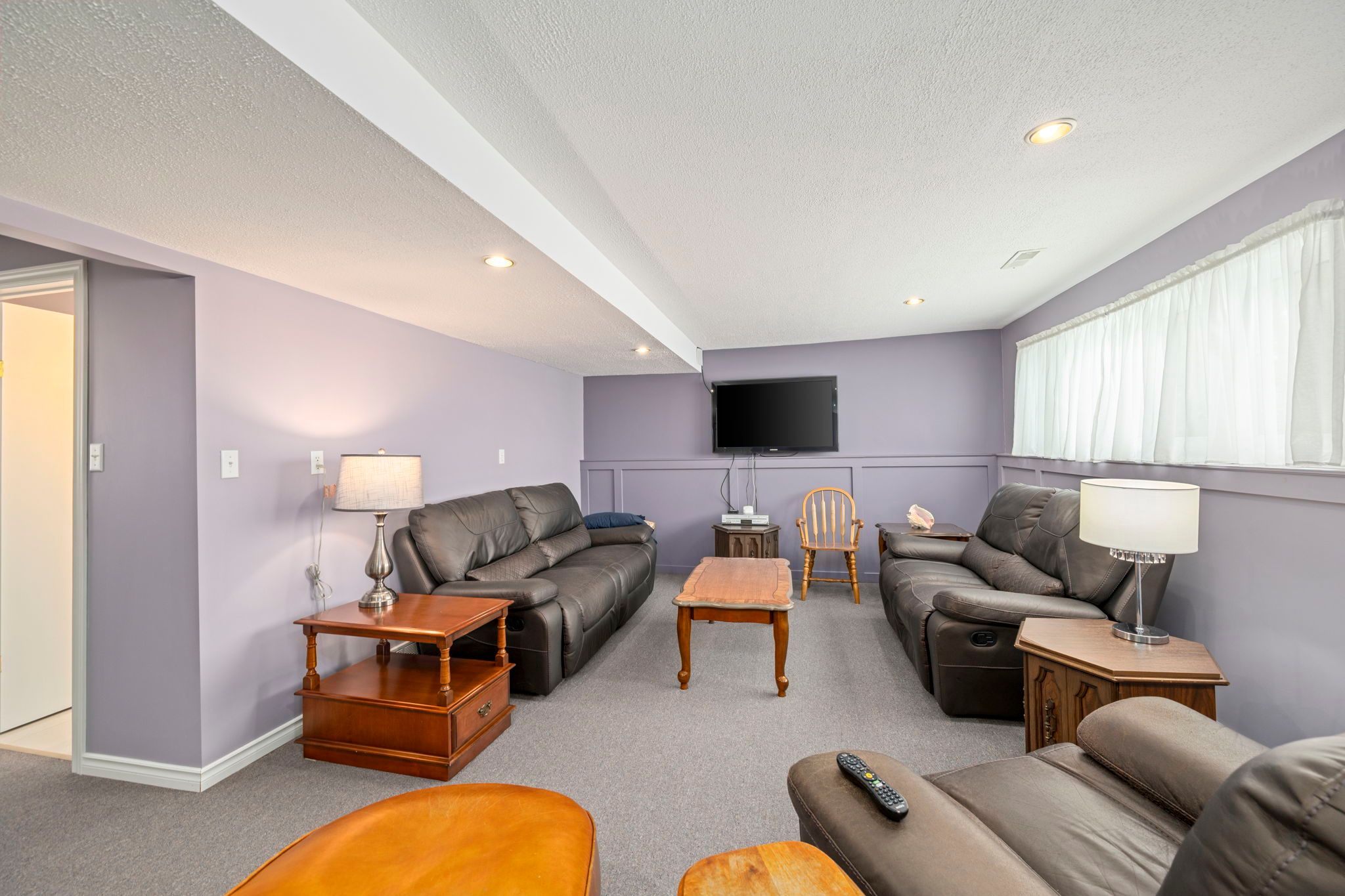 • Lower-level family room with large windows and in-floor heating.