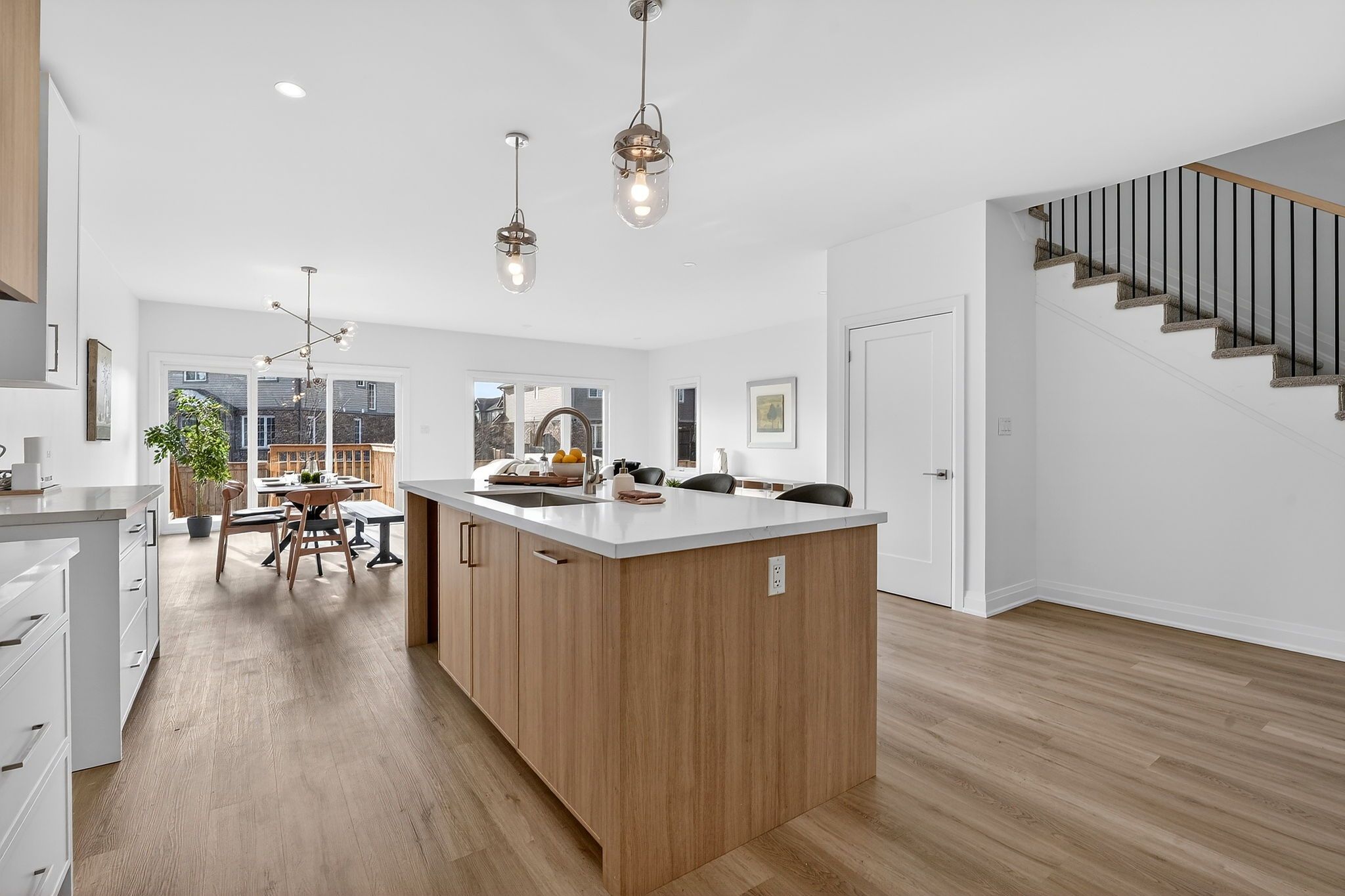 • Modern open-concept main floor with a stylish kitchen and large island.