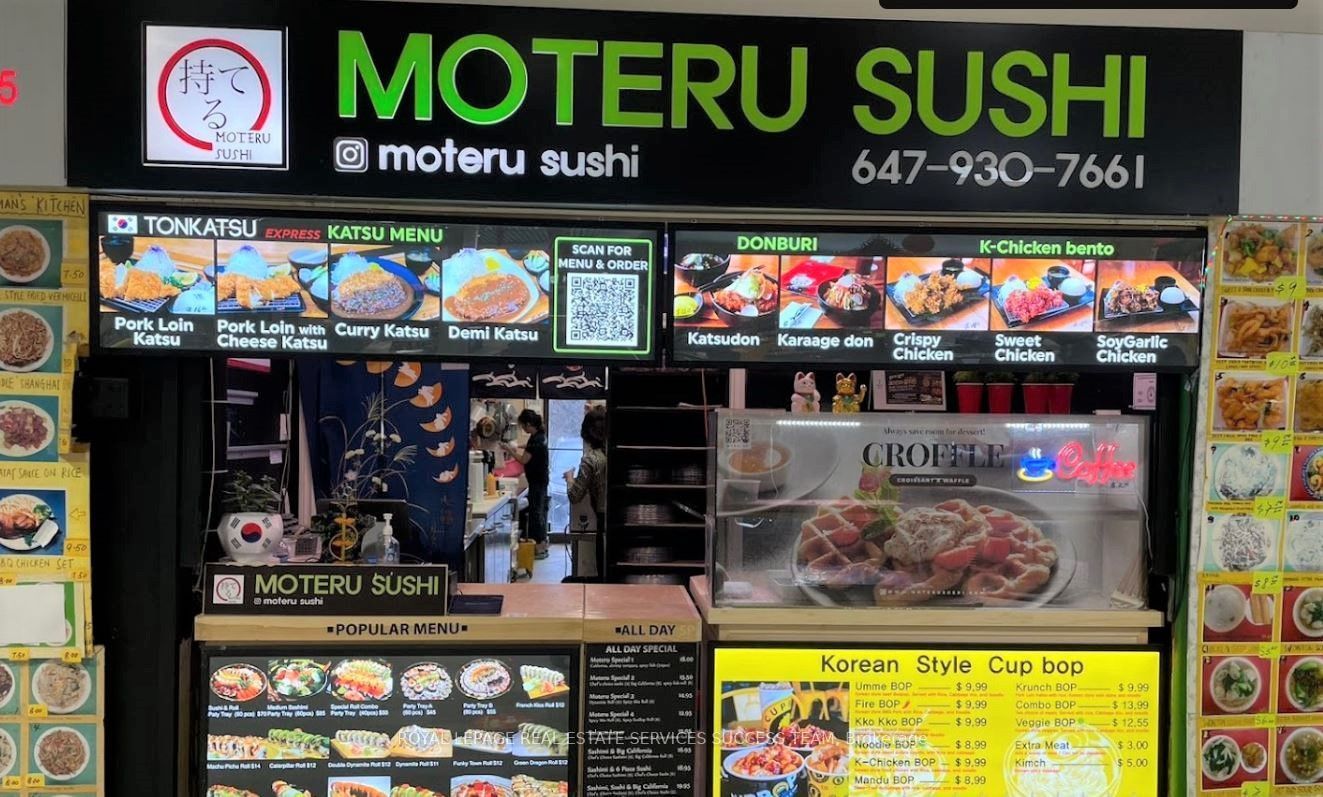 Established busy sushi & korean restaurant in famous chinese dragon mall in mississauga. Next to anchor al premium supermarket. Busy foodcourt with approximately $50,000 monthly sales. Rent $5419. 47/tmi included. Good profit. Fully equipped with exhaust hood system and kitchen equipment. Open 7 days 11 am till 9 pm. Please book visit with listing agent. Foodcourt hosts popular restaurants and bubble tea shop that draws good crowds. Owner can train you!