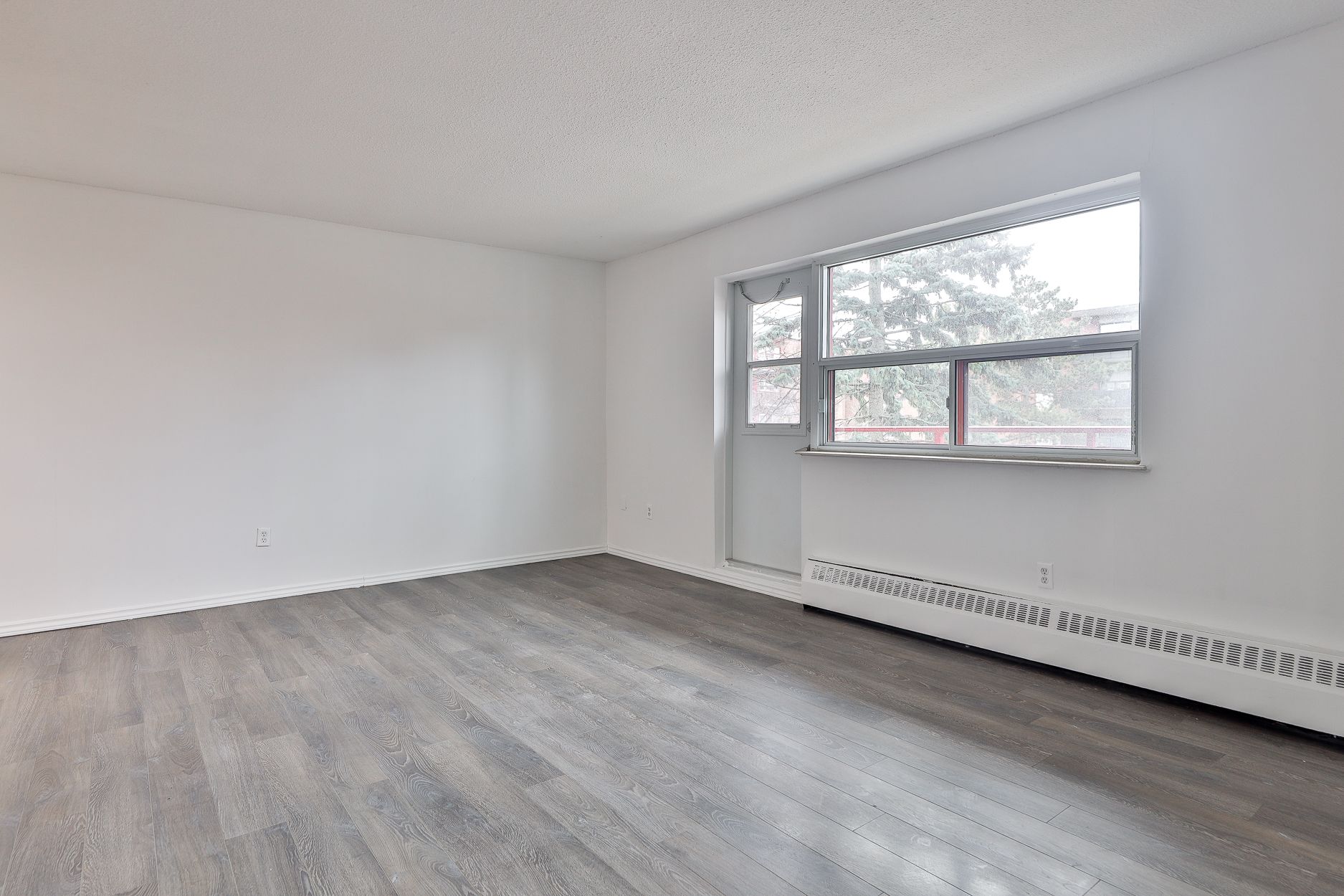 • Bright, open-concept living/dining area with oversized windows for natural light.