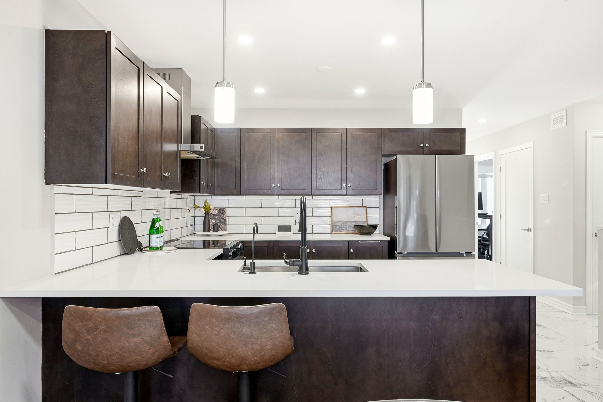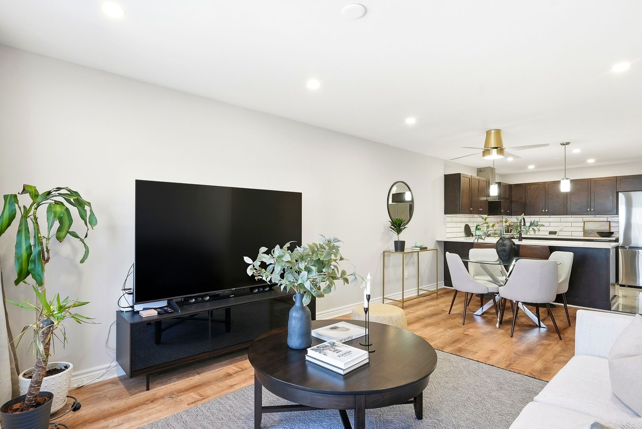 Beautifully appointed neilcorp-built freehold end-unit bungalow townhome in the heart of almonte! Offering 3 bedrooms, 3 full bathrooms, a fully finished basement, extended driveway, ev charger, and thoughtful upgrades throughout. The main level showcases a stunning modern kitchen featuring brand-new stainless steel appliances, an elevated backsplash, and beautiful quartz countertops. The open-concept design flows seamlessly into the dining and living areas, creating an inviting space perfect for both everyday living and entertaining. Large patio doors lead to a spacious deck, screened gazebo, and fully fenced backyard - a tranquil outdoor retreat. The spacious primary bedroom offers generous closet space and a beautifully upgraded ensuite complete with a spa-inspired bath and shower, tile finishes, and a double-sink vanity. The second bedroom - ideal as a guest room or home office - along with an upgraded main bath and convenient main-floor laundry complete the main level. The professionally finished basement expands the living space with a generous family room perfect for movie nights, a dedicated workout area and home office space, a third bedroom with its own ensuite, and abundant storage. Enjoy the best of almonte's small-town charm paired with modern convenience - just steps from scenic walking trails, parks, local shops, and favourites like equator coffee and joe's italian kitchen. Don't miss this opportunity to live in a vibrant, welcoming community while enjoying stylish, low-maintenance living.