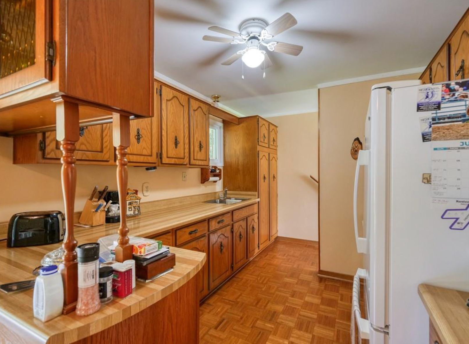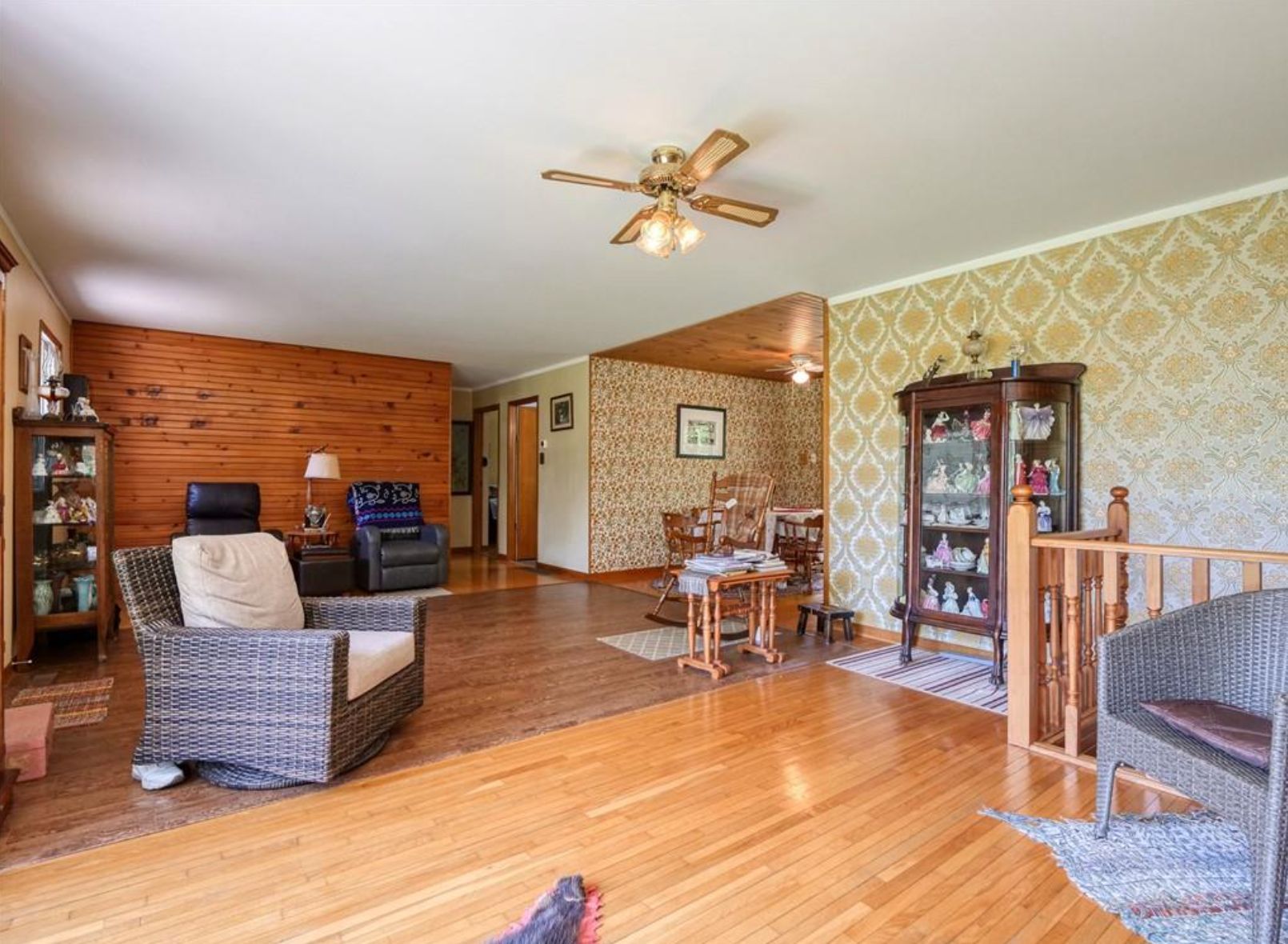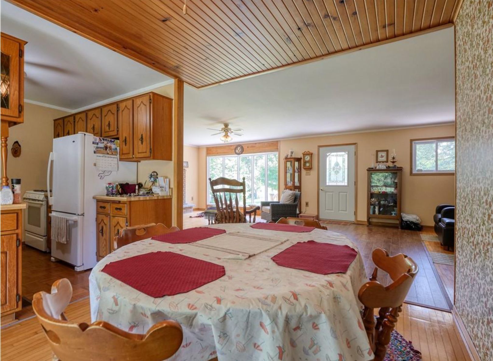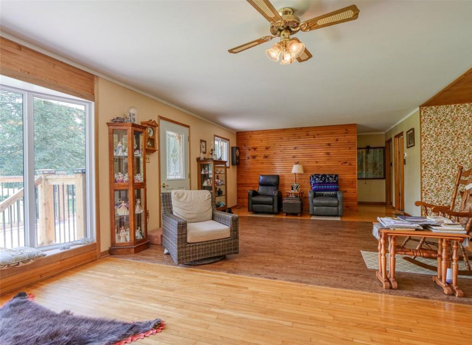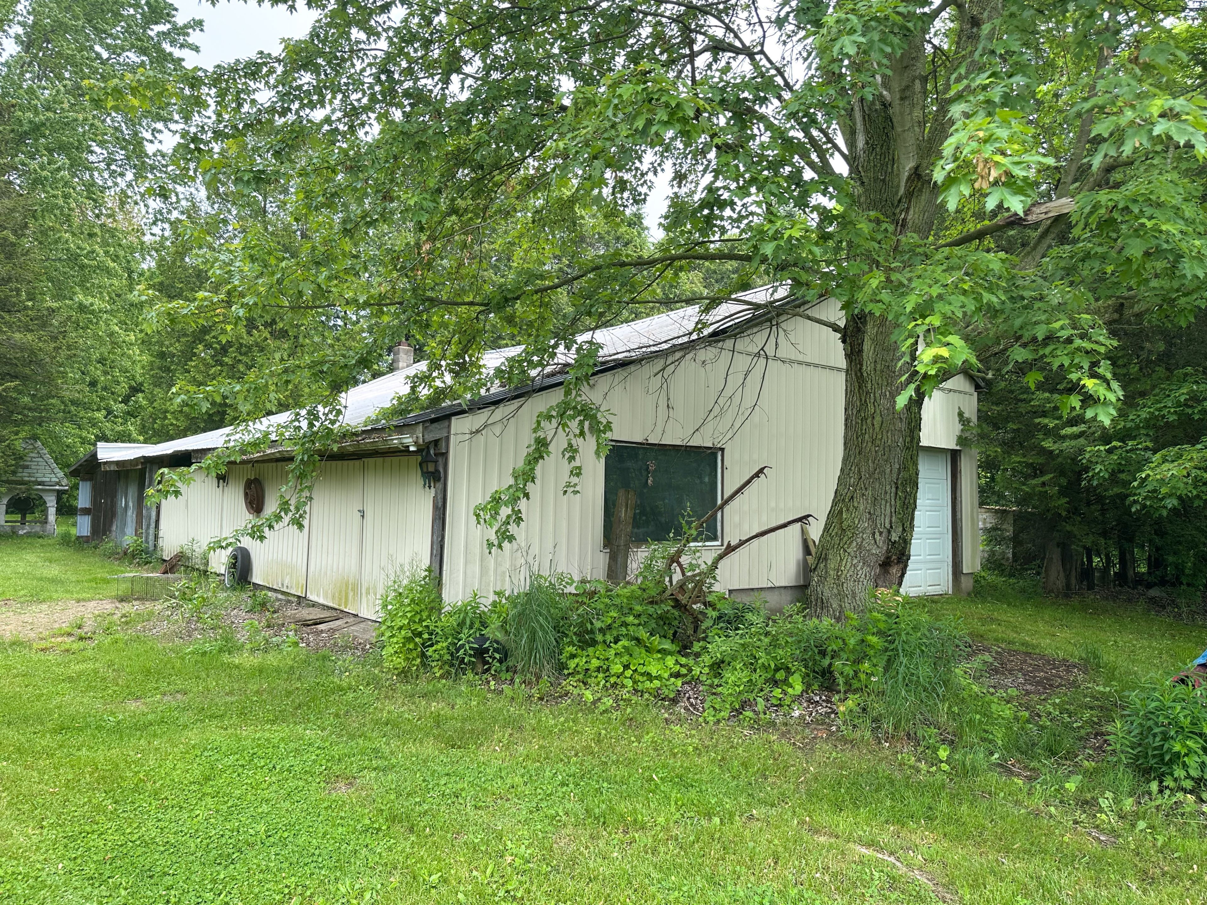Nestled on a sprawling 49. 04-acre lot, this serene property offers a tranquil escape with a wooded backdrop and crop field. Featuring 2 bedrooms and 1 bathroom across a spacious 1614 sq ft layout, this home is uniquely designed for comfort and accessibility. The property highlights include a large fenced-in pasture, a pond, and extensive outdoor living spaces, a 10x28 ft front porch and a covered 10x22 ft back deck with walkout patio doors from the dining area, perfect for entertaining or peaceful evenings. Outside you will also find a large garage, a workshop and a couple sheds. The home is well-equipped with both a gas stove and an outlet for an electric stove. The walkout basement opens onto a covered patio and boasts in-law suite capabilities, adding flexibility to the living space. Accessibility is thoughtfully addressed with a wheelchair-friendly 3-ft wide front entrance door. For those seeking a quiet life in harmony with nature, this property is an ideal choice. Listed for sale, it's ready for you to call it home.