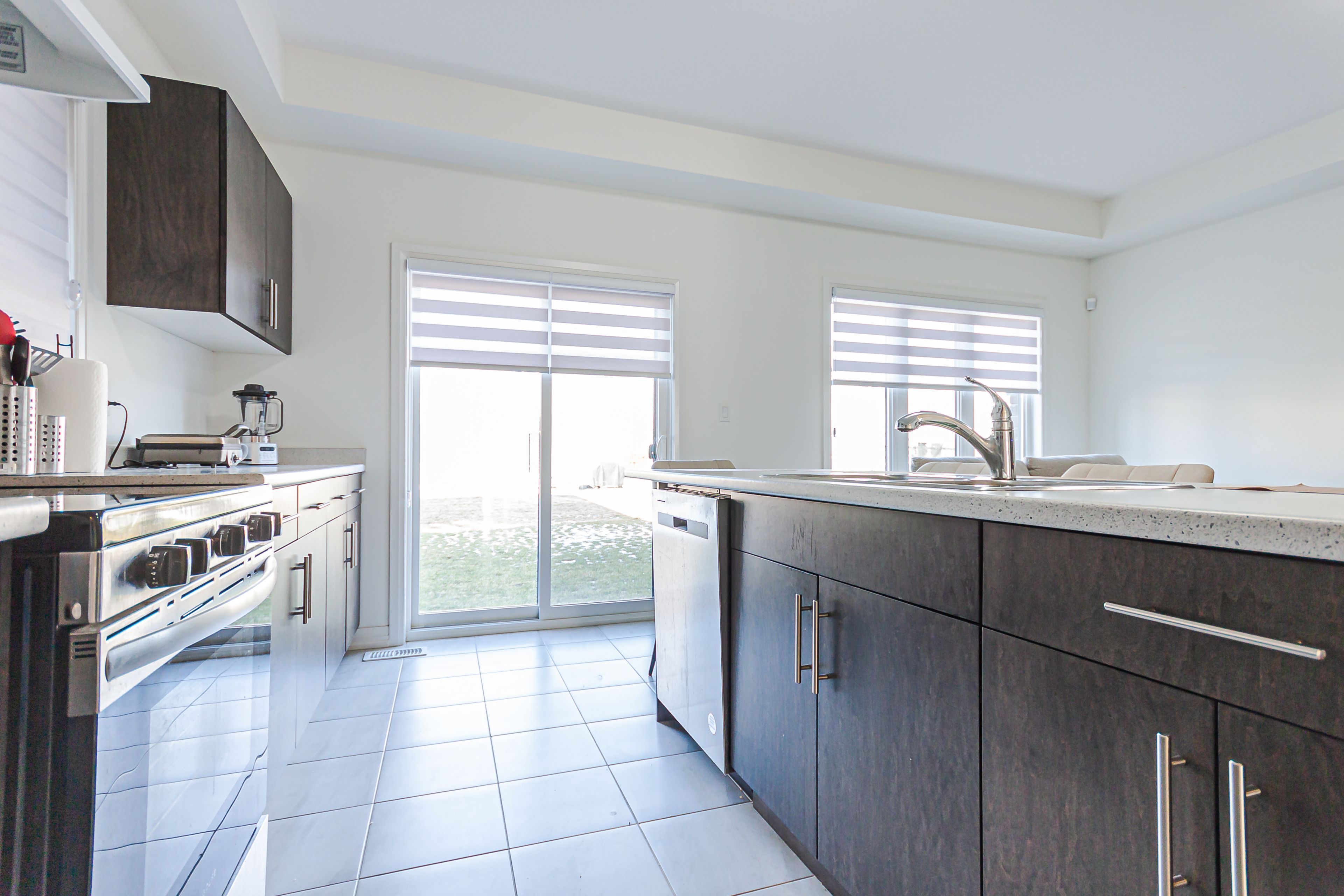• Contemporary kitchen with upgraded cabinetry and stainless steel appliances.