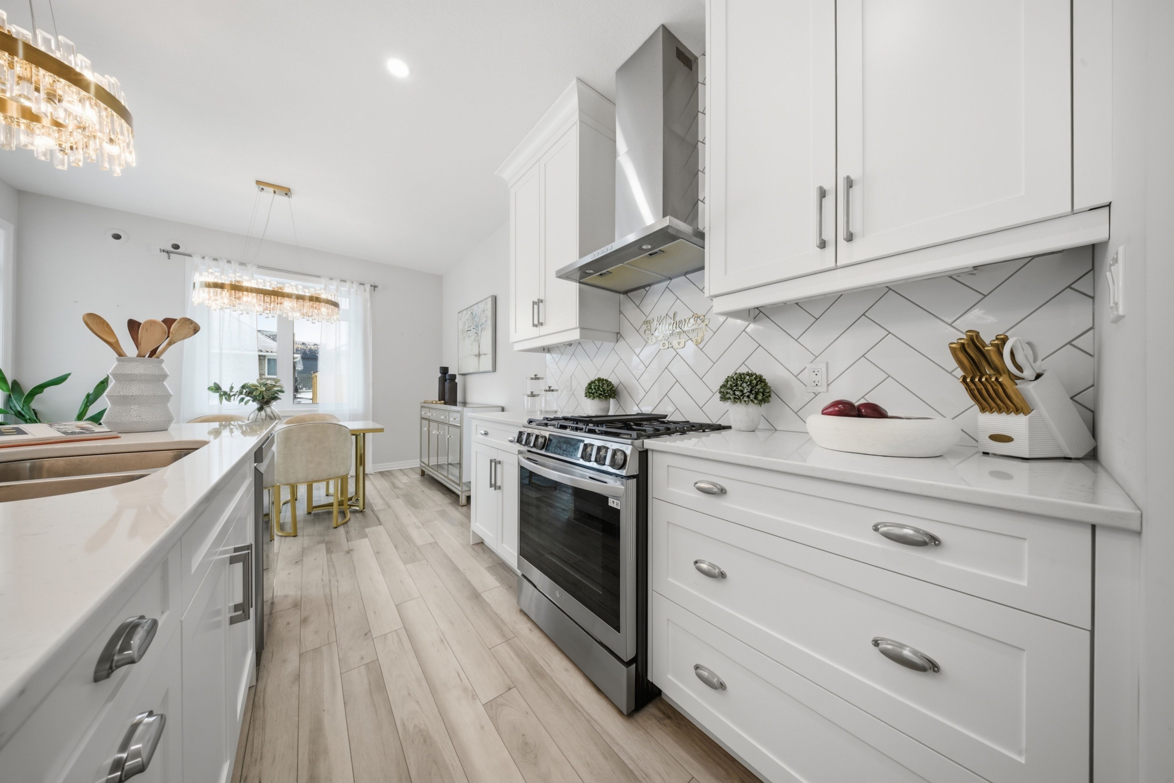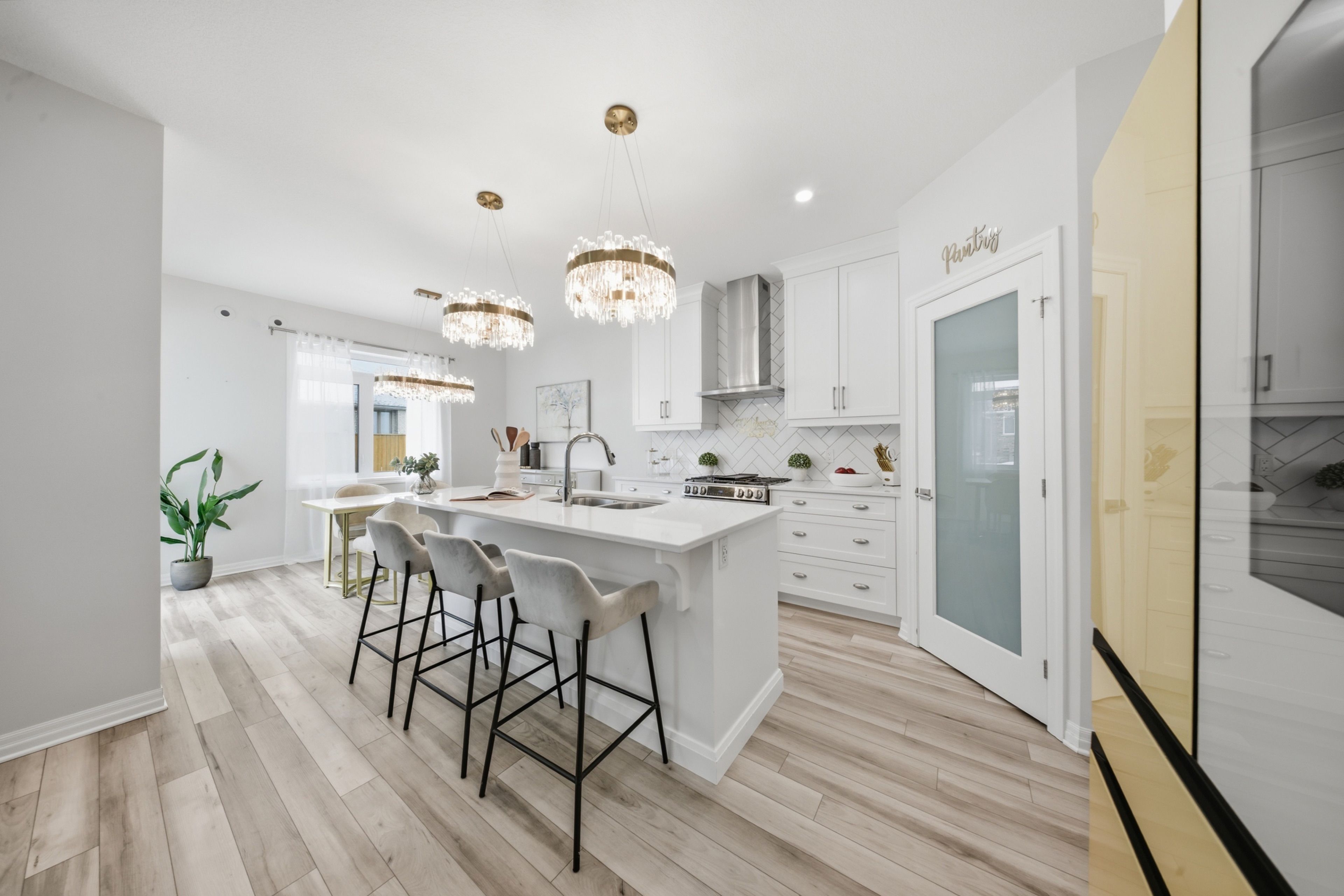• Chef-inspired kitchen featuring quartz counters and a large island.
