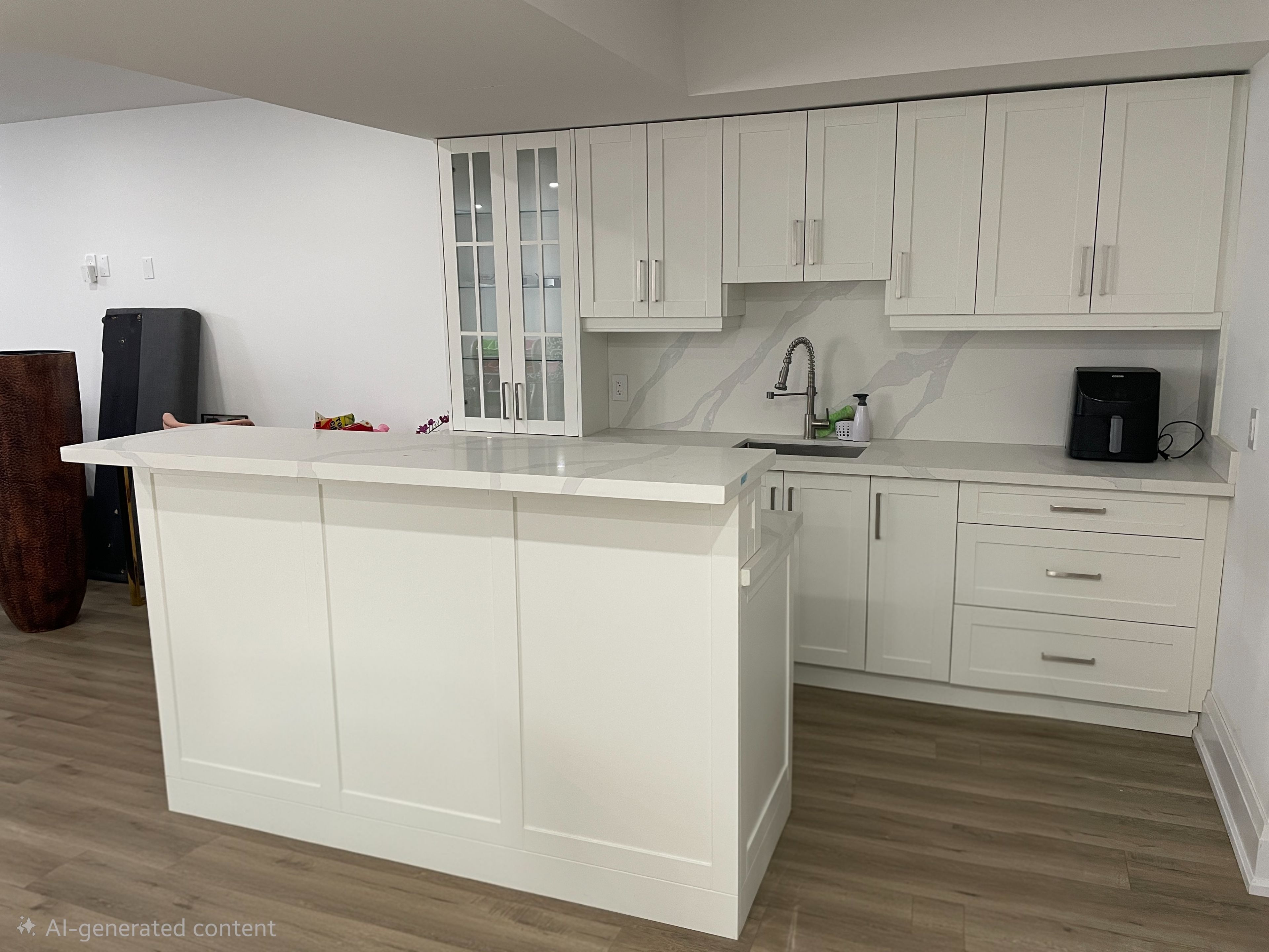 • Spacious kitchen with quartz countertops and stainless-steel appliances.