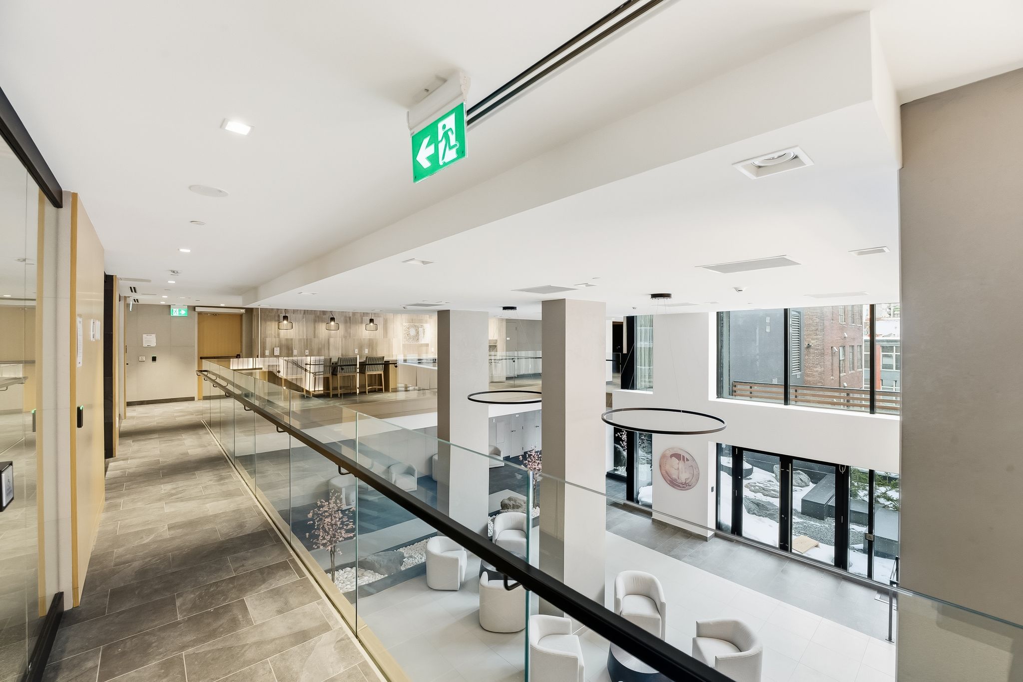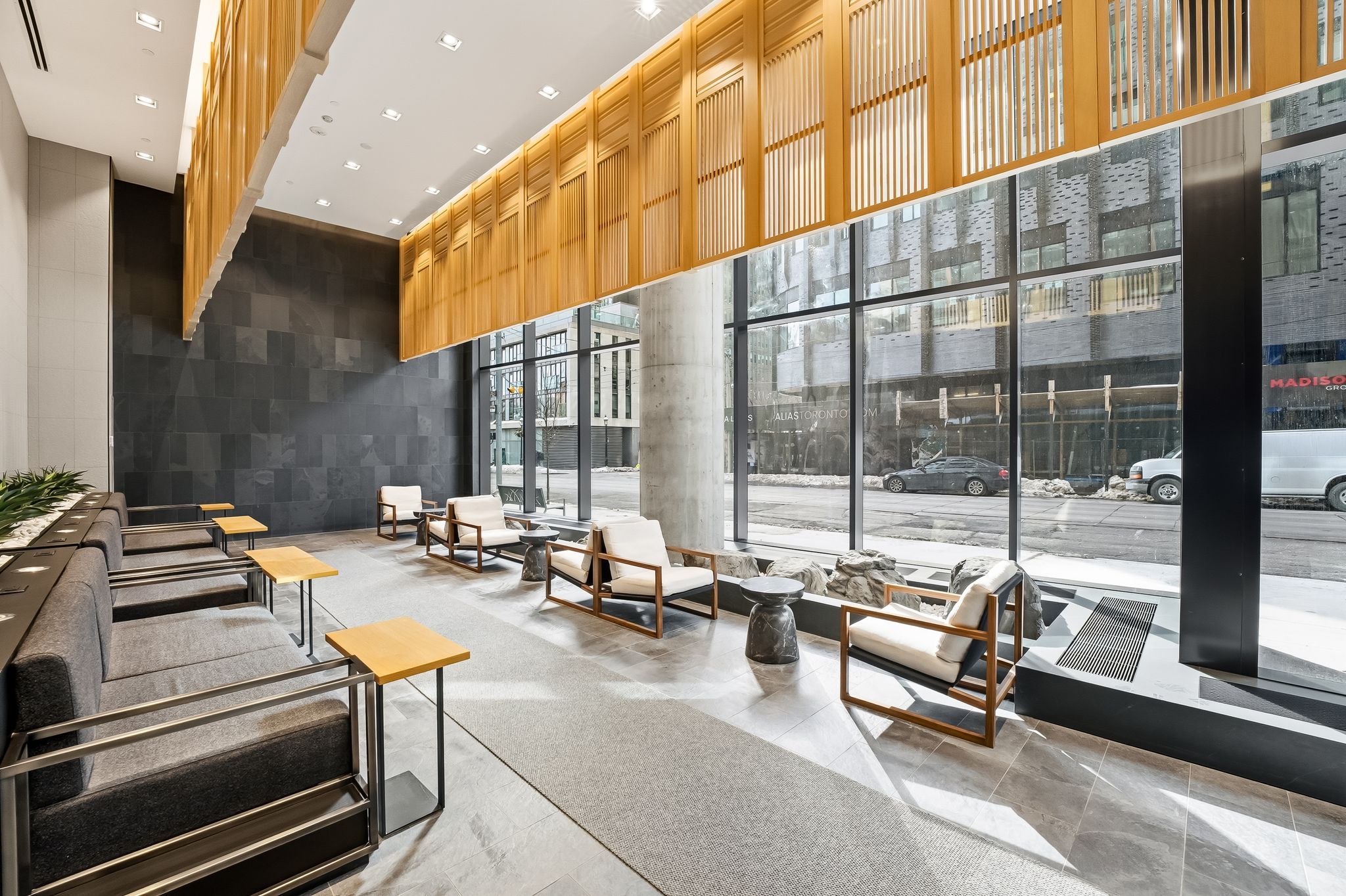 • Bright corner suite with floor-to-ceiling windows and natural light.