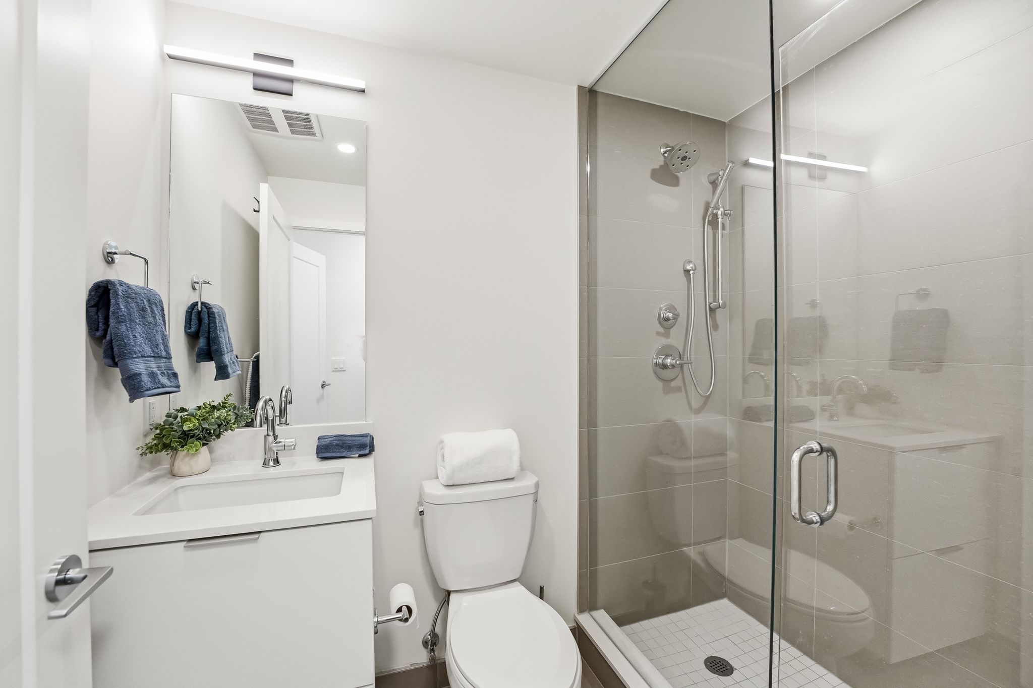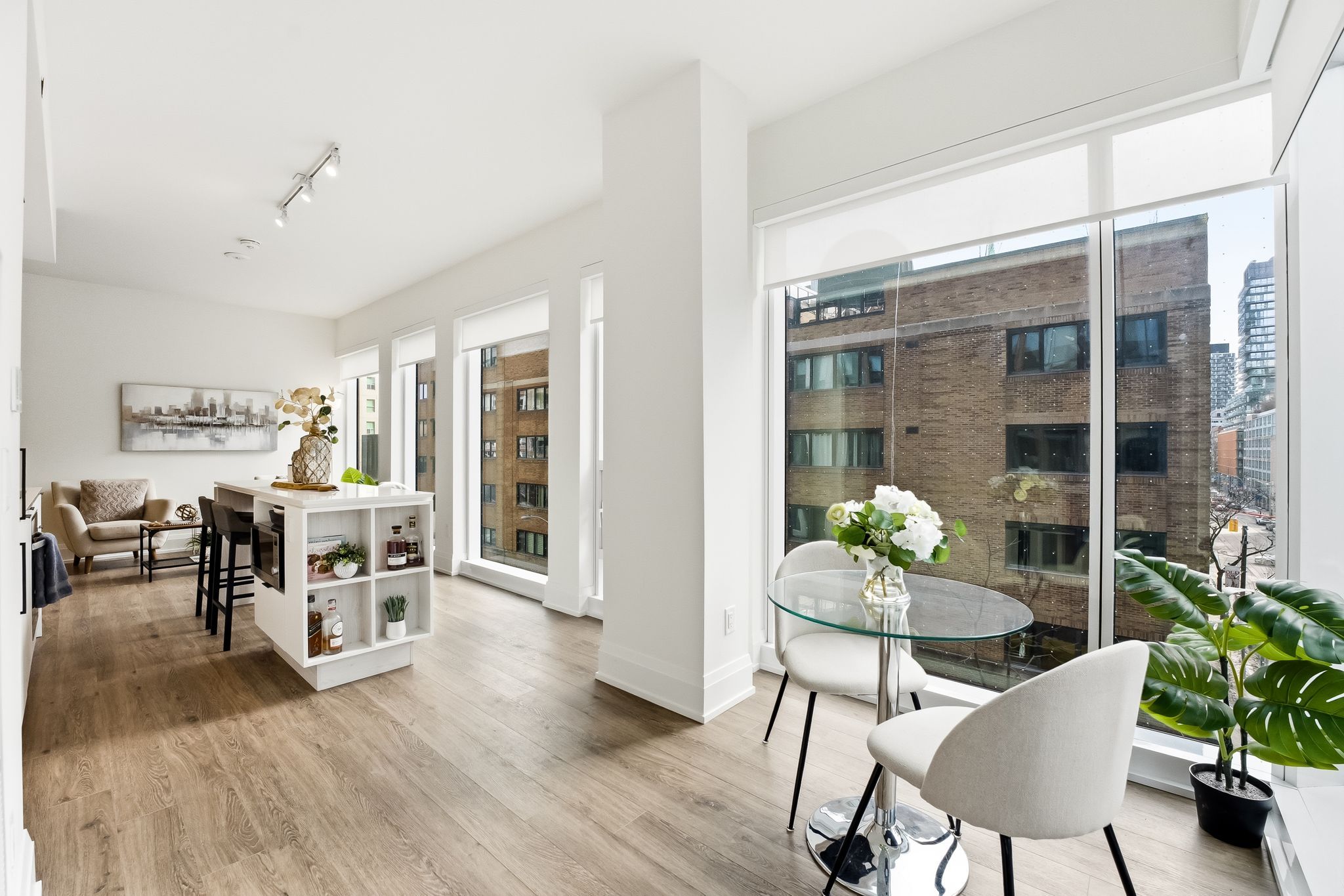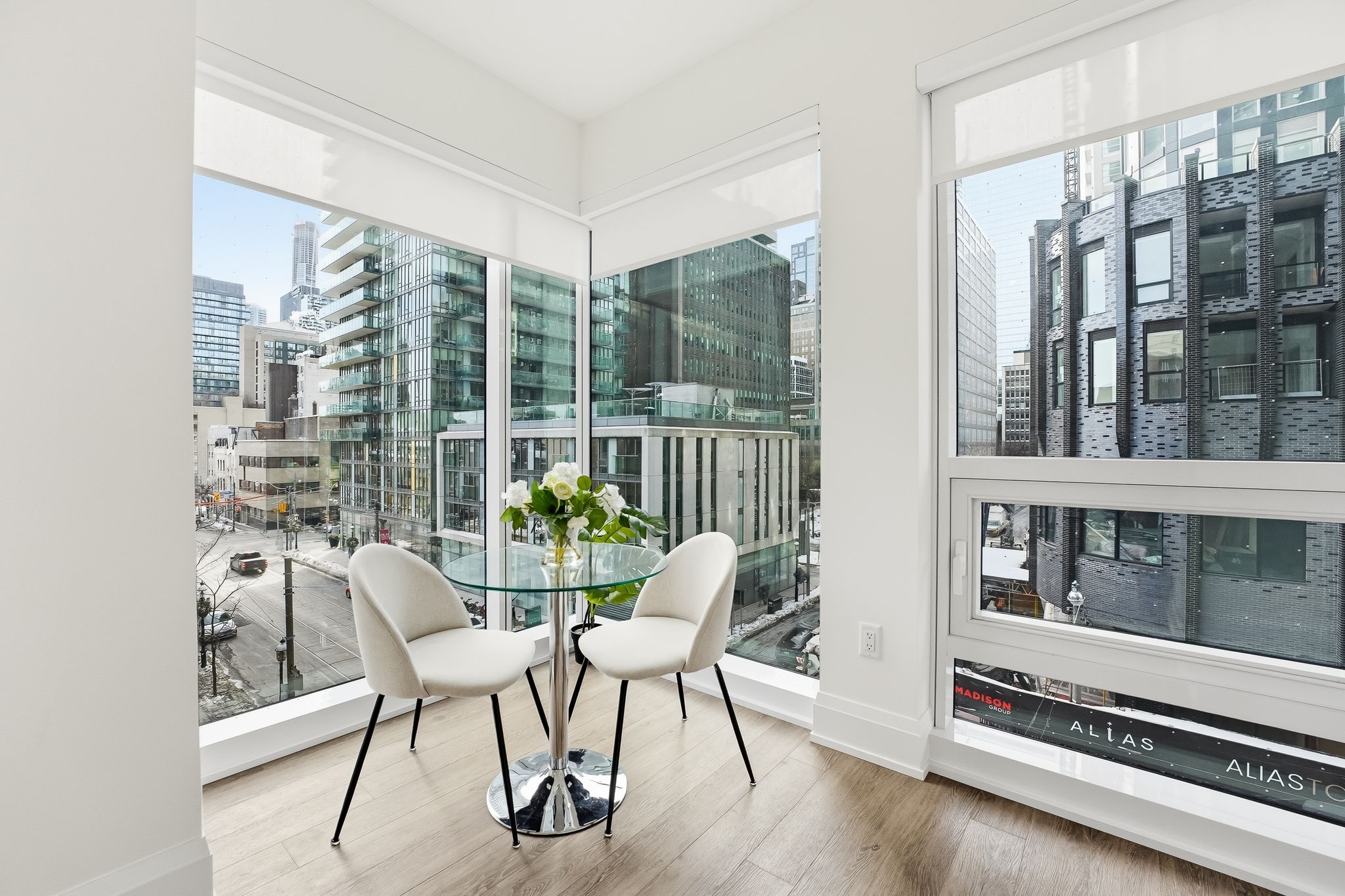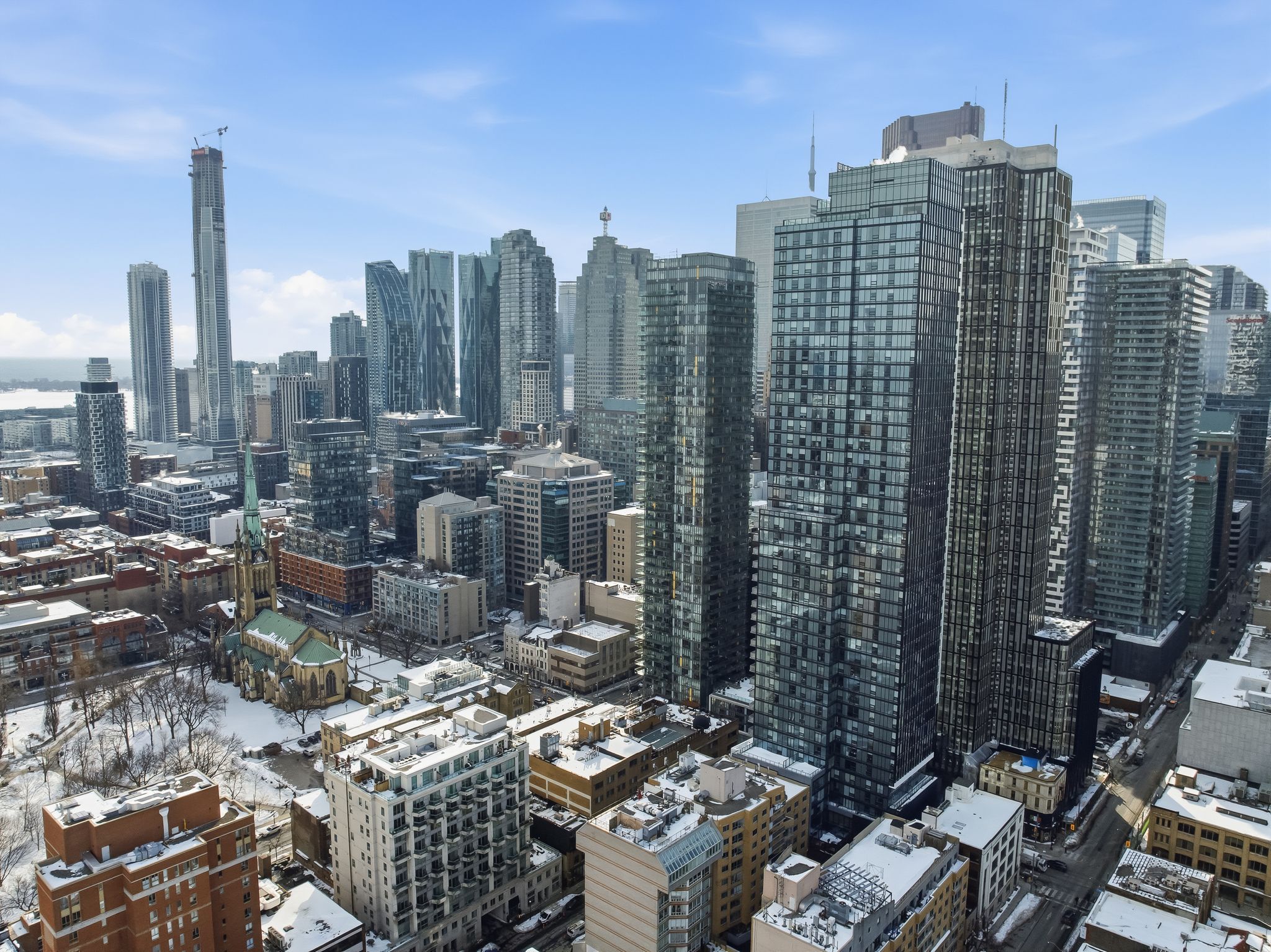 Experience elevated urban living in this stunning 3-bedroom, 2-bathroom residence offering 993 sq. Ft of smart-space at the saint condos by minto. This bright corner suite is wrapped in floor-to-ceiling windows, with a 9. 5 ft ceiling, and incredible natural light. Enjoy a beautifully finished interior featuring stainless steel appliances, a contemporary kitchen with caesarstone counters and backsplash, a sleek kitchen island, modern cabinetry, undermount sinks, and premium hardwood flooring throughout. The spa-inspired bathrooms include high-end finishes, with a luxurious 3-piece ensuite in the primary bedroom. The unit includes remote-controlled automated blinds on all windows plus lots of upgrades throughout. A rare underground parking with ev charger included: an exceptional value in this premier downtown residence! The saint is toronto's new landmark wellness residence, offering 17,000 sq ft of amenities, including over 10,000 sq. Ft dedicated to health + wellness: rain chromotherapy room, salt meditation room, spa rooms, yoga + spin studio, fitness centre, co-working lounge, party room & more. Plus, the smart lock system makes this building very safe. Steps to the financial district, ttc, eaton centre, st. Lawrence market, many fine dining options, hospitals & universities. A truly remarkable opportunity to live in one of downtown toronto's most desirable new buildings.