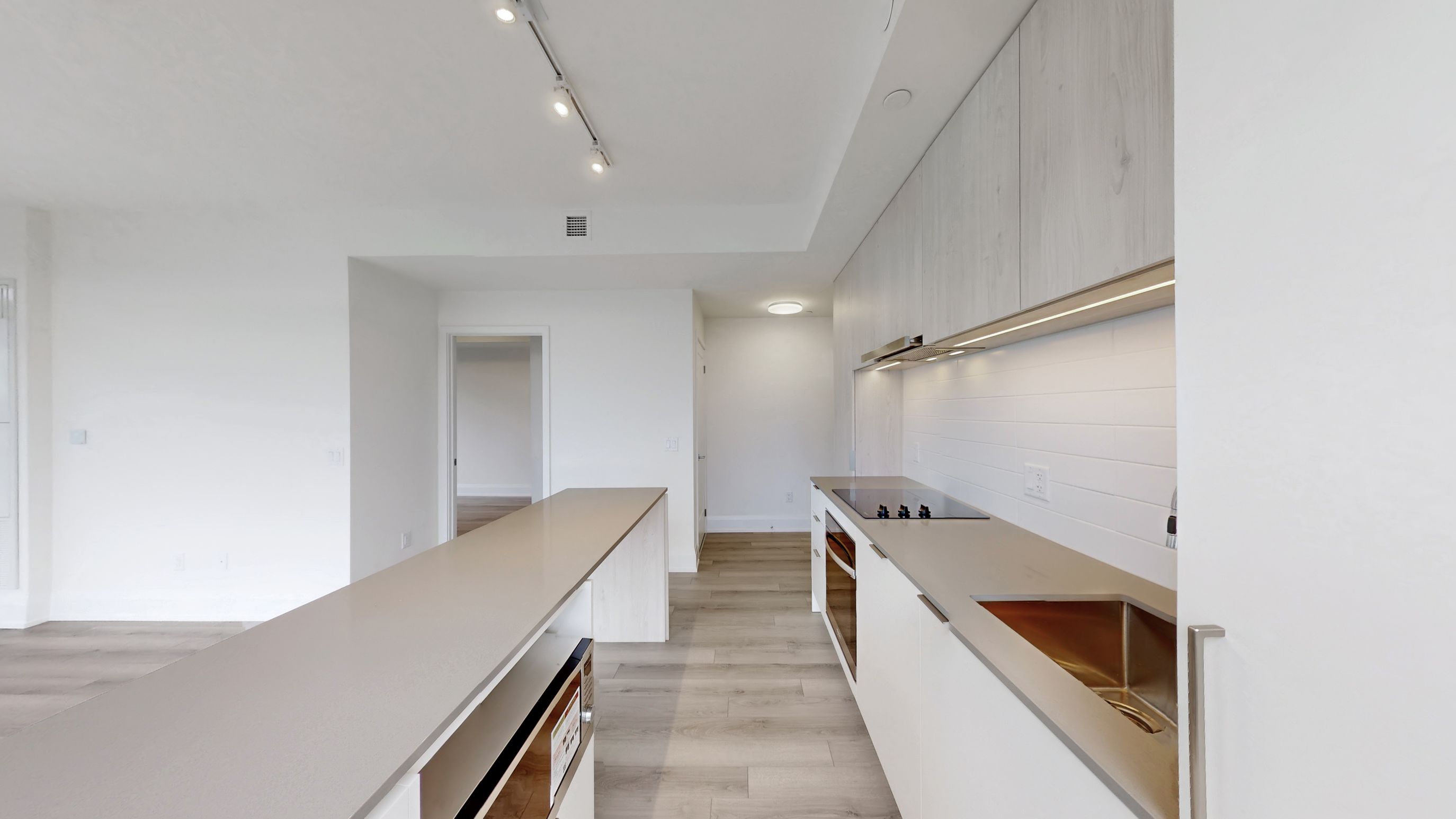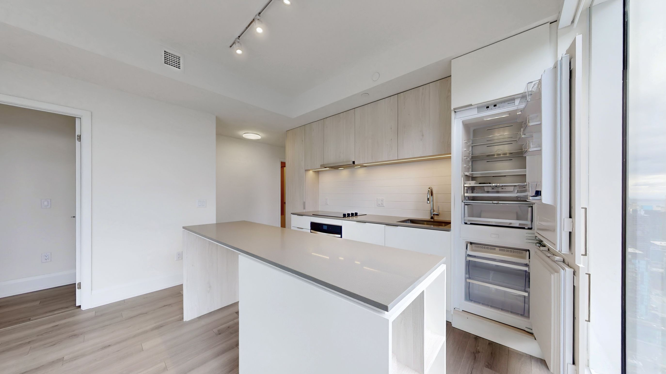 • Modern open-concept kitchen equipped with premium finishes and a center island.