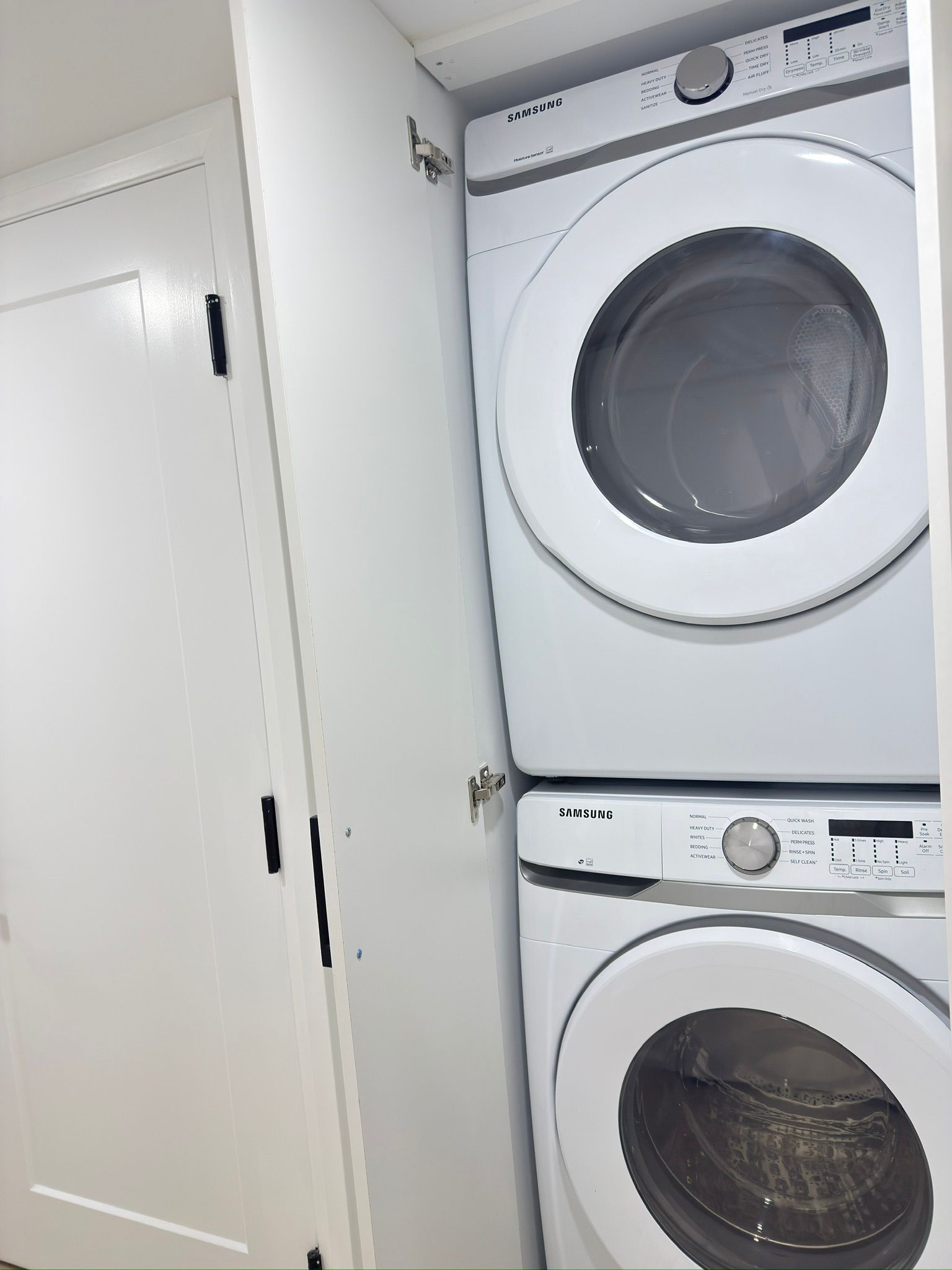 • Modern kitchen features quartz countertops and stainless steel appliances.