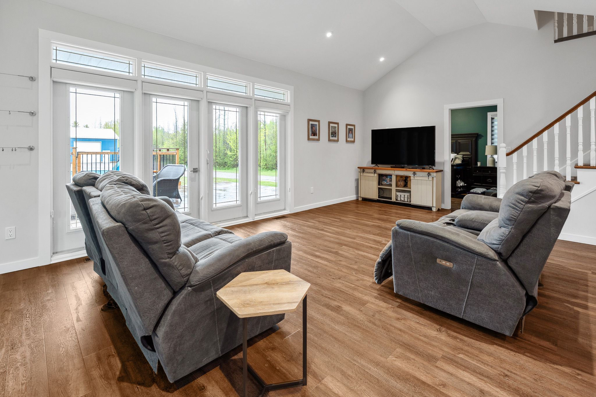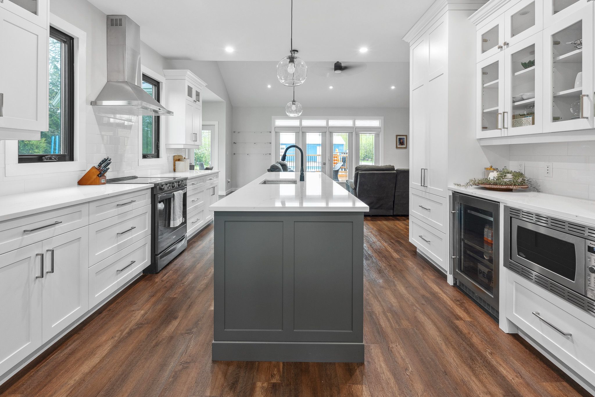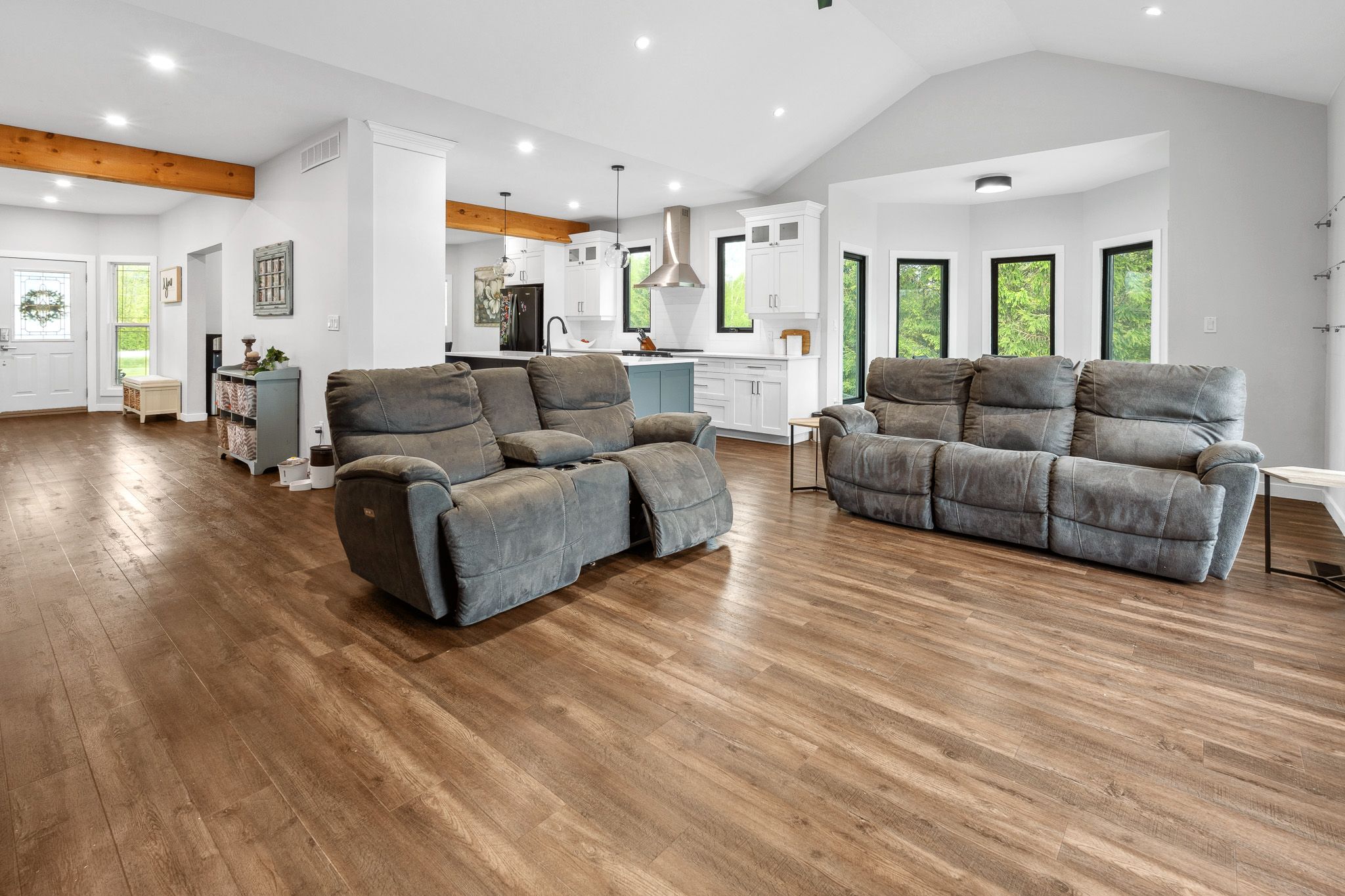 • Modern kitchen flows into a vaulted great room for relaxed living.