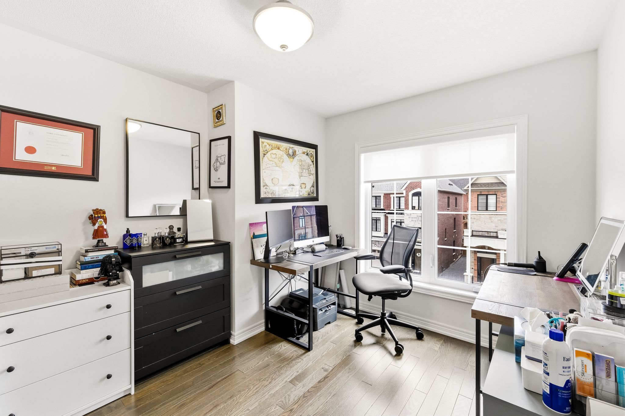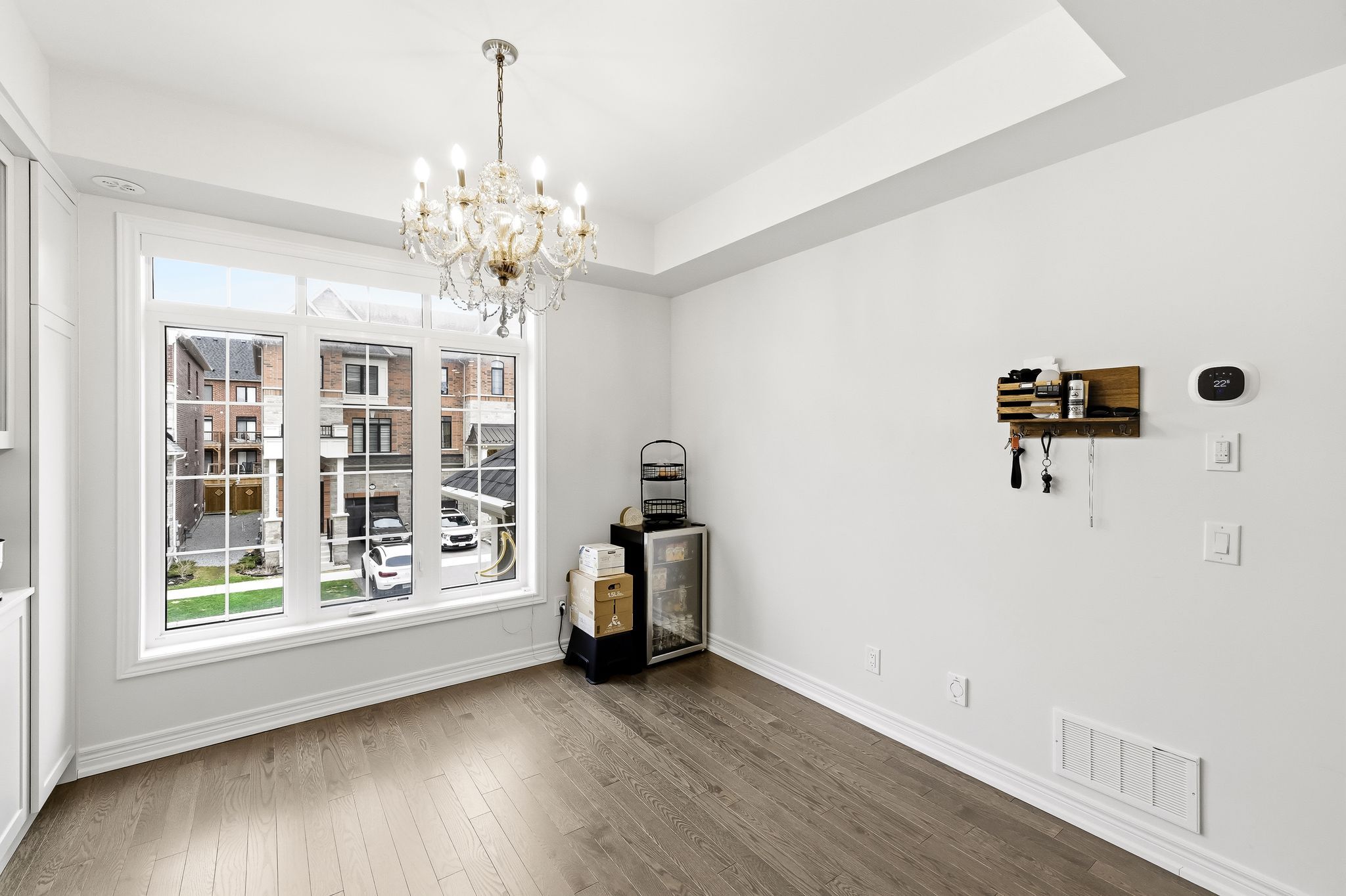 Welcome to this stunning freehold townhome built by prestigious heathwood homes, nestled in one of whitby's most exclusive pockets! This modern and exquisite 3-bedroom, 3-bathroom home is loaded with extensive upgrades and exceptional craftsmanship throughout. Brand new vintage hardwood flooring flows seamlessly across every level, complemented by designer potlights. The custom chef's kitchen features lg stainless steel appliances, quartz countertops, and designer lighting, perfect for entertaining. The dining room has been thoughtfully upgraded with custom built-in storage and display cabinetry, seamlessly extending the kitchen space and incorporating a dedicated broom closet and pantry, a rare and practical touch rarely found in townhomes. The spacious primary bedroom on the second floor boasts a luxurious ensuite with a glass shower and double vanity, as well as his & hers closets. Step outside to a backyard with lush green space, plus a private balcony, ideal for relaxing or hosting. This smart home is equipped with an ecobee thermostat, ecobee video doorbell and camera, and smart exterior and front door lighting, all controlled seamlessly through the app. Includes 2 parking spots plus a garage. Minutes to hwy 412 for effortless commuting. A rare opportunity in a sought-after community, not to be missed!