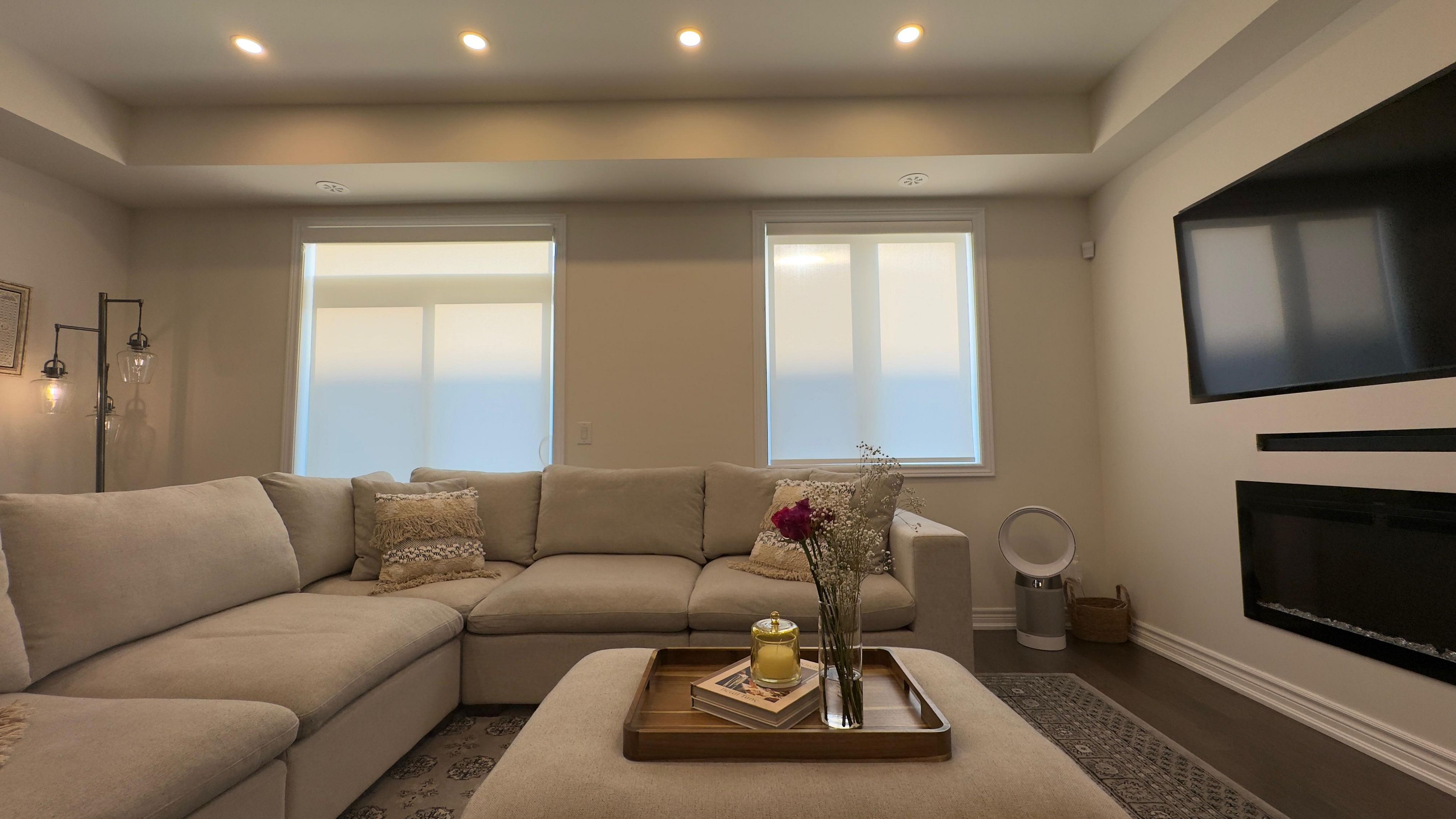 • Designer lighting and potlights create a bright atmosphere.