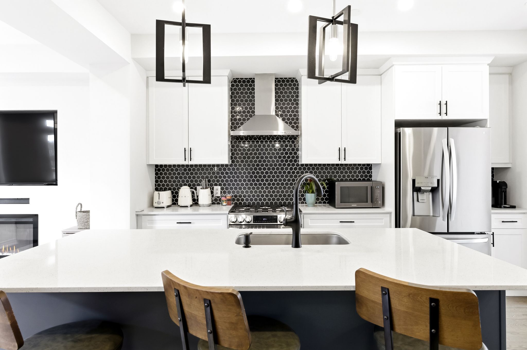 • Custom chef's kitchen with LG appliances and quartz countertops for easy entertaining.