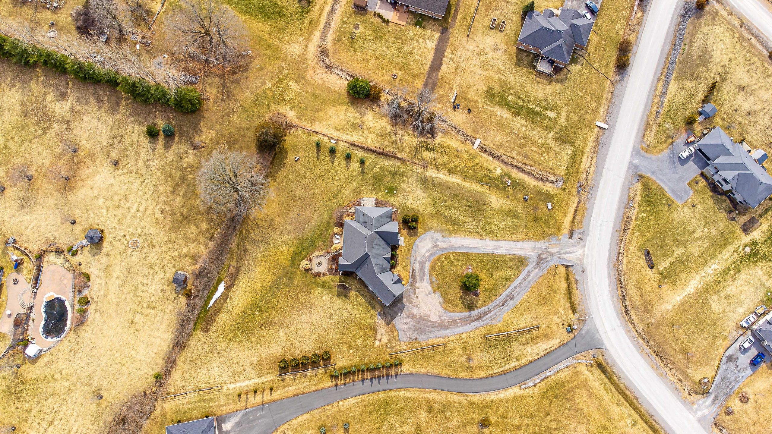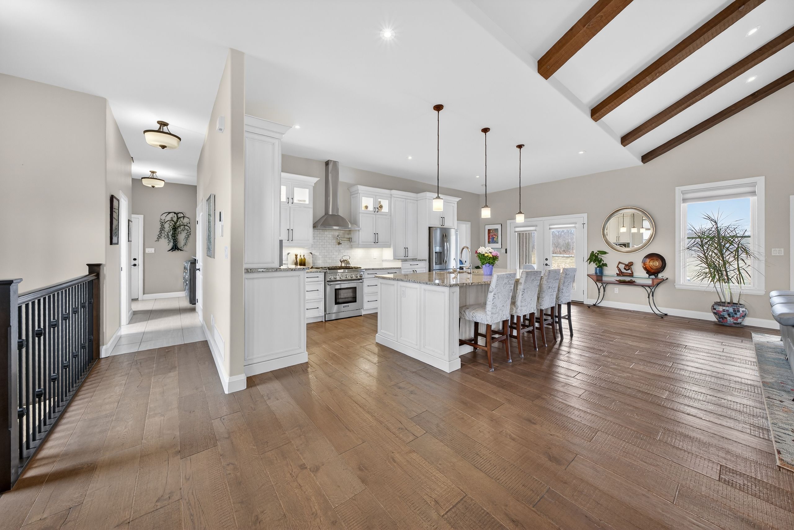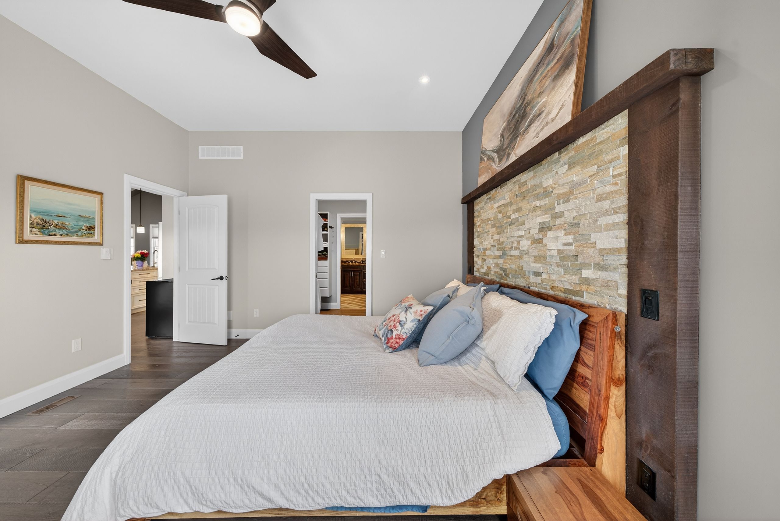• Custom-built bungalow on a private, elevated lot with rustic charm.