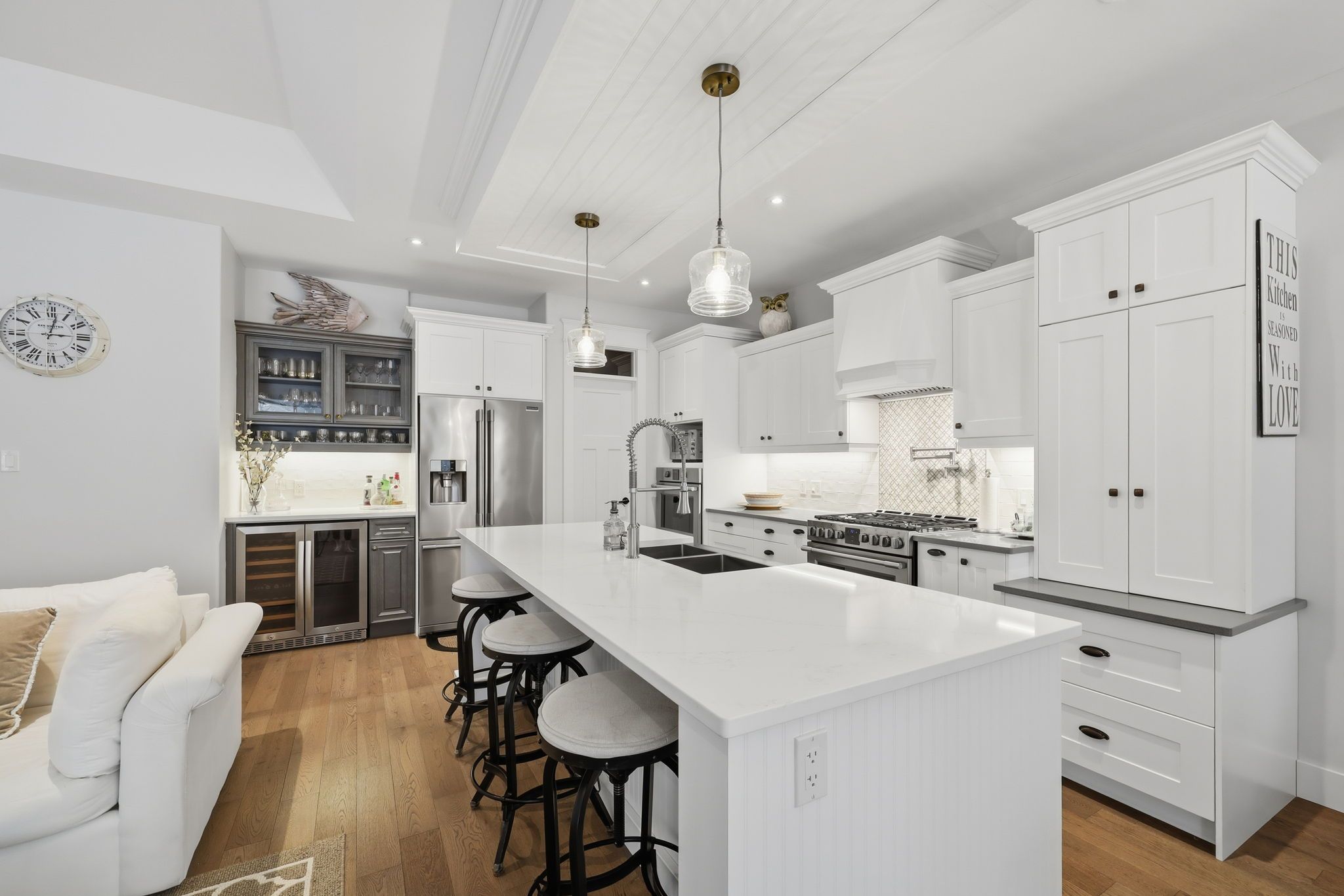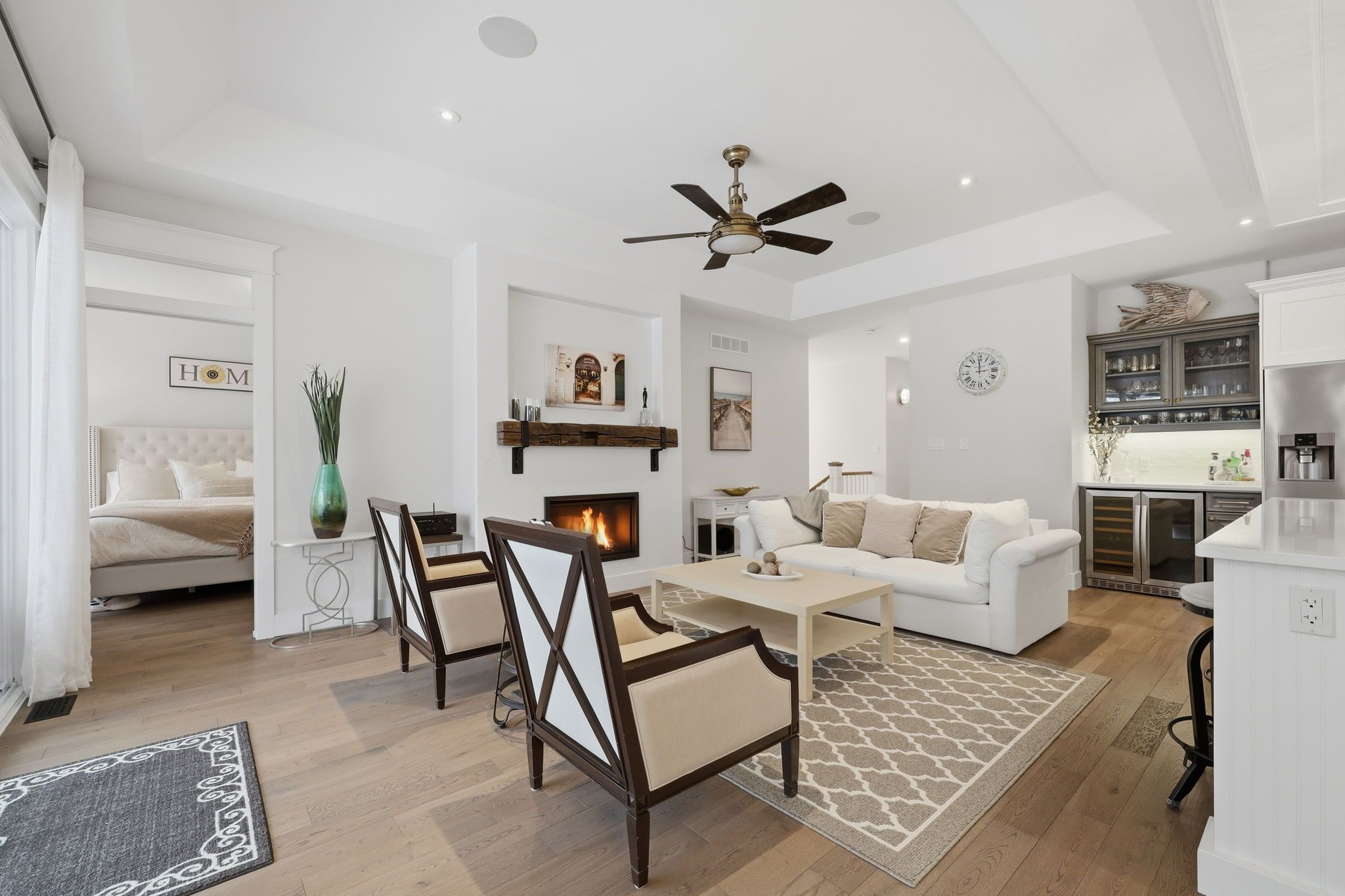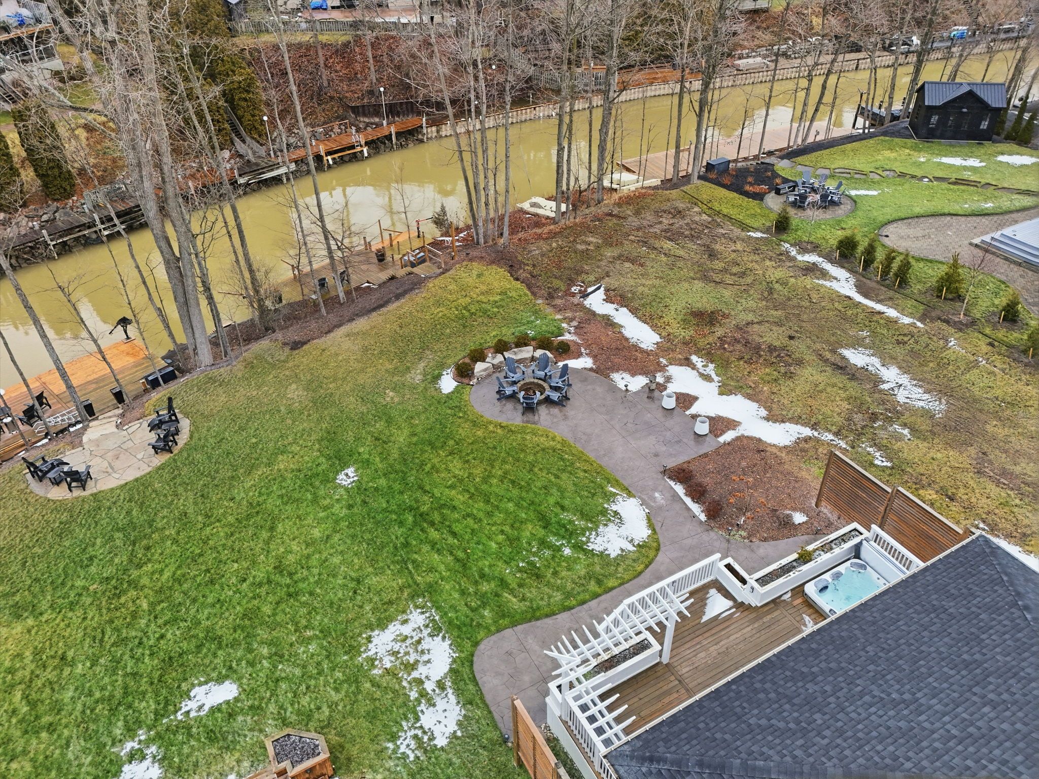 Rare waterfront - river opportunity leads right into lake huron!!! A stunning custom bungalow by award-winning medway homes inc. Ideally situated along the ausable river in the heart of grand bend. Built in 2017, this exceptional home offers over 3,000 sq ft of beautifully finished living space. Say hello to luxury, functionality, and refined riverfront living! A select few have the privilege to keep their boat at their very own private dock. The deceiving curb appeal keeps this gem hidden and private. An oversized 33-ft garage with 13-ft ceilings and an 11-ft door-designed to easily accommodate a 23-ft boat. Step into a private, resort-style backyard featuring a brand-new 42-ft, three-level dock with dinghy hoist, stamped concrete patio with built-in fire pit. At the house is a two-tier deck with partial coverage, bbq area, and hot tub perfect for entertaining or unwinding in total privacy. Inside, 9-ft ceilings and a bright open-concept meet the chef-inspired kitchen. Offers quartz countertops, modern appliances, and a large island ideal for hosting. The living area is anchored by a gas fireplace and oversized patio doors showcasing tranquil river views. A custom mudroom with dog wash station (or kids wash station for that matter... Beach life brings the sand) adds thoughtful convenience. The main-floor primary suite is a serene retreat with direct deck and hot tub access, walk-in closet, and a stylish 3-piece ensuite. All bathrooms include in-floor heating. The fully finished basement provides additional space to relax, work, or host guests. Offered fully furnished with curated brian gluckstein pieces, this move-in-ready home is complete with privacy fencing on both sides and is just minutes from the beach, marina, and downtown grand bend. Please refer to https://www. Lambtonshores. Ca/invest-and-build/ for updates on grand bends upcoming projects improving the community. A rare opportunity to own a designer riverfront residence with exceptional outdoor amenities.