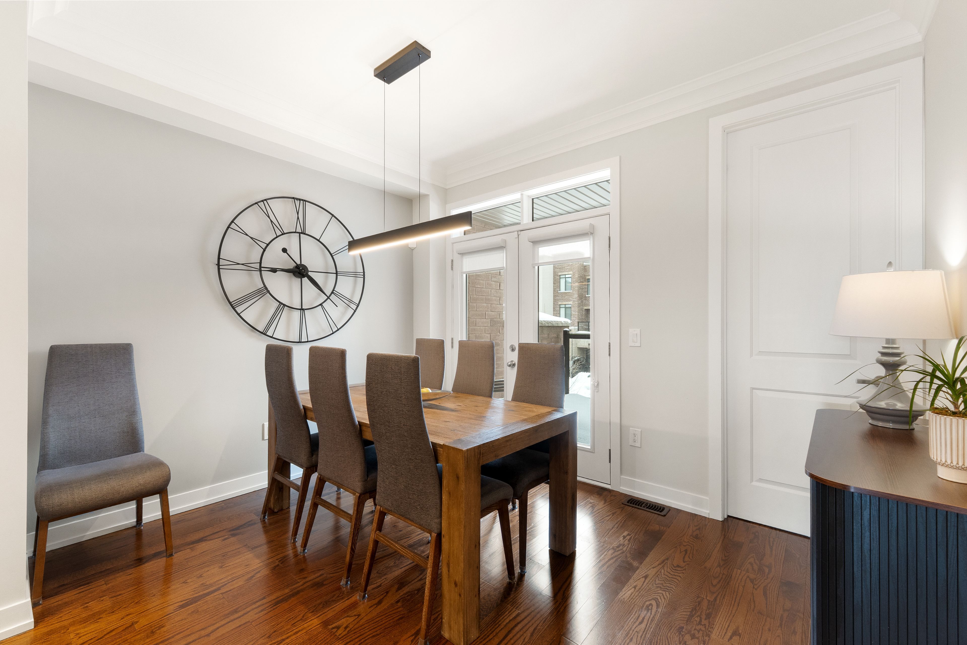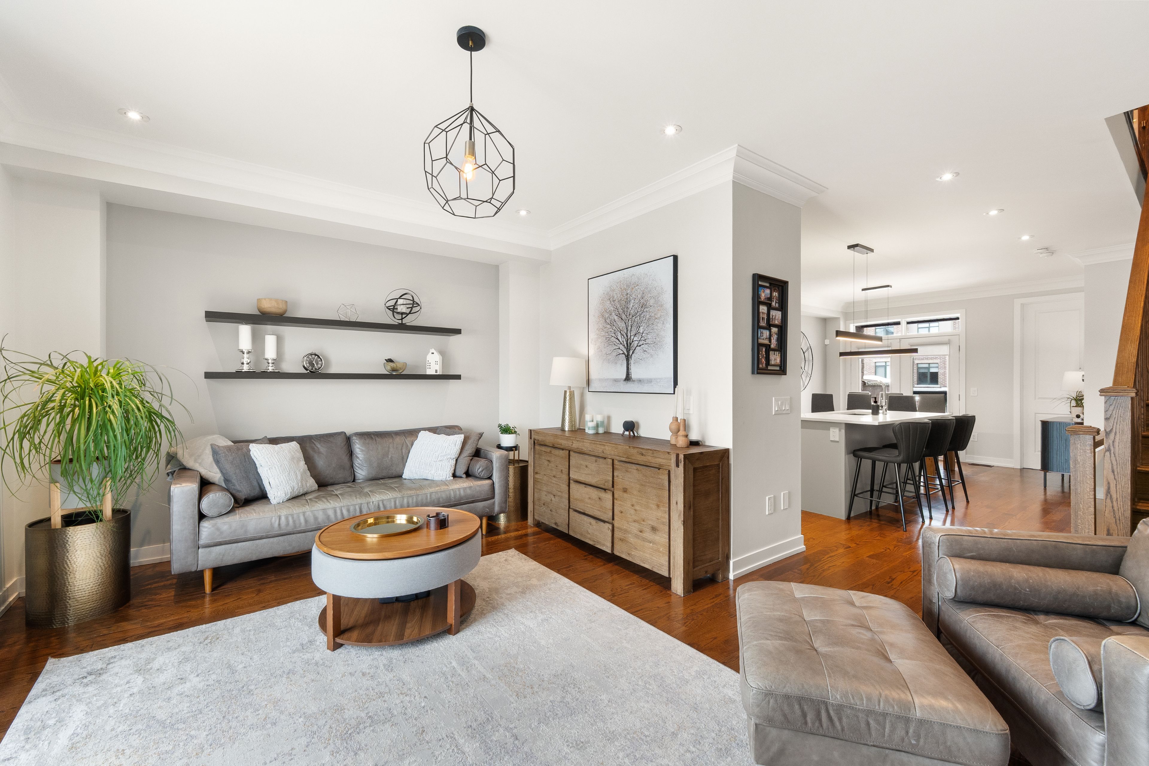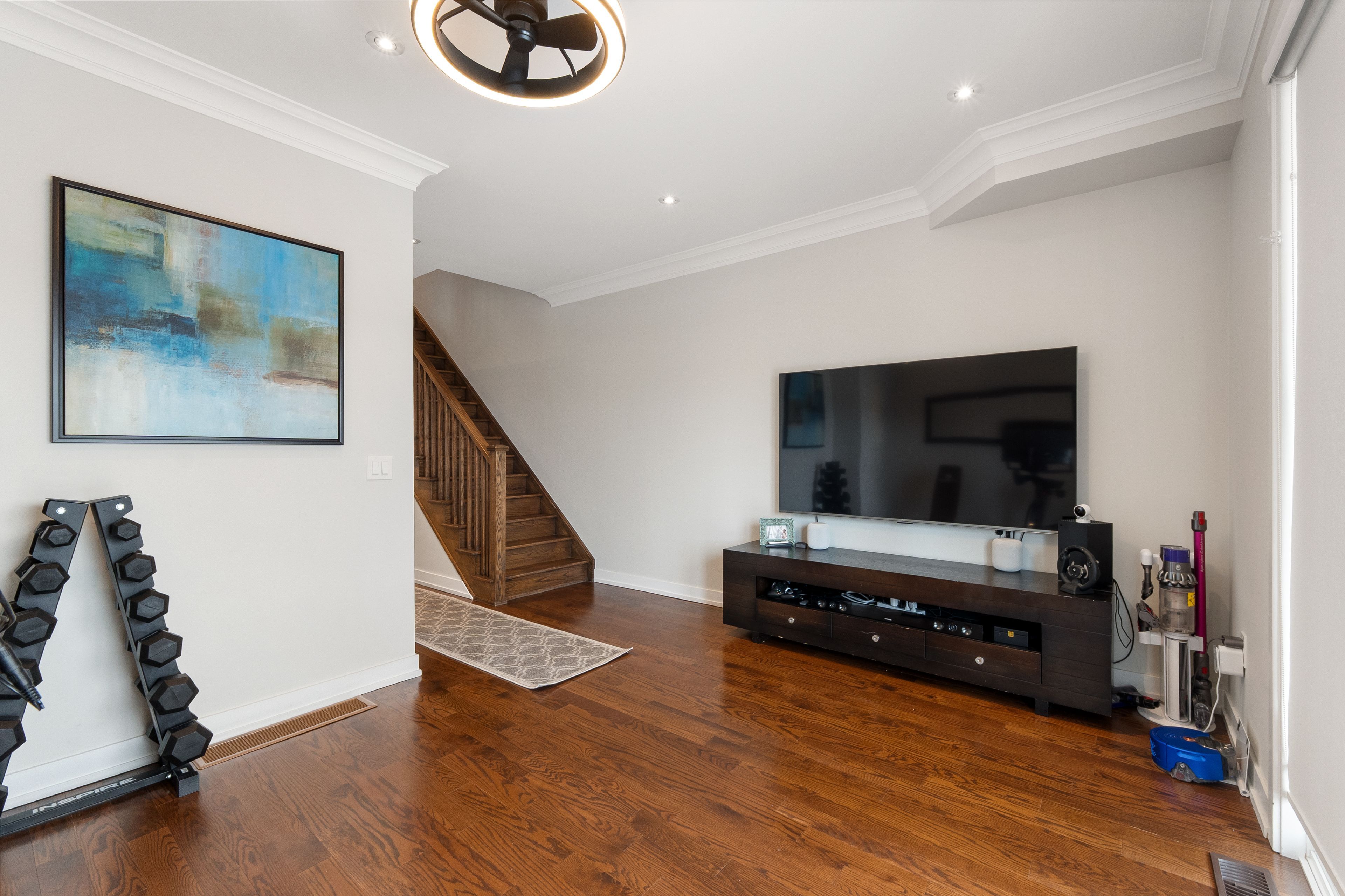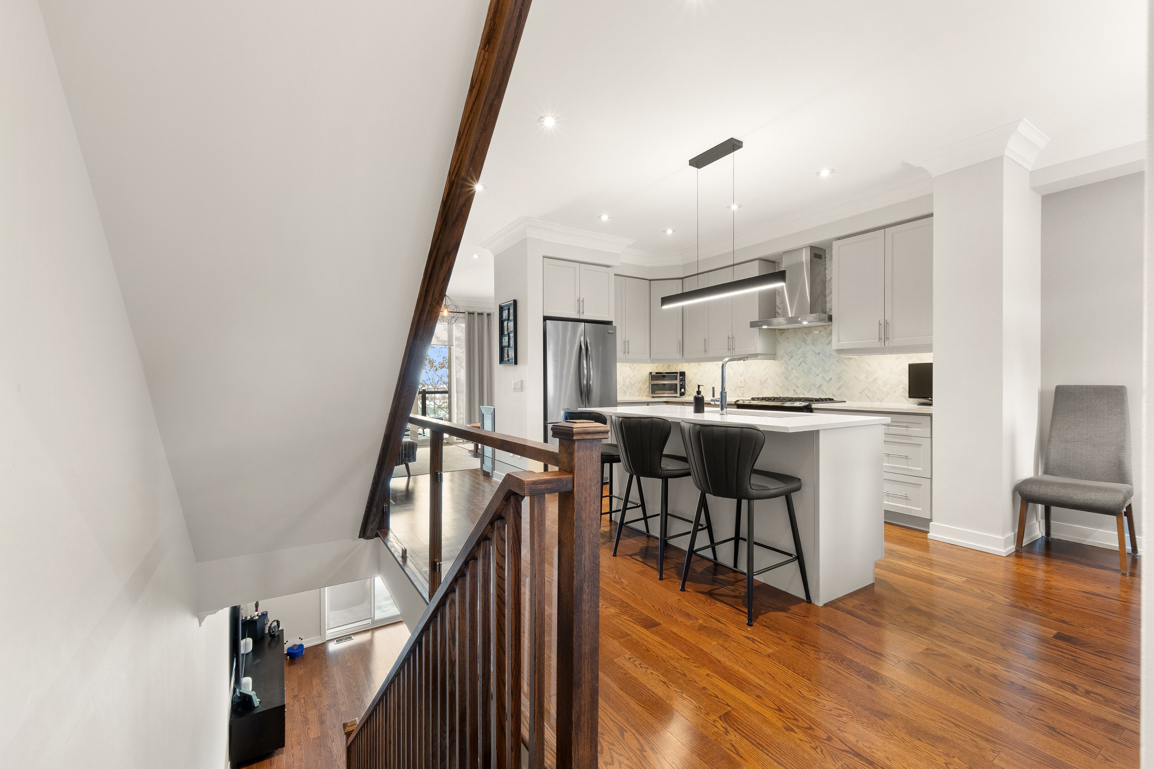 Open house sat/sun march 7th & 8th - 2-4pm. This one is special! An impeccably maintained freehold townhome (no monthly fees), cared for by the original owners. Thoughtful, refined upgrades define this home: striking glass-railed staircases, 8-ft doors on second & third floors, plaster crown moulding throughout, 9ft ceilings throughout, and bbq gas lines on patios. Chef's kitchen with marble backsplash, stone countertops, lazy susan, and top of the line ge appliances, including gas stove. The custom built electric fireplace with built-in storage cabinetry discreetly conceals tv and internet wiring, while upgraded lighting enhances the home's sophisticated ambiance. A primary bedroom with an over-sized walk-in closet and a well-appointed ensuite. Carpet-free flooring, central humidifier, and custom double blinds - including blackout shades in the bedrooms - add comfort and practicality. Enjoy interlock patios at the front and rear, two private balconies, and a pristine garage featuring an epoxied floor and built-in shelving. An elegant home where quality, care, and intelligent design come together seamlessly. Walk to maple go (30min to union station), walmart, community centres, libraries, top-rated schools, parks, cortellucci hospital, award-winning eagle's nest golf course, and hwy 400. This is affordable luxury living. Murphy bed in 3rd bedroom negotiable. See virtual tour & floor plans for room sizes.