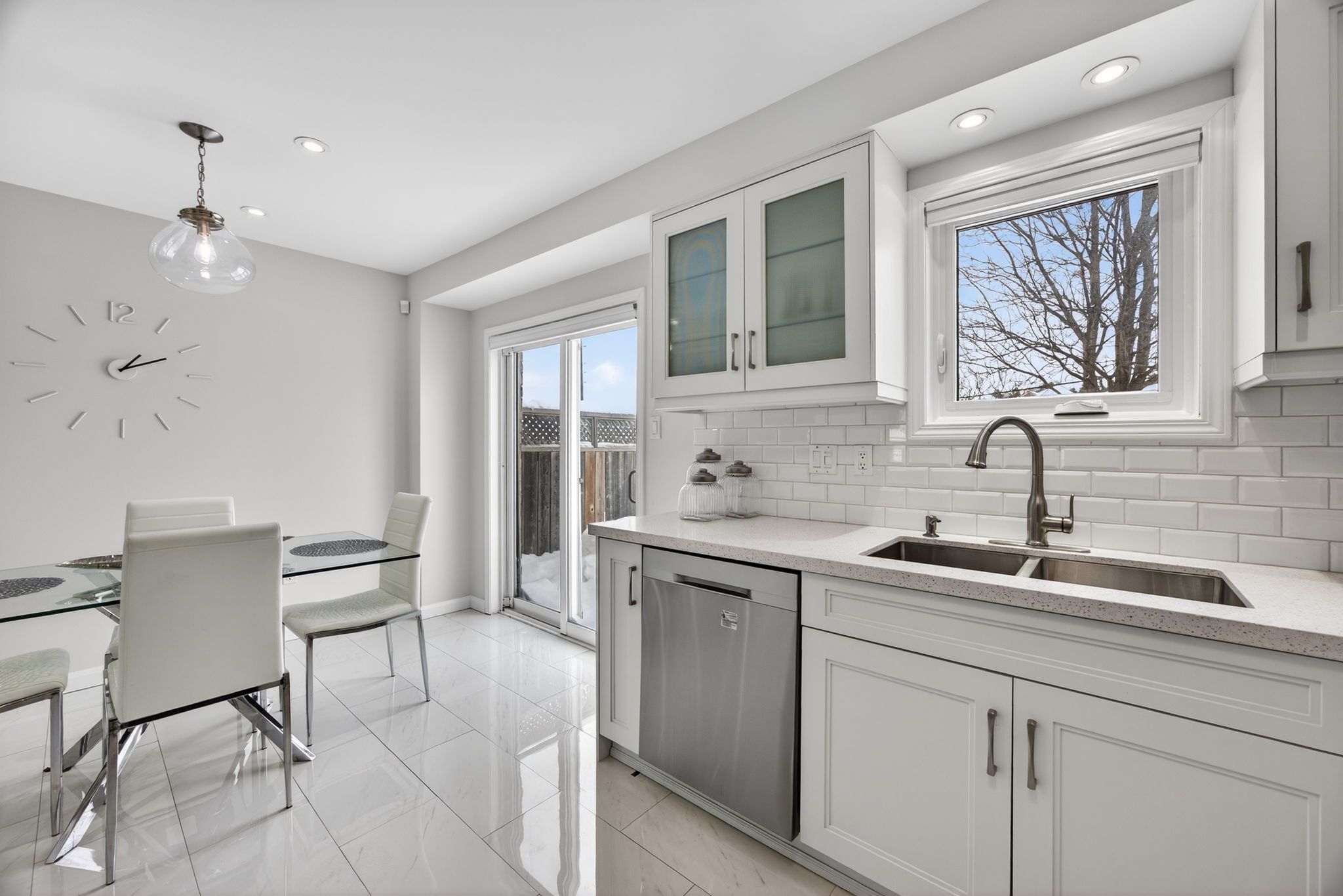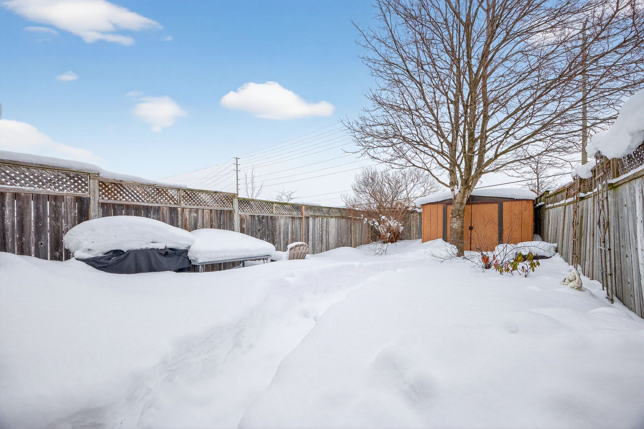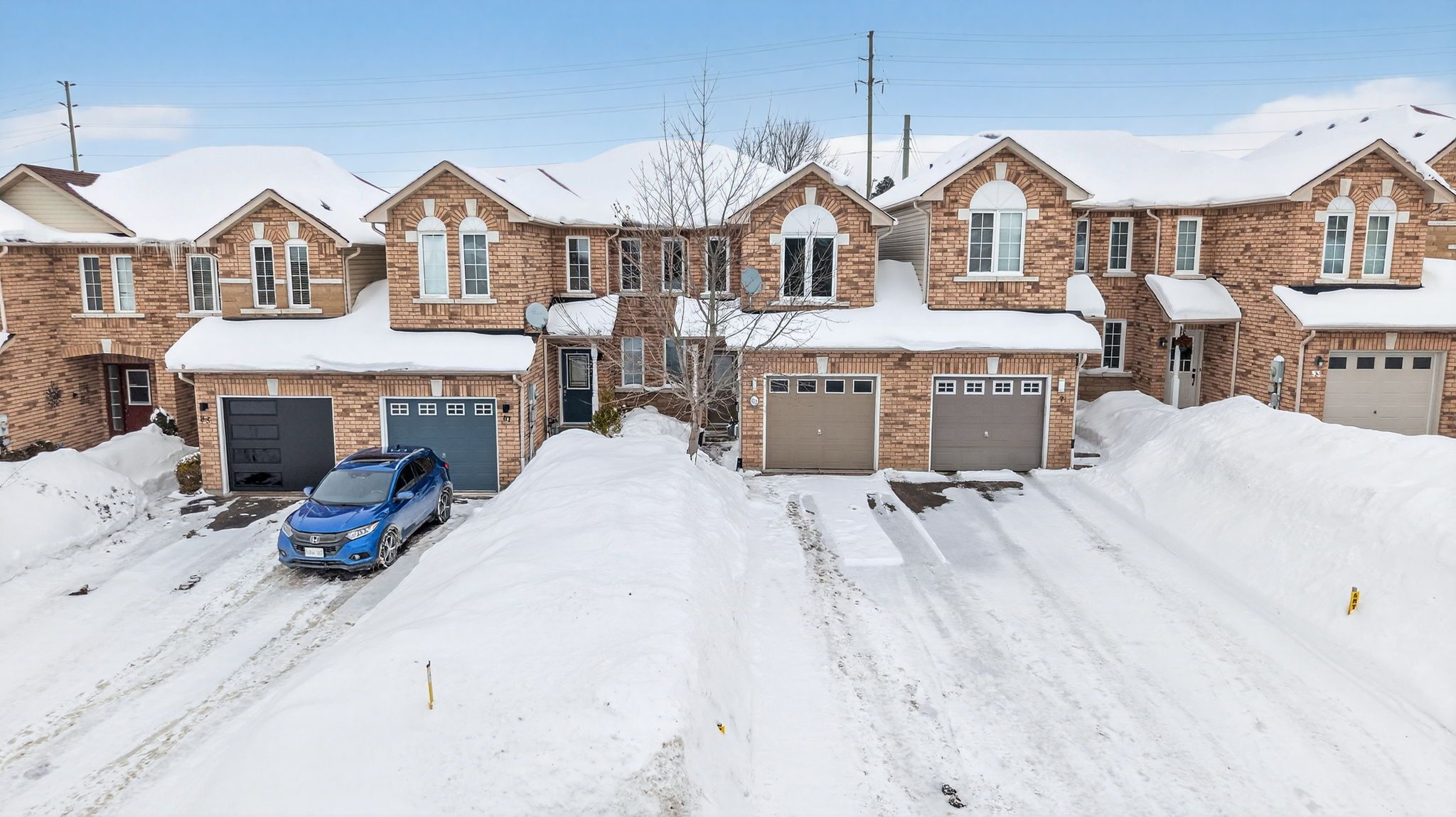 Welcome to 89 hawthorne crescent! A well maintained freehold townhome offering 3 bedrooms, 3 bathrooms, and a fully finished basement with versatile living space. The main level features a bright open-concept living area with a half-wall pass-through window to the kitchen, creating added openness and allowing natural light to flow in from the kitchen's patio doors. An open-to-below design overlooking the foyer enhances both light and visual connection between levels, giving the space an airy, welcoming feel. The modern kitchen is finished with white soft-close cabinetry, subway tile backsplash, quartz countertops, stainless steel appliances, and ample counter space with a separate breakfast area for casual dining. Neutral décor and consistent flooring throughout contribute to a clean, cohesive, and move-in-ready interior. Upstairs, the primary bedroom includes a private 3-piece ensuite with a wall-to-wall glass shower. Two additional bedrooms and a 4 pc bath provide comfortable accommodation for family or guests. The finished basement offers excellent flexibility with a spacious open recreation room and a separate den ideal for a home office, gym, or guest space. Additional highlights include inside access from the single-car garage with garage door opener and remote, plus a second garage door providing direct access to the backyard. The yard also features a garden shed for added storage. Parking for three vehicles includes one space in the garage and two on the driveway. This freehold property offers functional living space in a family-friendly barrie neighborhood close to everyday amenities. An excellent opportunity for first-time buyers, growing families, or investors seeking a low-maintenance home with flexible living space.