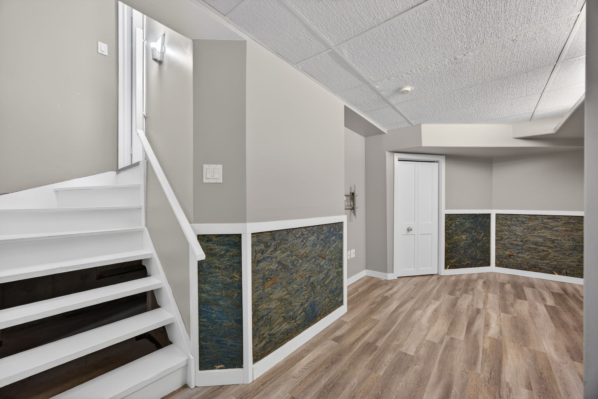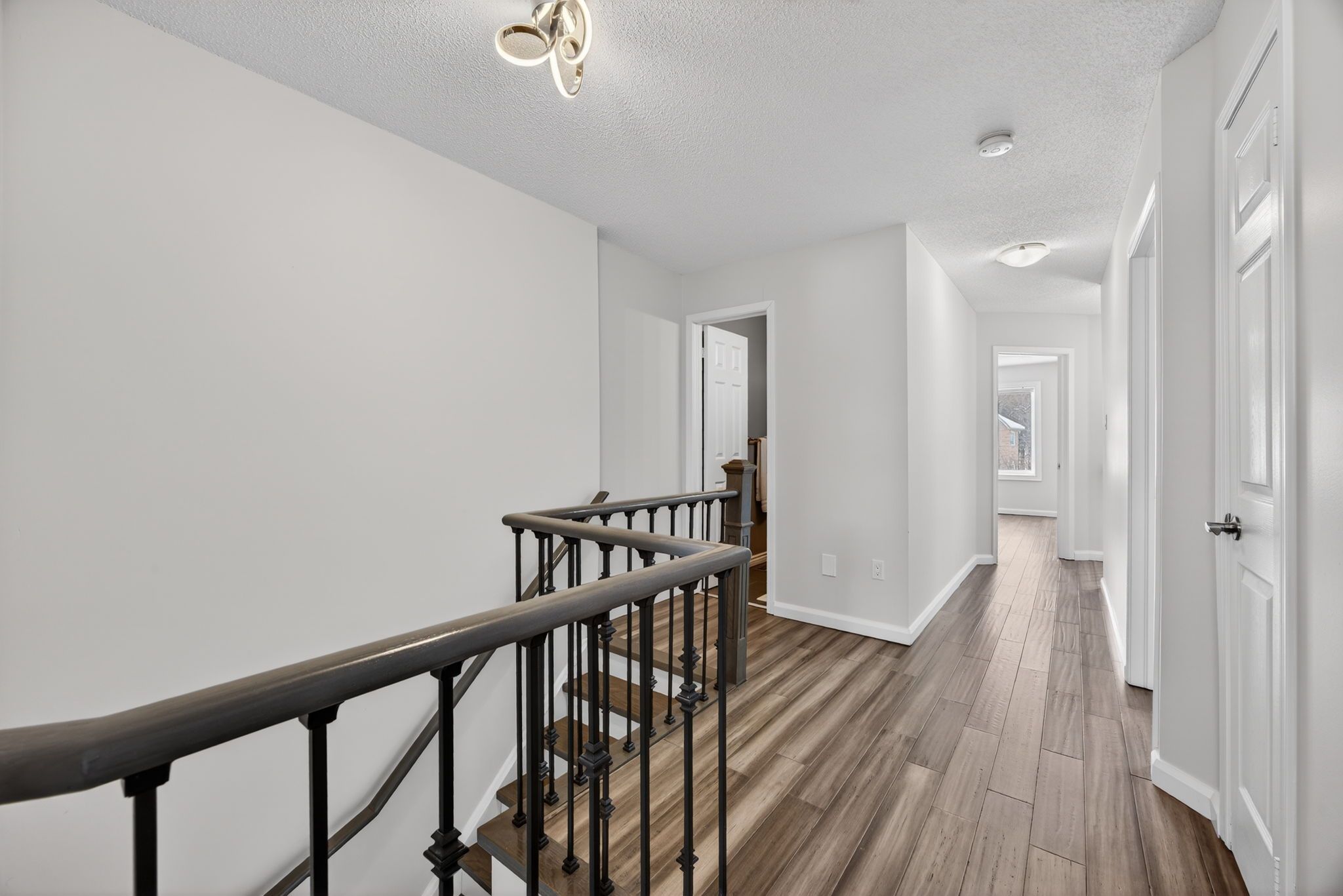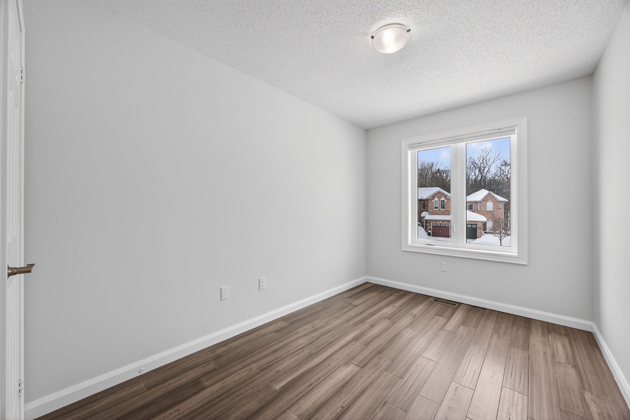 Welcome to 89 hawthorne crescent! A well maintained freehold townhome offering 3 bedrooms, 3 bathrooms, and a fully finished basement with versatile living space. The main level features a bright open-concept living area with a half-wall pass-through window to the kitchen, creating added openness and allowing natural light to flow in from the kitchen's patio doors. An open-to-below design overlooking the foyer enhances both light and visual connection between levels, giving the space an airy, welcoming feel. The modern kitchen is finished with white soft-close cabinetry, subway tile backsplash, quartz countertops, stainless steel appliances, and ample counter space with a separate breakfast area for casual dining. Neutral décor and consistent flooring throughout contribute to a clean, cohesive, and move-in-ready interior. Upstairs, the primary bedroom includes a private 3-piece ensuite with a wall-to-wall glass shower. Two additional bedrooms and a 4 pc bath provide comfortable accommodation for family or guests. The finished basement offers excellent flexibility with a spacious open recreation room and a separate den ideal for a home office, gym, or guest space. Additional highlights include inside access from the single-car garage with garage door opener and remote, plus a second garage door providing direct access to the backyard. The yard also features a garden shed for added storage. Parking for three vehicles includes one space in the garage and two on the driveway. This freehold property offers functional living space in a family-friendly barrie neighborhood close to everyday amenities. An excellent opportunity for first-time buyers, growing families, or investors seeking a low-maintenance home with flexible living space.