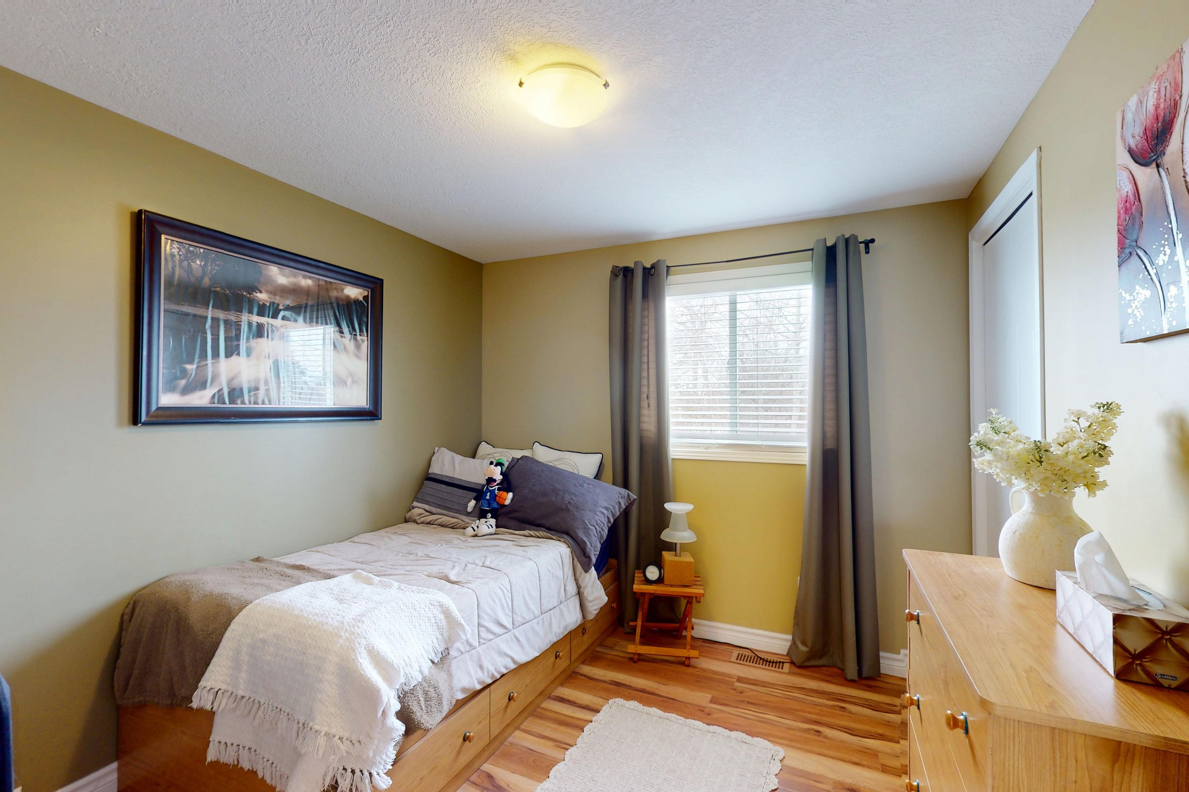 • Three spacious bedrooms and a walk-in closet in the primary bedroom.