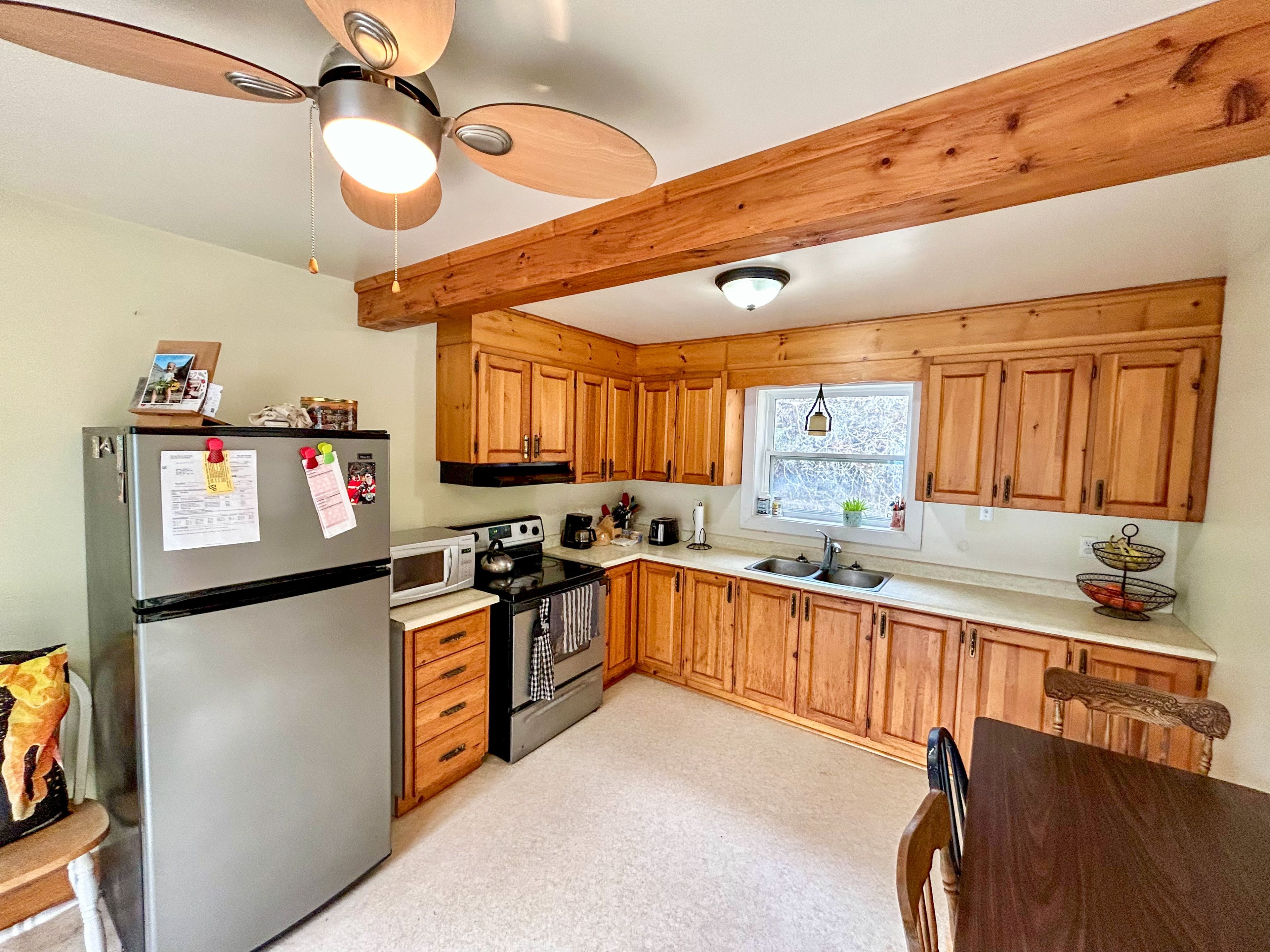 • Bright eat-in kitchen with ample counter space and storage.