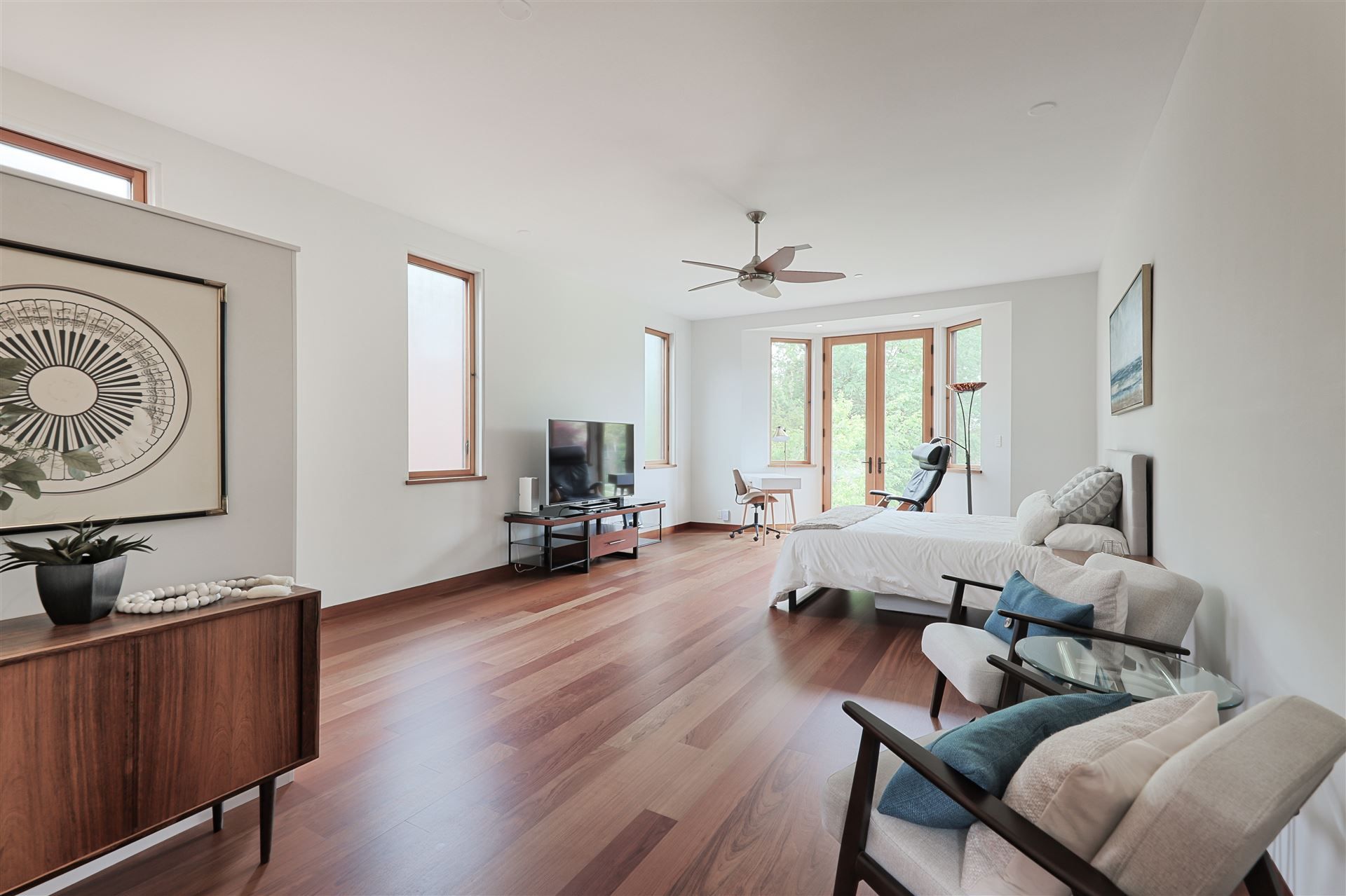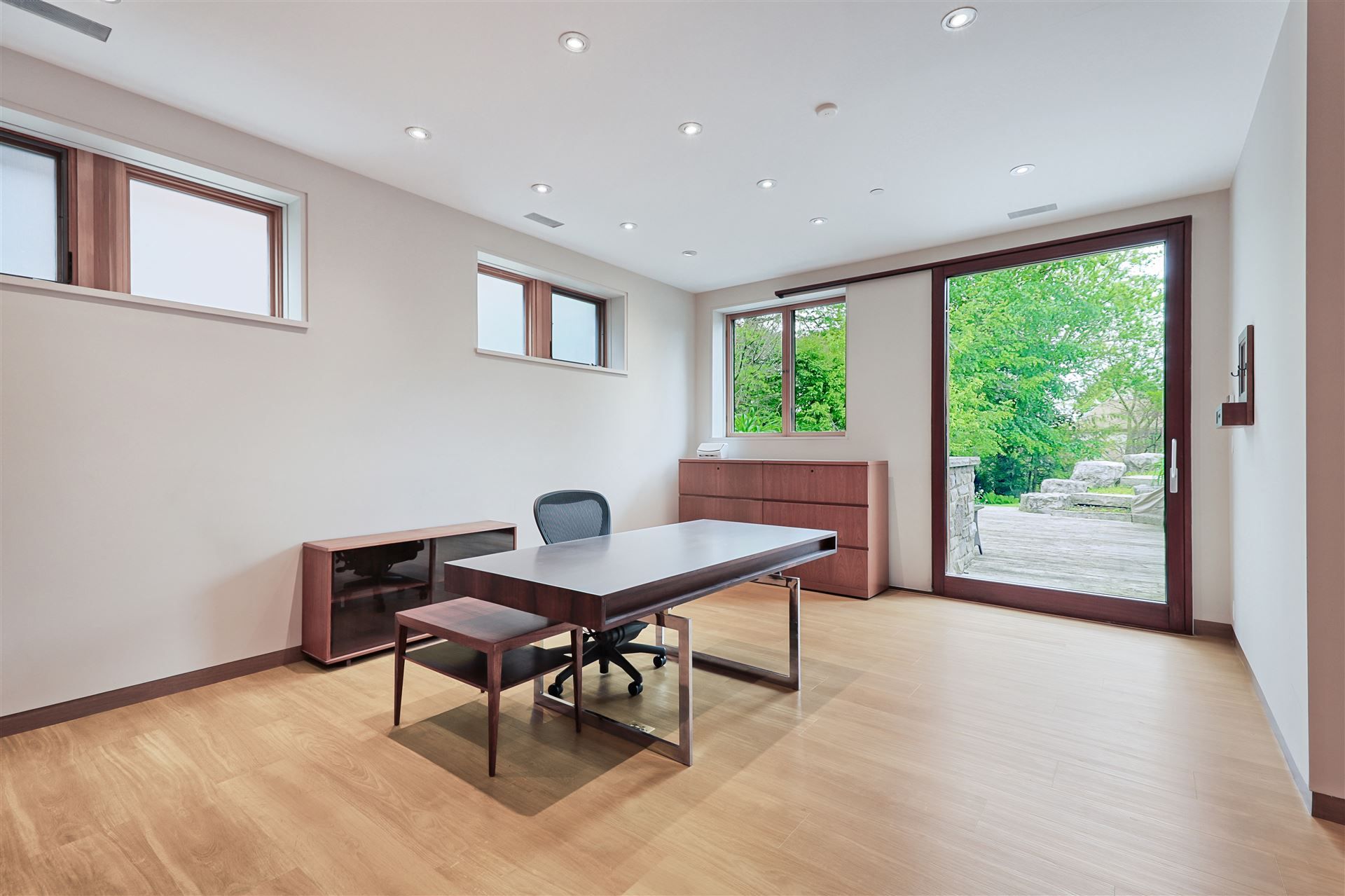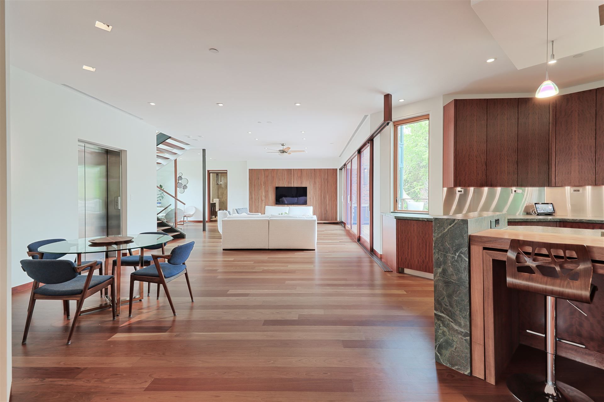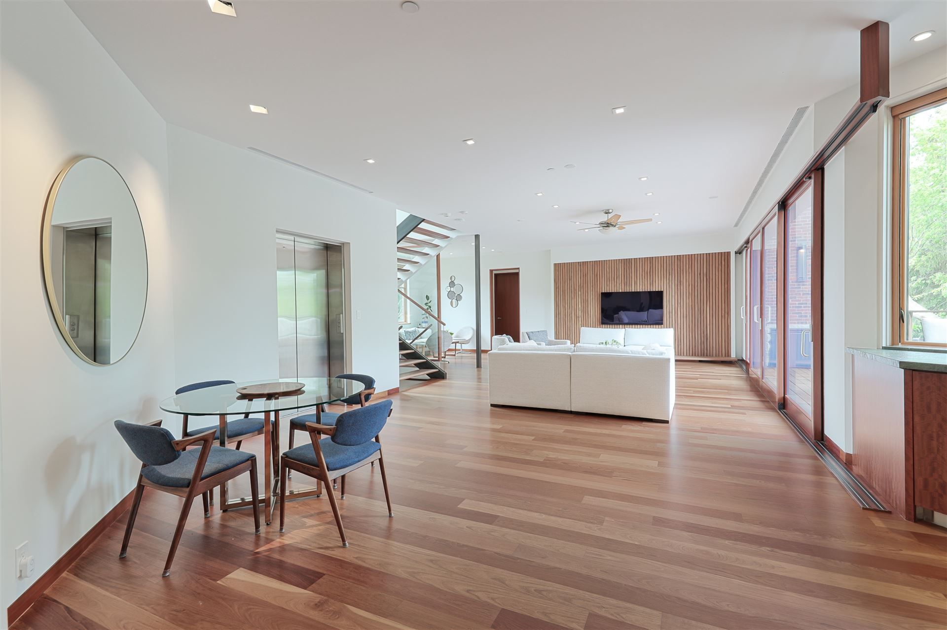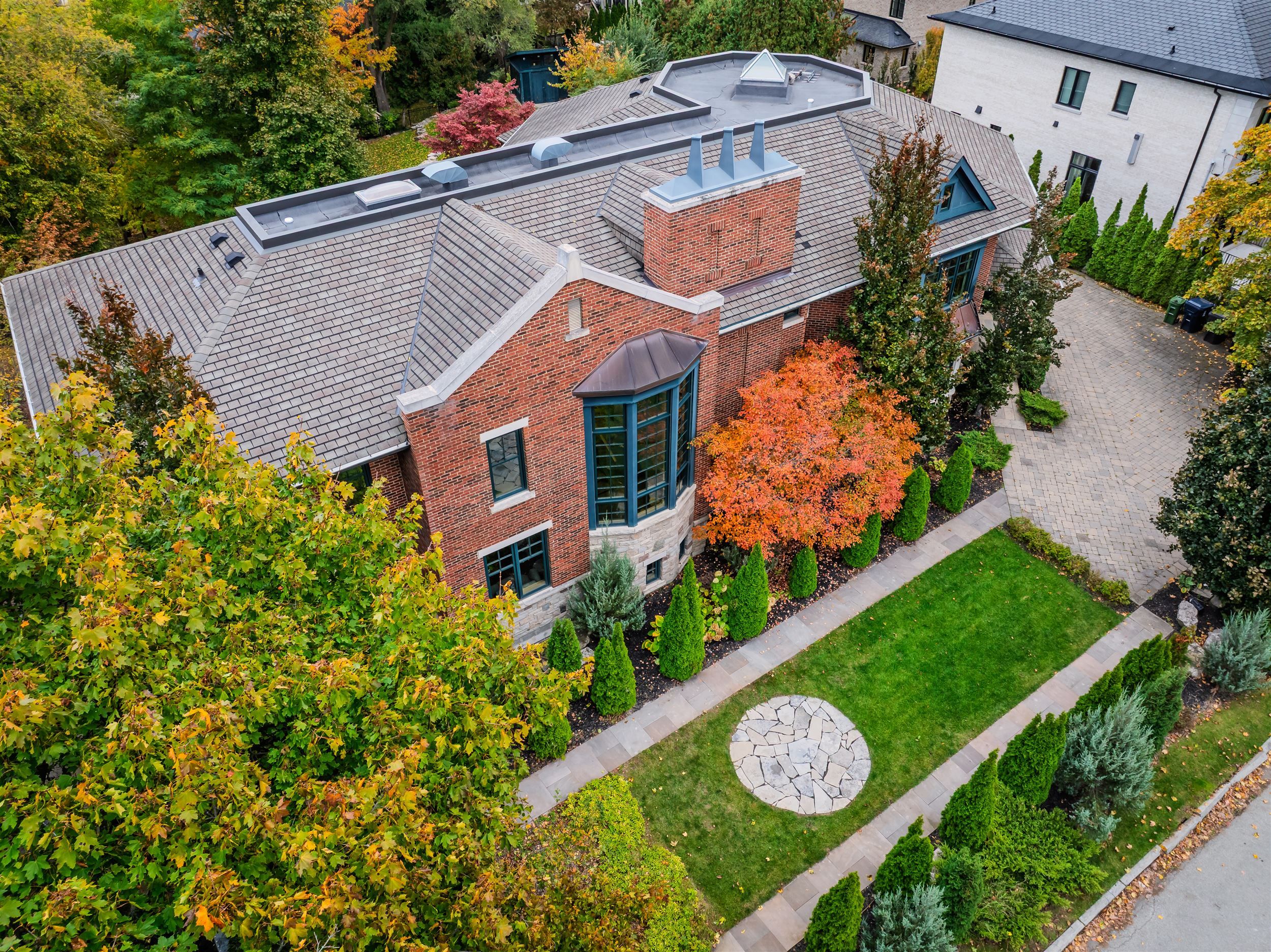 Discover a gem, custom-built as a multi-generational home, offering over 11,000 sq ft of luxurious living space on a rare 125ft double lot at the edge of the humber valley in the tree-lined kingsway neighbourhood. This residence is a statement of contemporary elegance and sophistication, perfect for the discerning family. Inside, experience clean lines and exquisite details that enhance comfortable luxury living, including sound-isolated suites, jatoba hardwood floors, stunning persian serpentinite kitchen countertops, and heated stone floors for ultimate comfort. Accessibility is a key feature, with snow melt for the front porch, steps, ramp and driveway, a commercial 4x6 ft elevator, and 4 ft wide hallways to ensure effortless movement throughout the residence. The ground floor features a bright, open-plan living area that seamlessly integrates the chefs kitchen, dining, and living spaces, extending to a partially covered upper deck with a 17ft wide opening. A heated 3-car garage is cleverly positioned at the side of the house. The primary retreat is where luxury meets tranquility, featuring two generous walk-in closets and two ensuites one complete with a massage room and whirlpool tub offering tree-top views. Two additional spacious bedrooms, each with walk-in closets, share a thoughtfully designed bathroom suite with dual sinks, ample storage, and a separate area for added privacy. The oversized fourth bedroom also includes its own ensuite bathroom and walk-in closet, providing comfort and convenience for family or guests. The ground floor bedroom suite with a juliet balcony offers a perfect retreat for guests. Venture to the finished lower level, where 10+ ft ceilings create a light and airy ambiance. This expansive space features a wide sliding door leading to the lower deck, ideal for entertaining. With multiple entertainment areas, including a stepped home theatre and sprawling park-like backyard, this home is designed for those who appreciate spacious comfort.