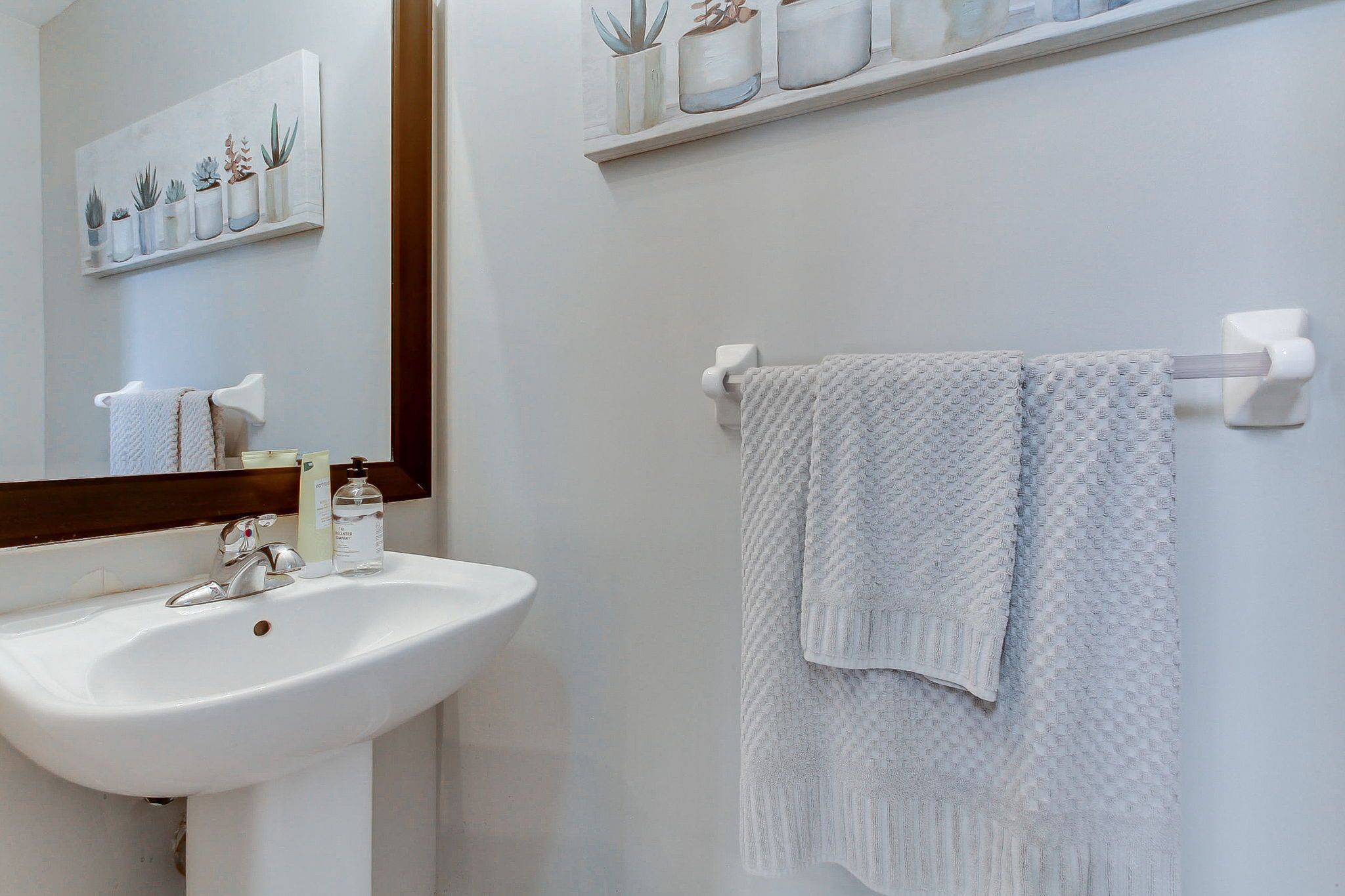 • Spacious primary bedroom and two additional bedrooms upstairs.