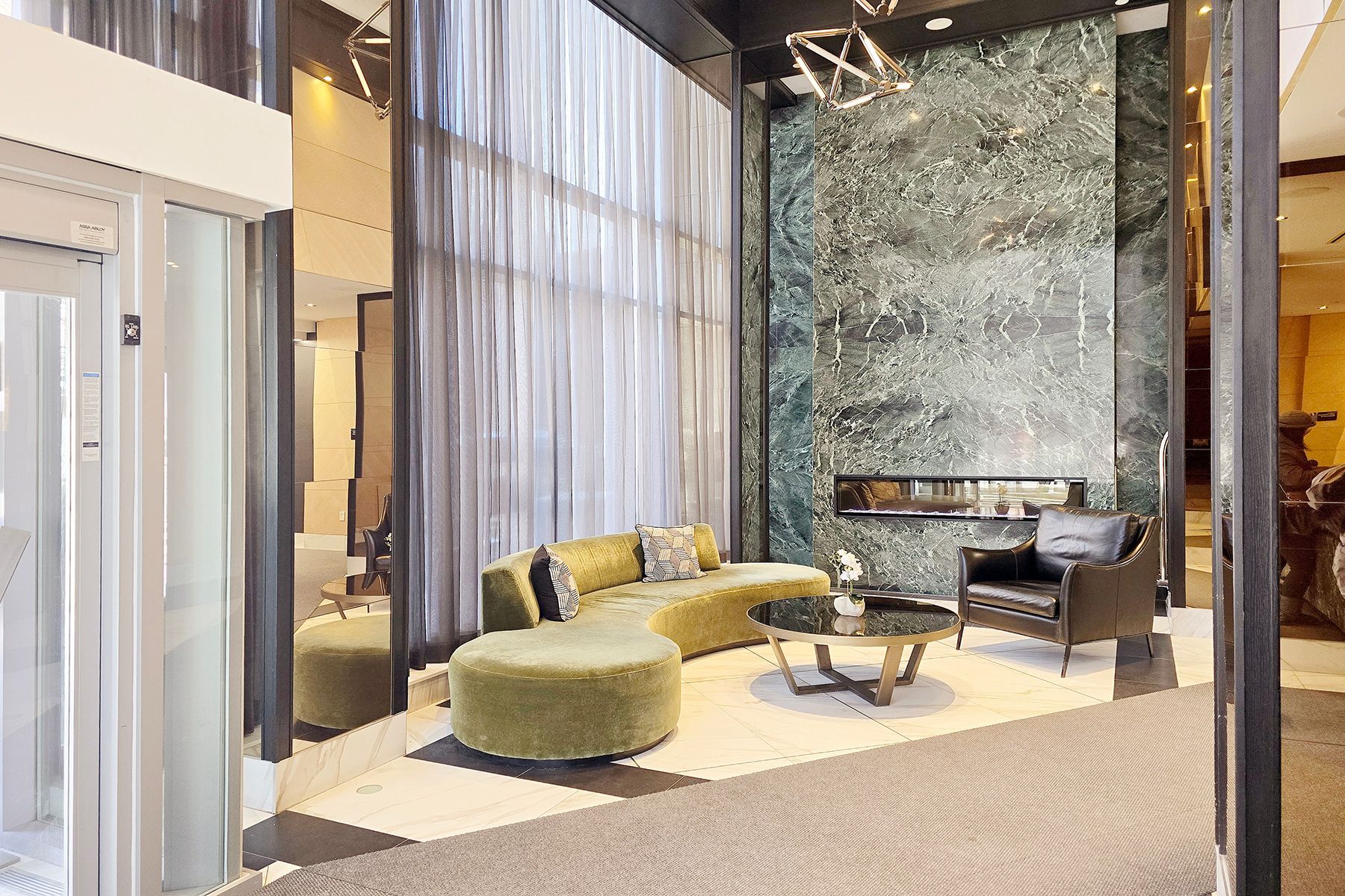 • Building includes amenities like yoga and spin studios, and a movie theatre.