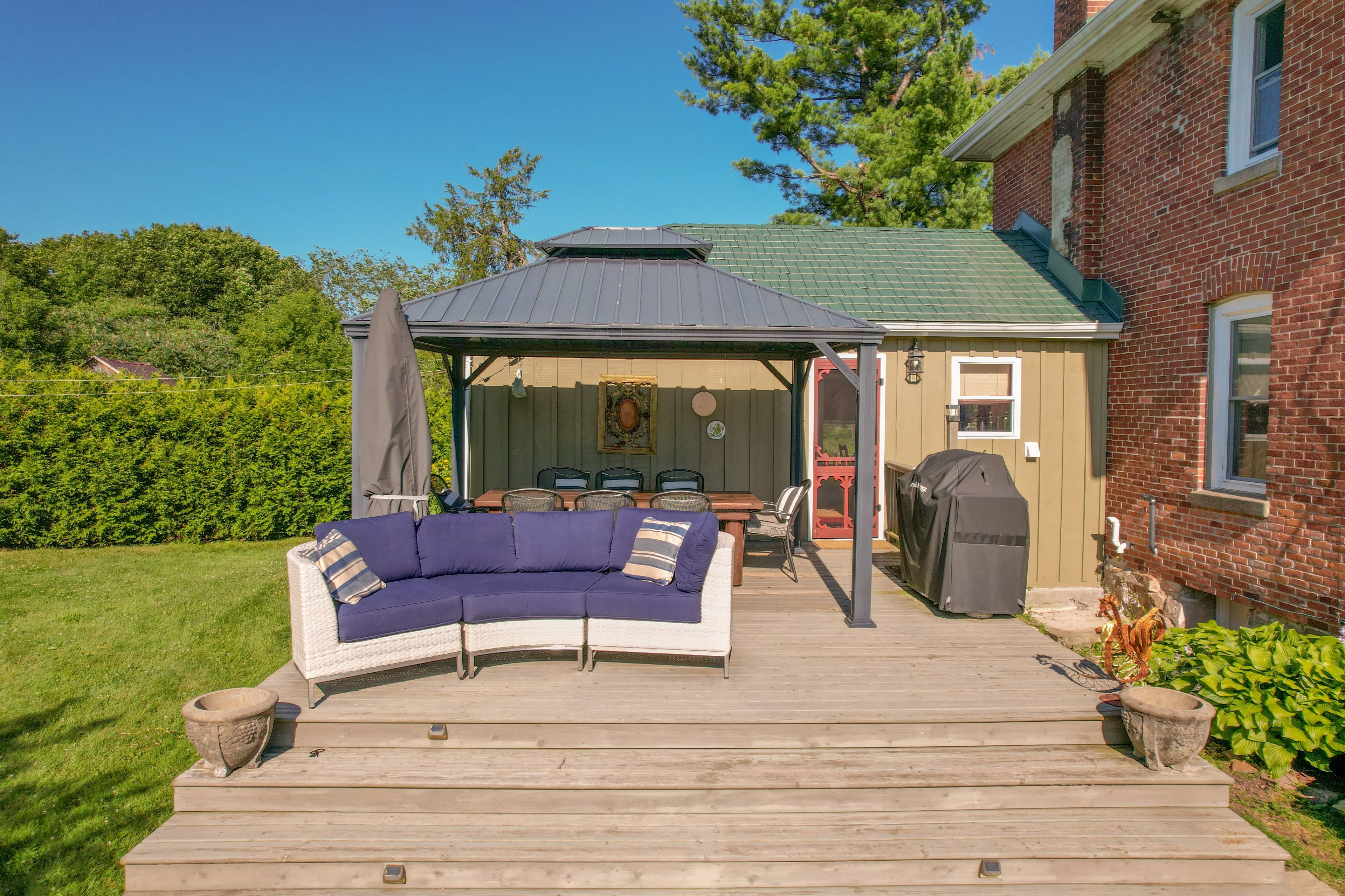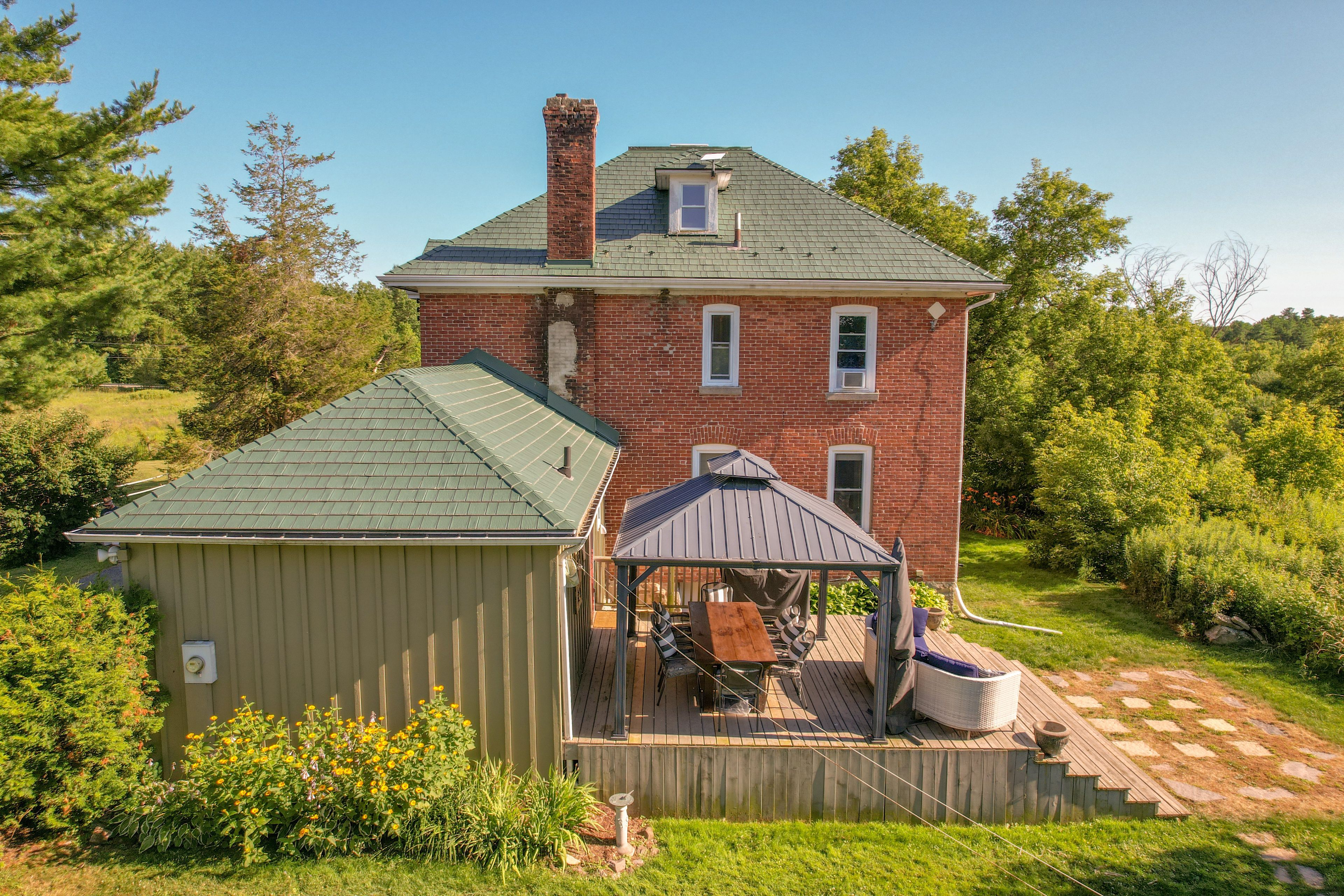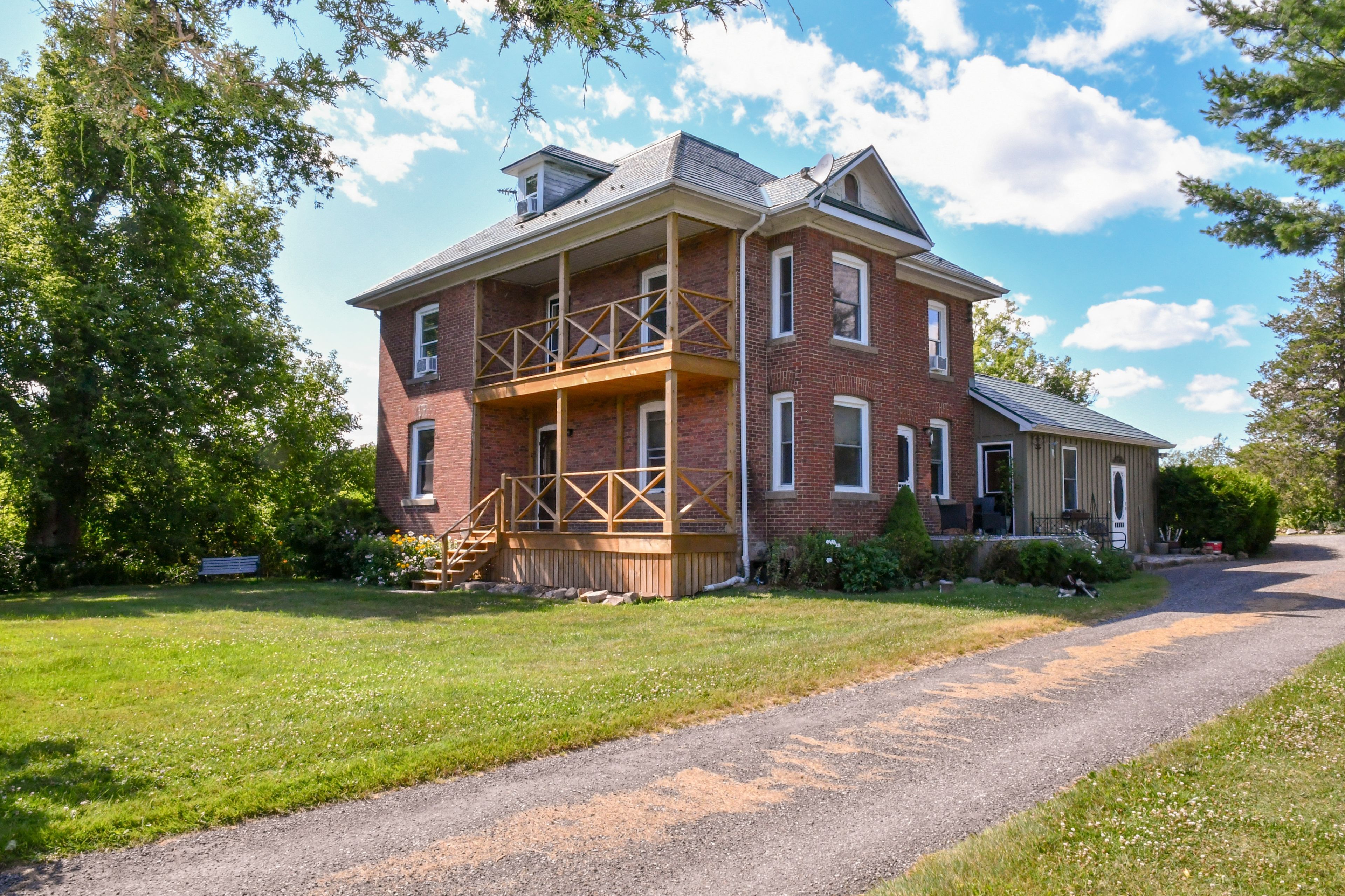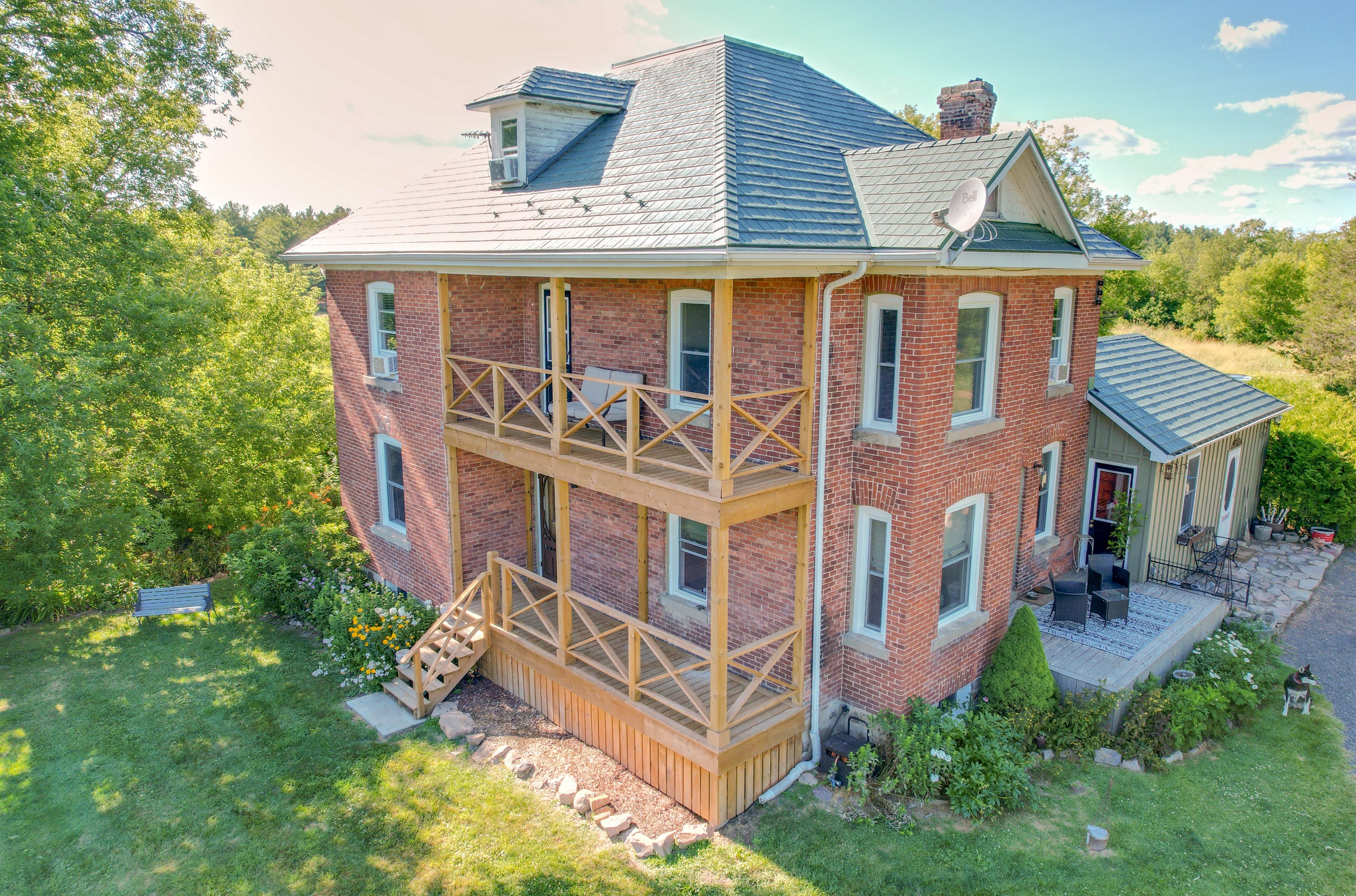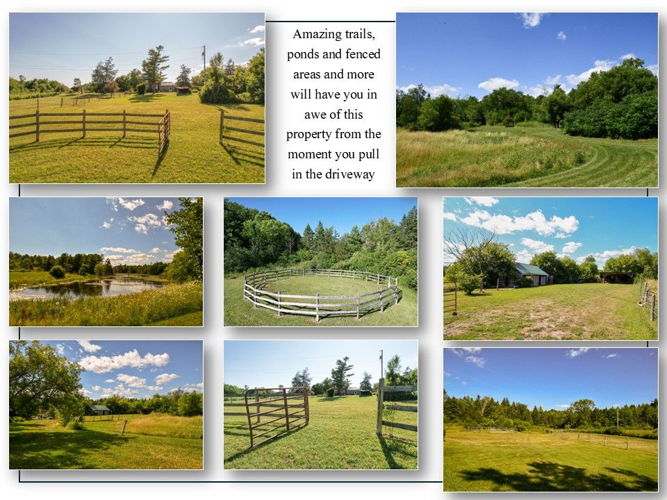 Escape to your own private country estate, just minutes from everyday conveniences, the st. Lawrence river, and countless back lakes. Set on approximately 100 acres at the end of a quiet, private road, this exceptional property offers a rare blend of privacy and natural beauty, featuring expansive lawns, rolling pastures, scenic trails, tranquil ponds, and more. As you arrive, you're welcomed by a stunning two-and-a-half-story brick home surrounded by nature. Inside, the home showcases a spacious kitchen, formal dining room, and both living and family rooms-perfect for entertaining or relaxing. Rich woodwork and detailed craftsmanship add warmth and character throughout. The second level features a generous primary suite complete with a large walk-in closet, along with two additional bedrooms and two well-appointed 3-piece bathrooms-one offering a soaker tub, the other a large walk-in shower. The third level provides a versatile space ideal for a fourth bedroom, home office, media room, or a combination to suit your needs. Step outside and explore everything this remarkable property has to offer-wander the trails, enjoy open green spaces and pastures, or visit the multiple outbuildings. One of the standout features is the larger pond, offering breathtaking views-especially at sunset. This is a truly unique property, ideal for those seeking peace, privacy, and the beauty of country living. With stunning photos, an iguide, and a drone tour available, there's plenty to explore-but this is one you need to experience in person. Don't miss your opportunity to own this incredible country escape.