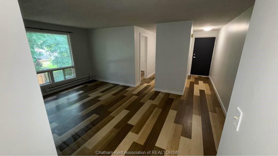 Light-filled, upper 2 bedroom apartment in chatham's northwest. If you're looking for a peaceful place, this corner unit is tucked away at the rear of the building and overlooks cedar trees for year-round greenery. Conveniently located close to shopping, schools and parks. In-unit laundry, and one included parking spot add to the affordability of this home. Photos are from when the unit was vacant. Unit is currently tenanted. 24 hours notice required for showings. Lease price includes water and gas (for hot water). Hydro extra.