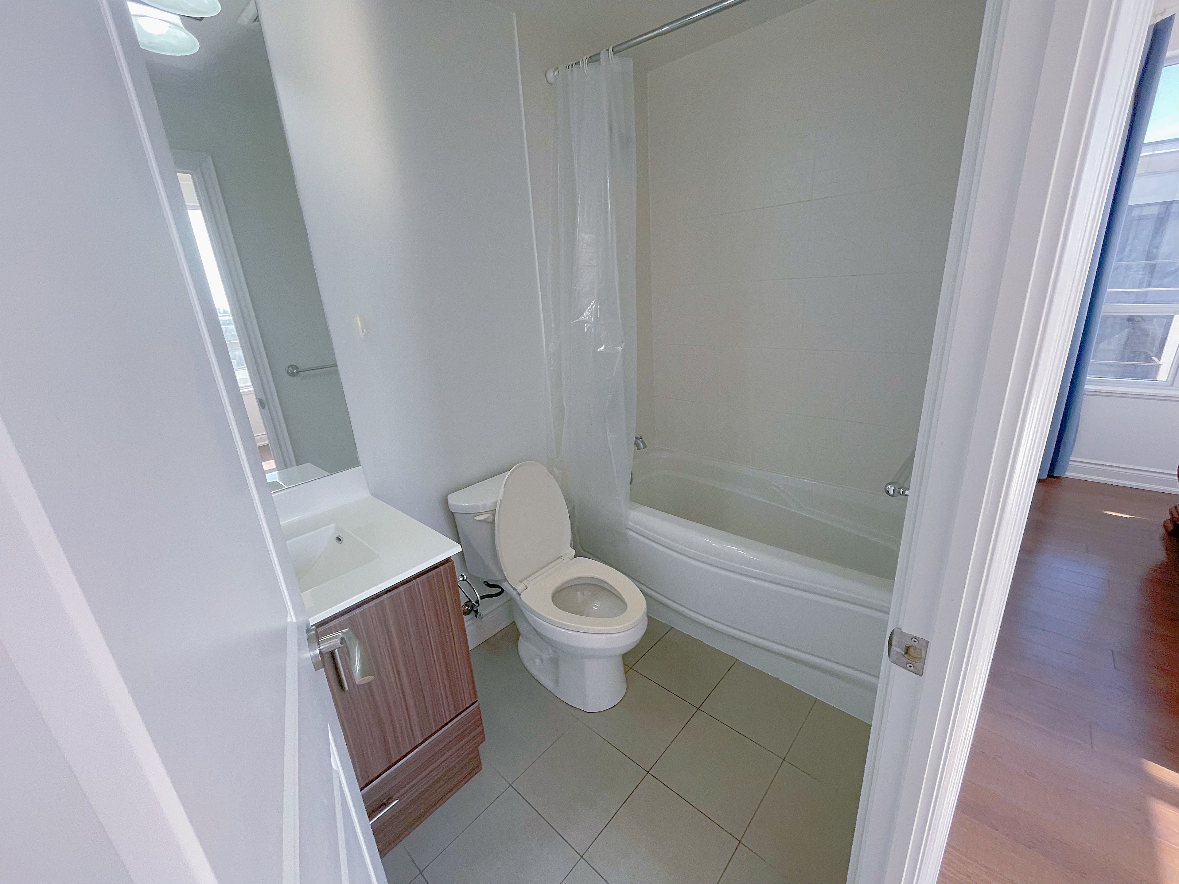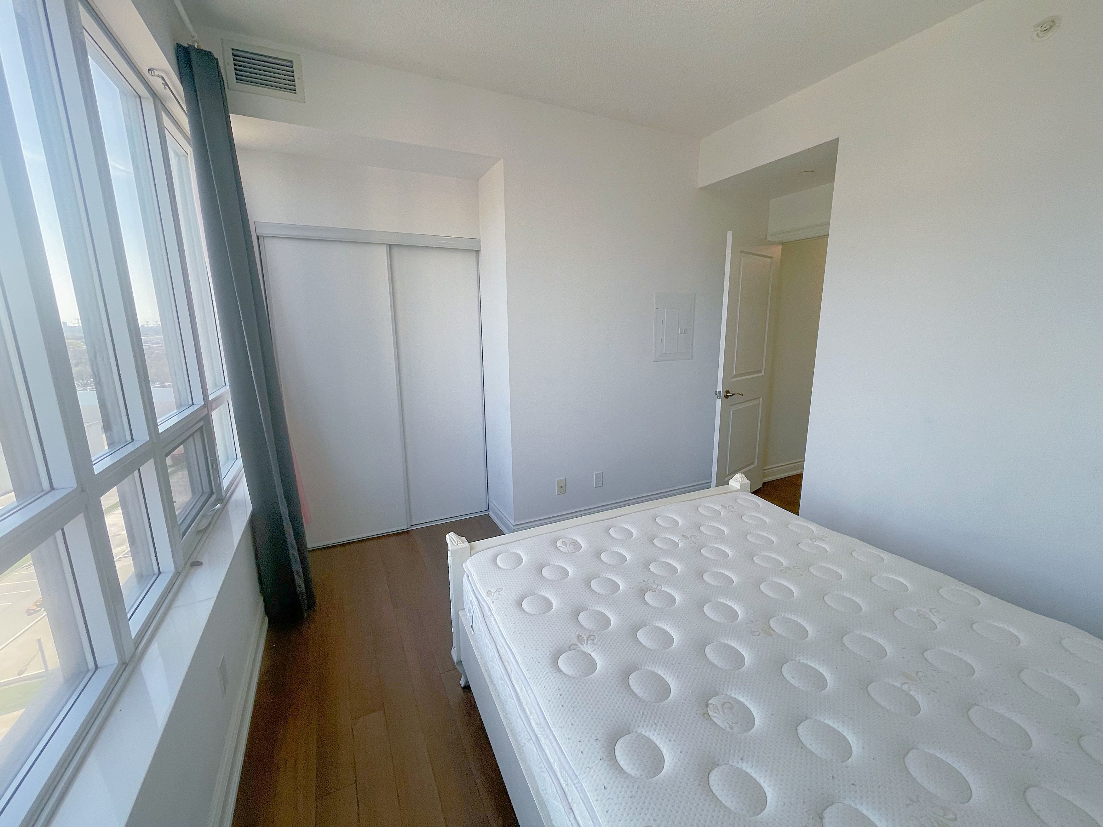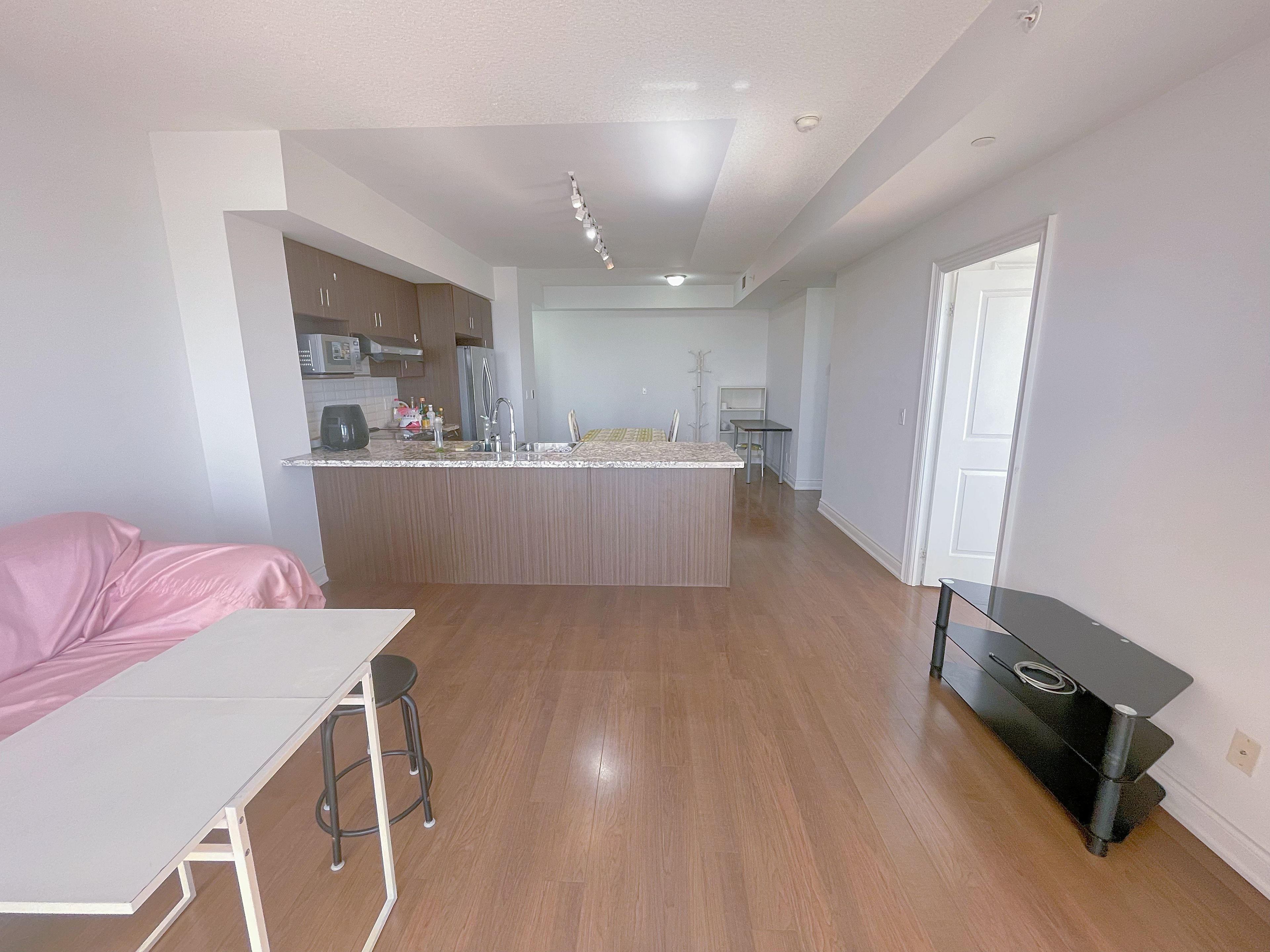 Students welcome. Please see the virtual tour. Spacious 2 bedroom + 1 den unit featuring a breathtaking balcony, 2 full baths, and 9' ceilings. Modern laminate flooring throughout. Enjoy the grand concierge service with 24-hour security and a million-dollar clubhouse. Conveniently located across from shops, banks, and restaurants. Minutes to go station, highway 404 & highway 407. One locker and one parking spot included.